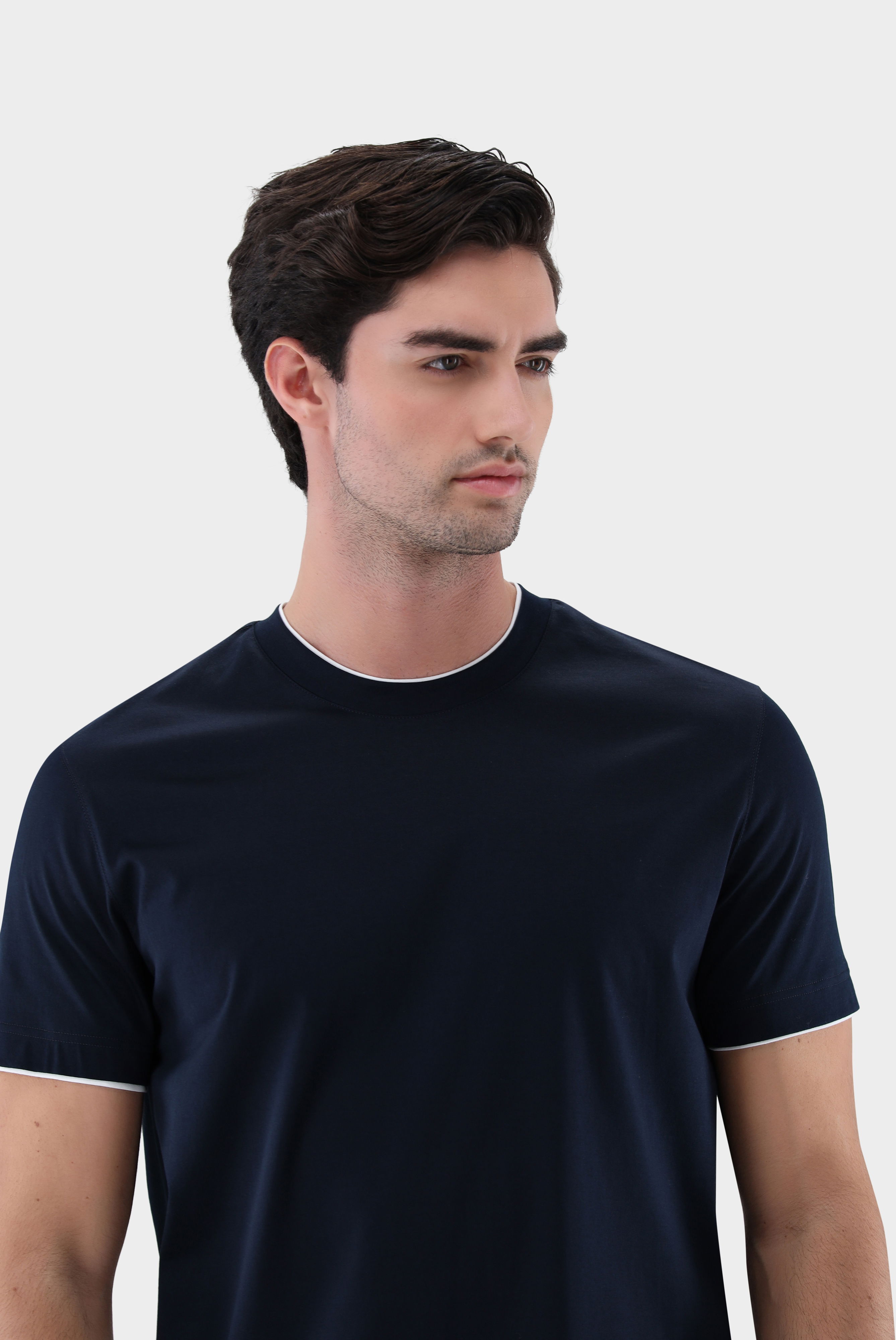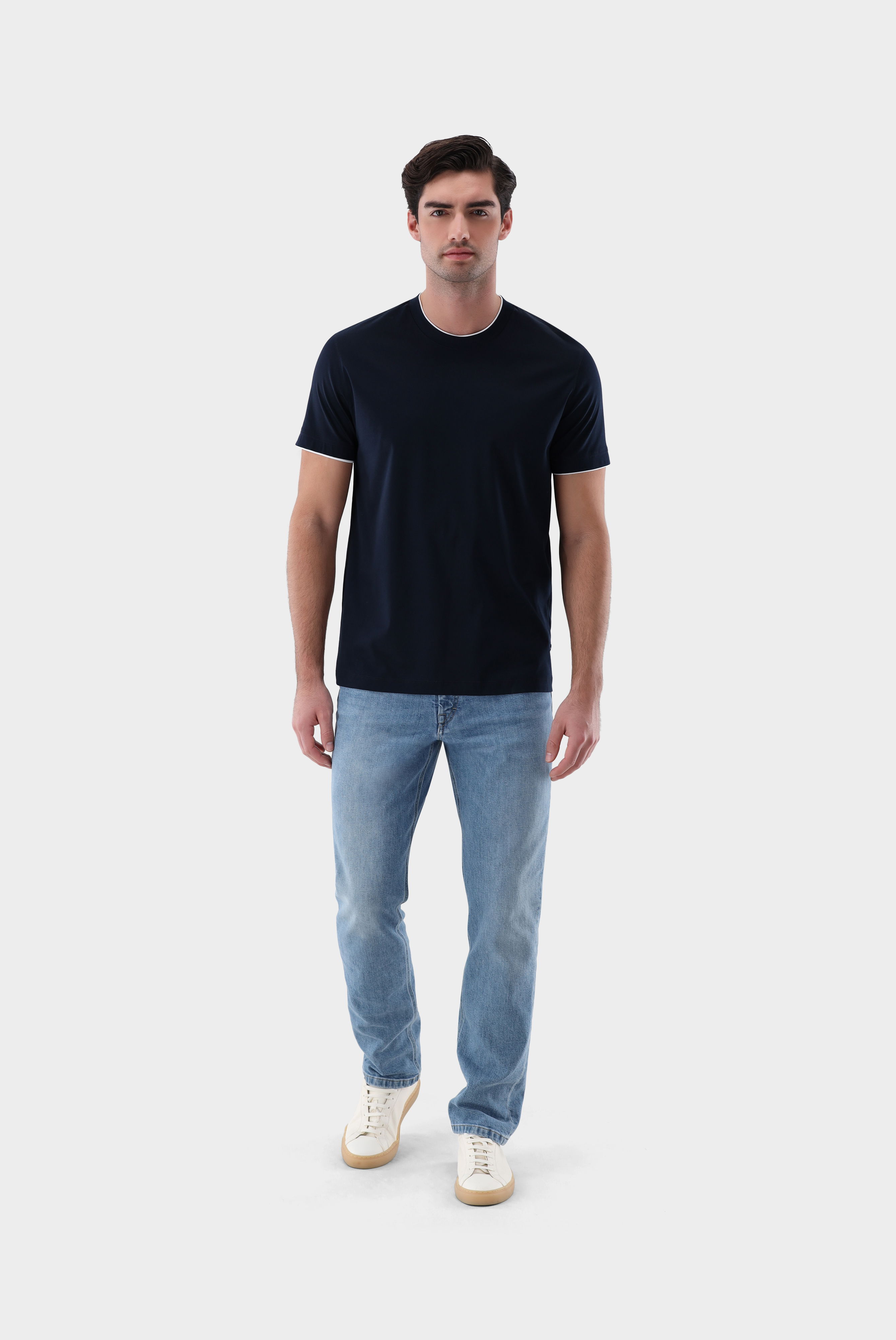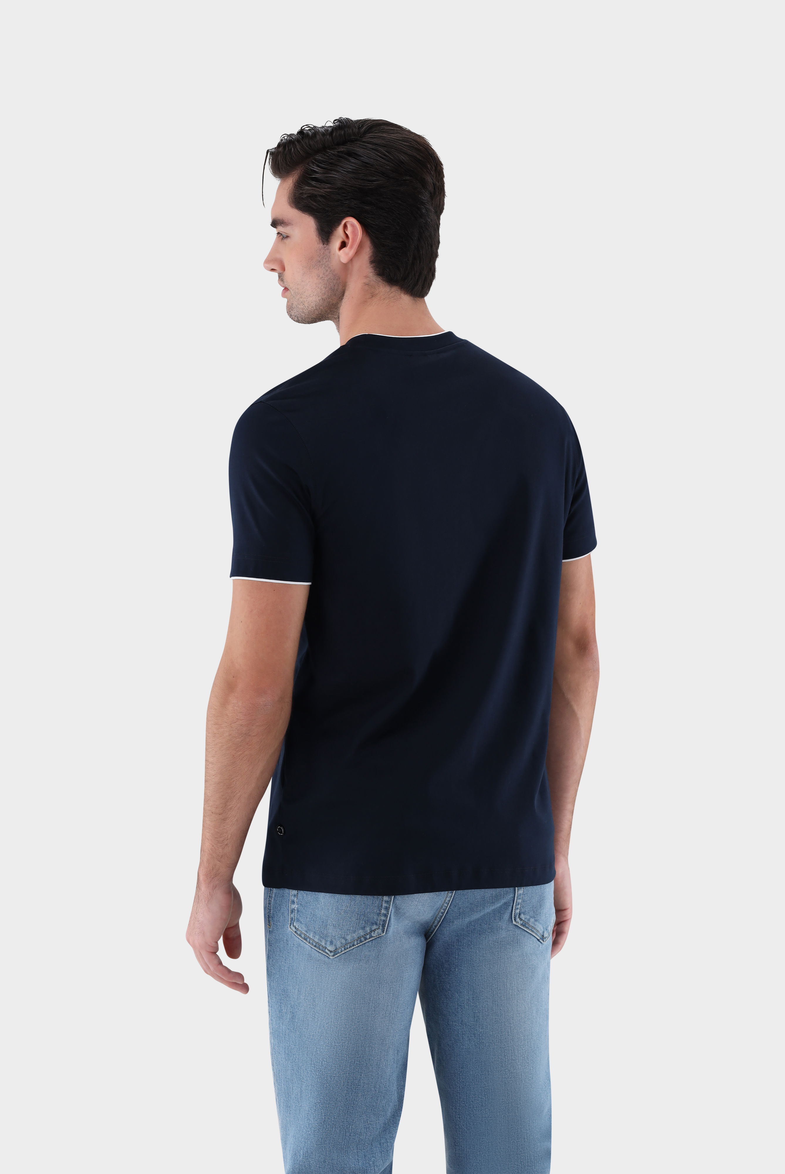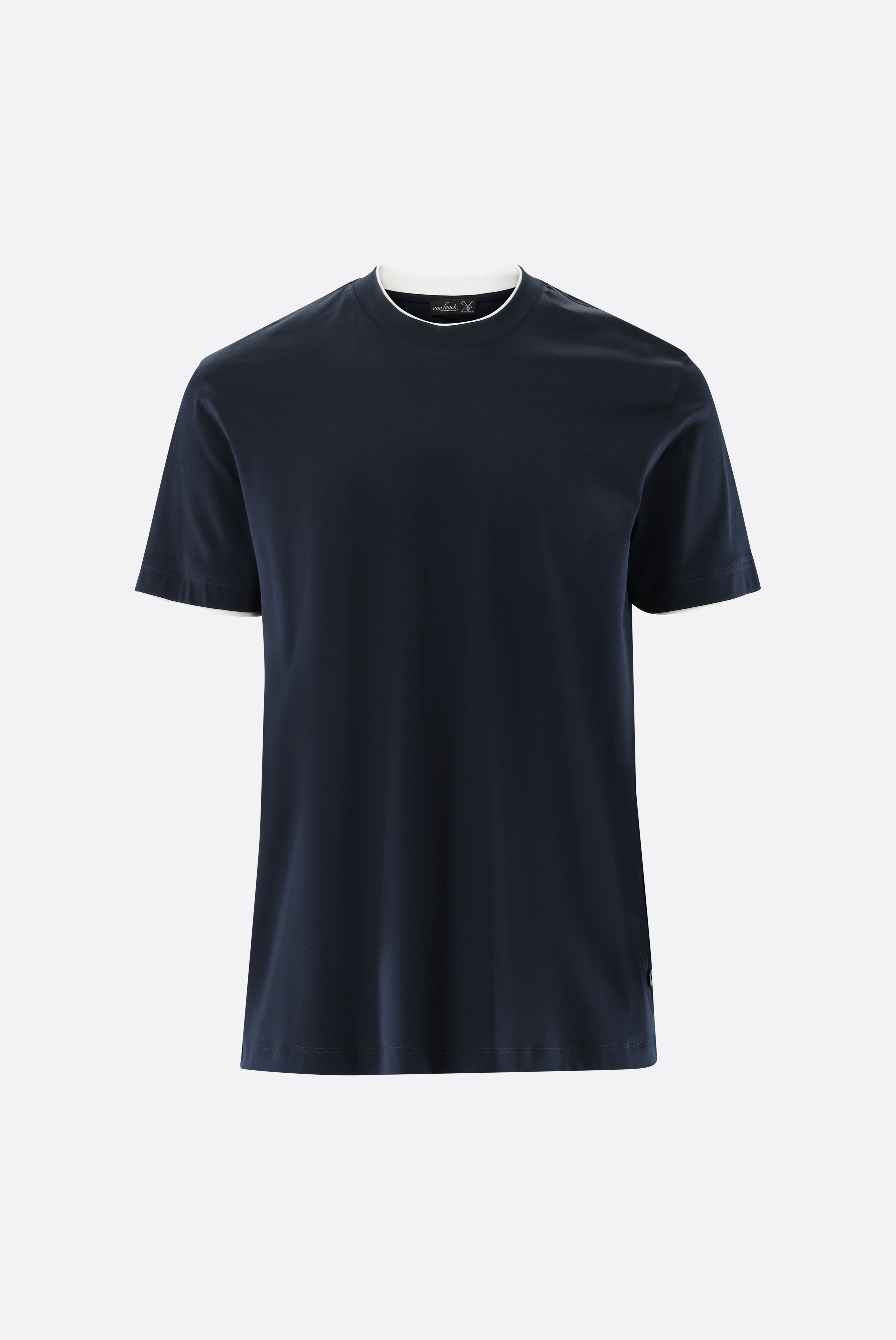 T-Shirt aus Swiss Cotton Jersey. Die Swiss Cotton Jersey Qualität, gefertigt aus besonders hochwertigem und weichem Interlock-Jersey mit Natural-Stretch, sorgt für ein luxuriöses Tragegefühl. Die glänzende Optik vollendet den edlen Look. Die hochwertigen Bauwollgarne aus Supima-Cotton sind besonders langlebig, strapazierfähig und farbbeständig.