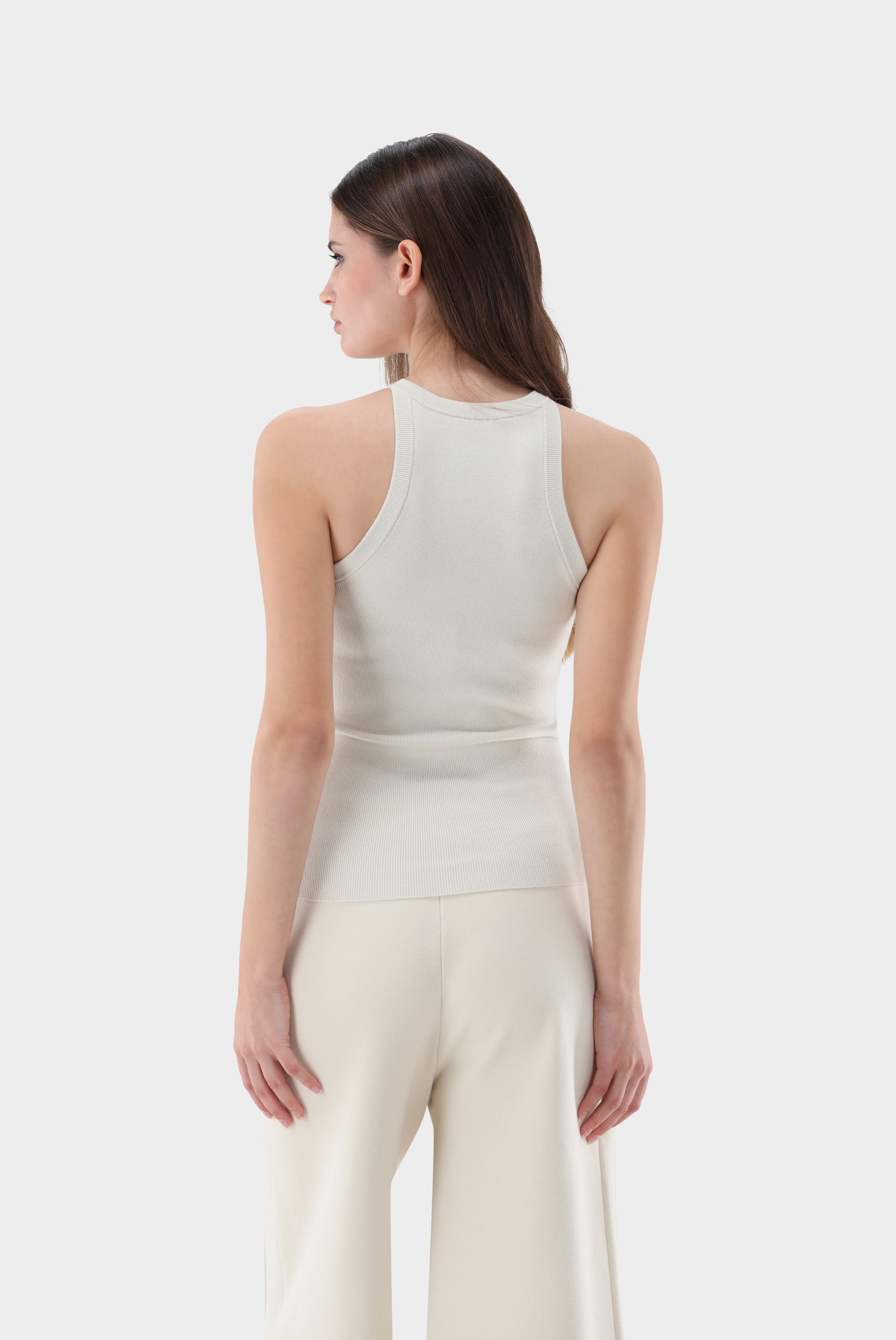 Look aus Tanktop aus Merino und Lamé