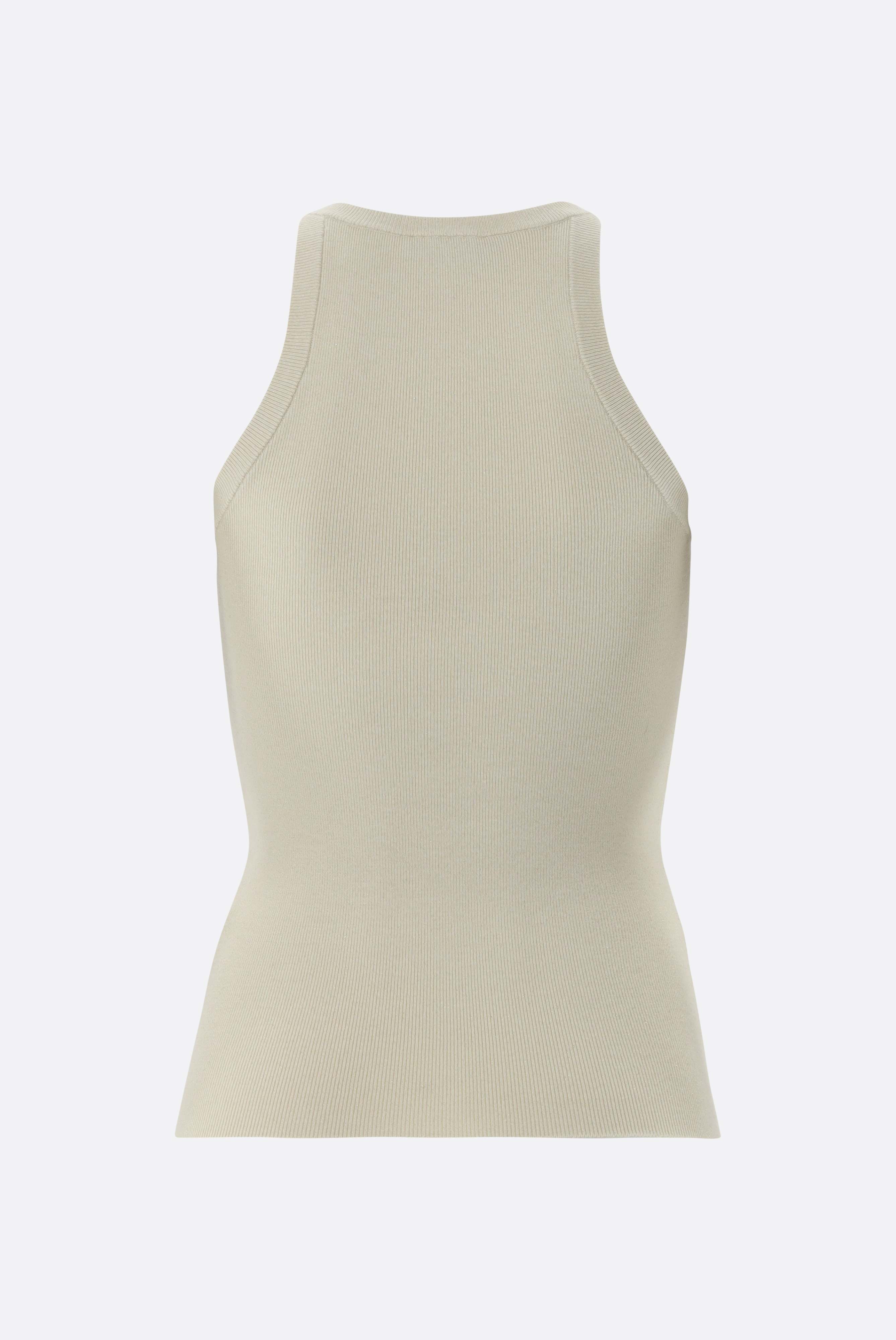 Dieses Tanktop aus ultra feiner Merino-Lamé-Mischung vereint Komfort mit einem eleganten Design. Der Slim-Fit-Schnitt sorgt für eine figurbetonte Passform, während das Rippenstrickmuster dem Top eine besondere Textur verleiht. Das Merino-Lamé-Gewebe sorgt für ein weiches Tragegefühl und eine dezente, glänzende Optik. Ideal für elegante Looks an warmen Tagen oder als stylisches Layering-Piece.