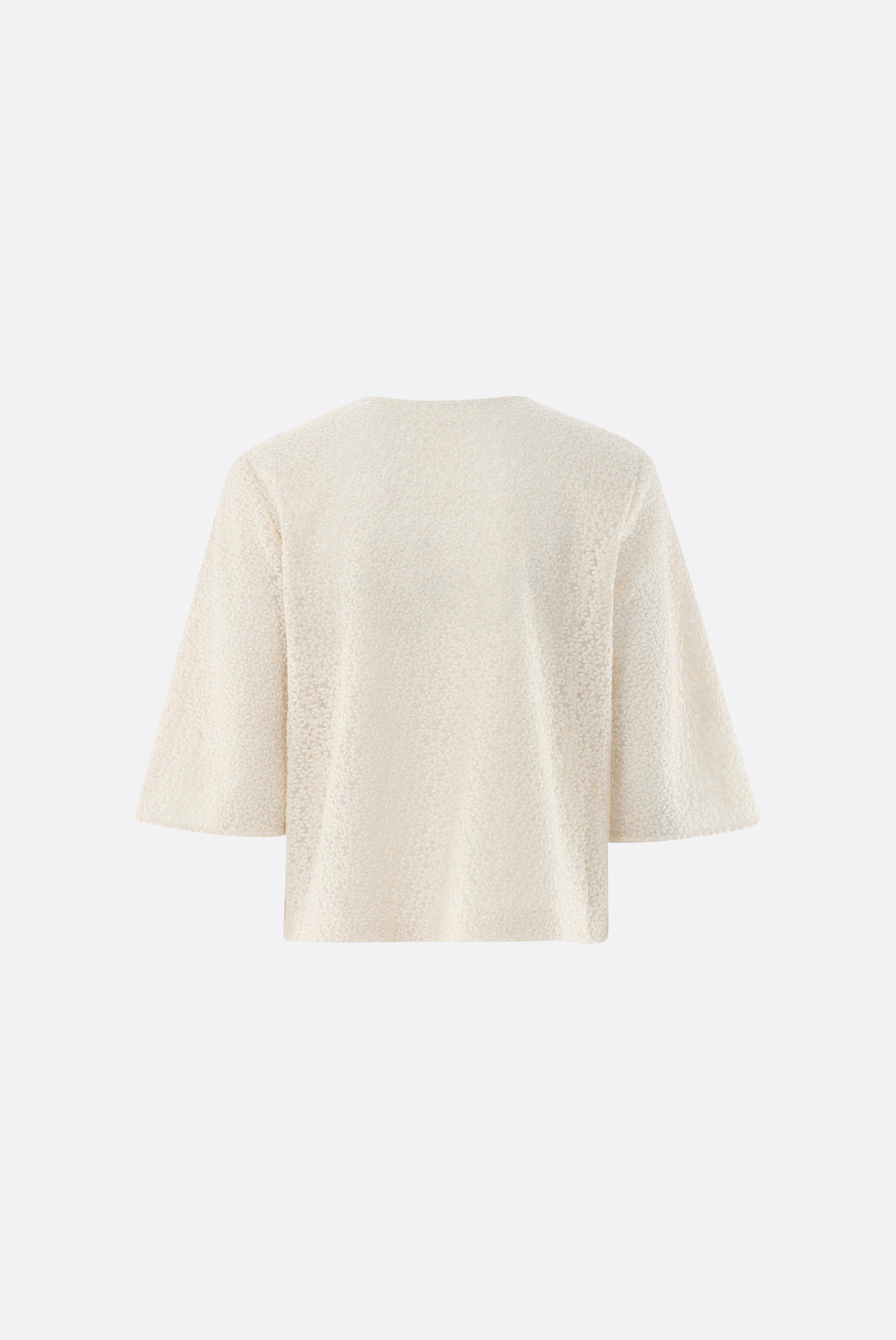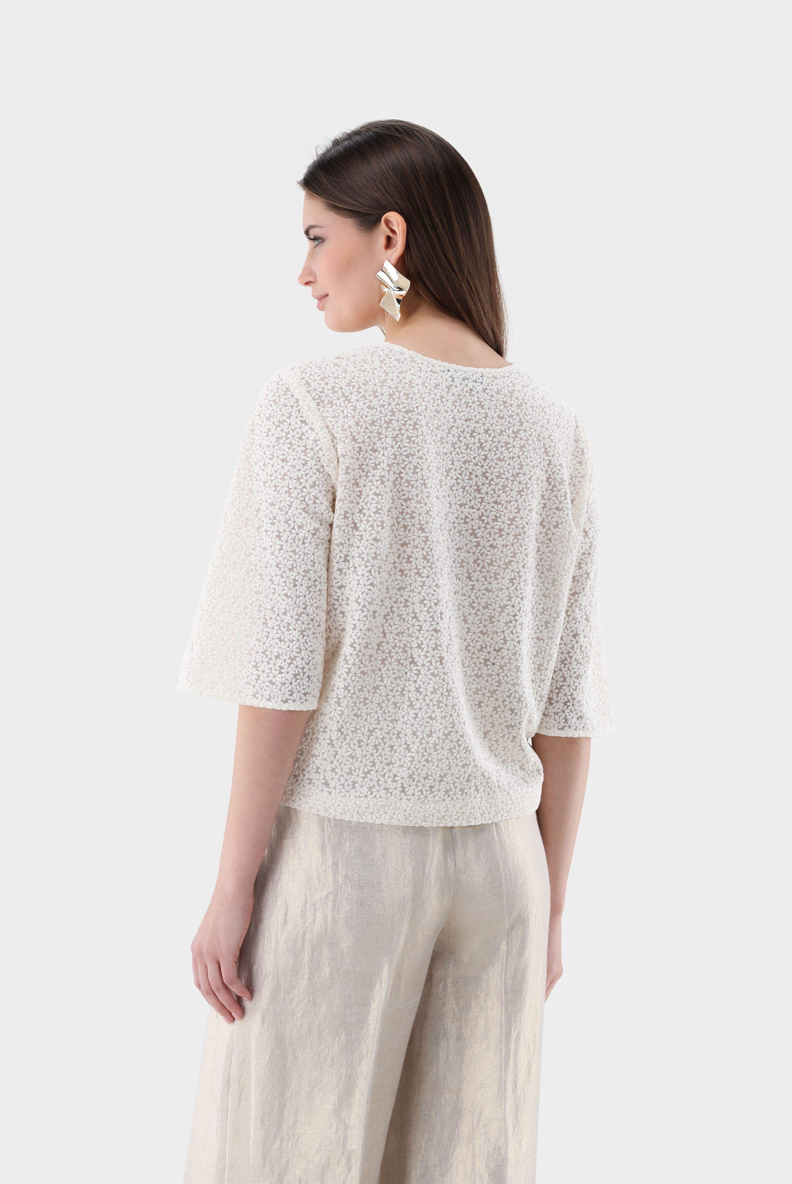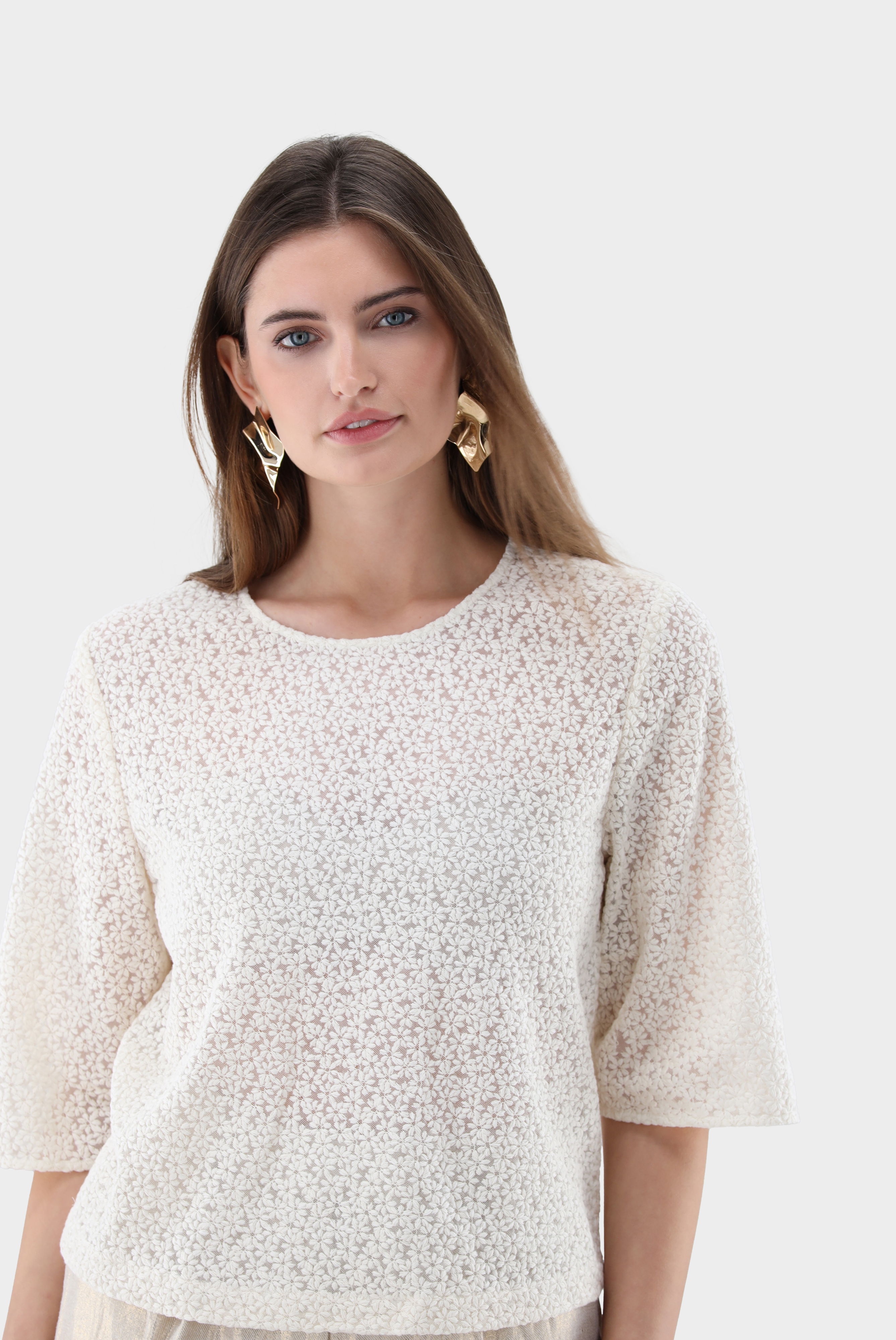 Dieses halb taillierte, kurze Top aus flexiblem Stretch-Mesh verbindet moderne Leichtigkeit mit kunstvoller Eleganz. Die detailreiche Blumenstickerei verleiht dem transparenten Material eine feminine, hochwertige Note und sorgt für eine besondere 3D-Wirkung. Durch die elastische Struktur sitzt das Top angenehm und formbetont. Ein vielseitiges Statement-Piece, das sich ideal für trendige Layering-Looks, Abend-Outfits und besondere Anlässe eignet.
