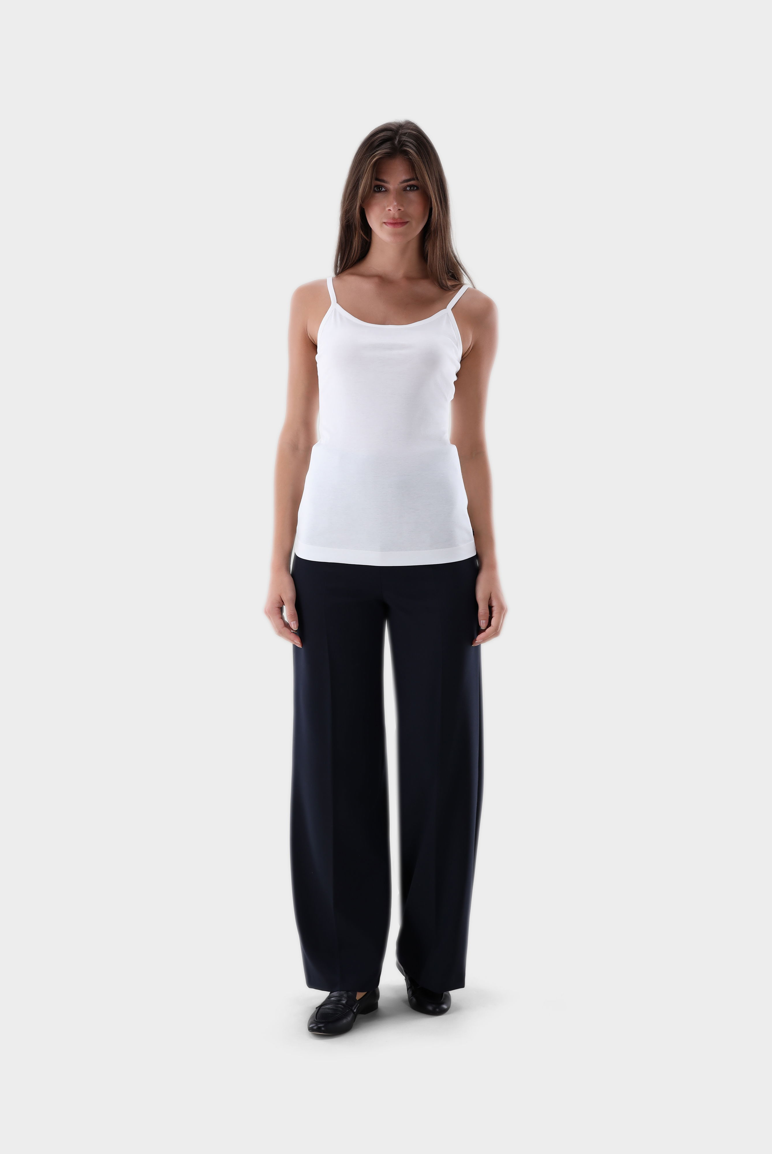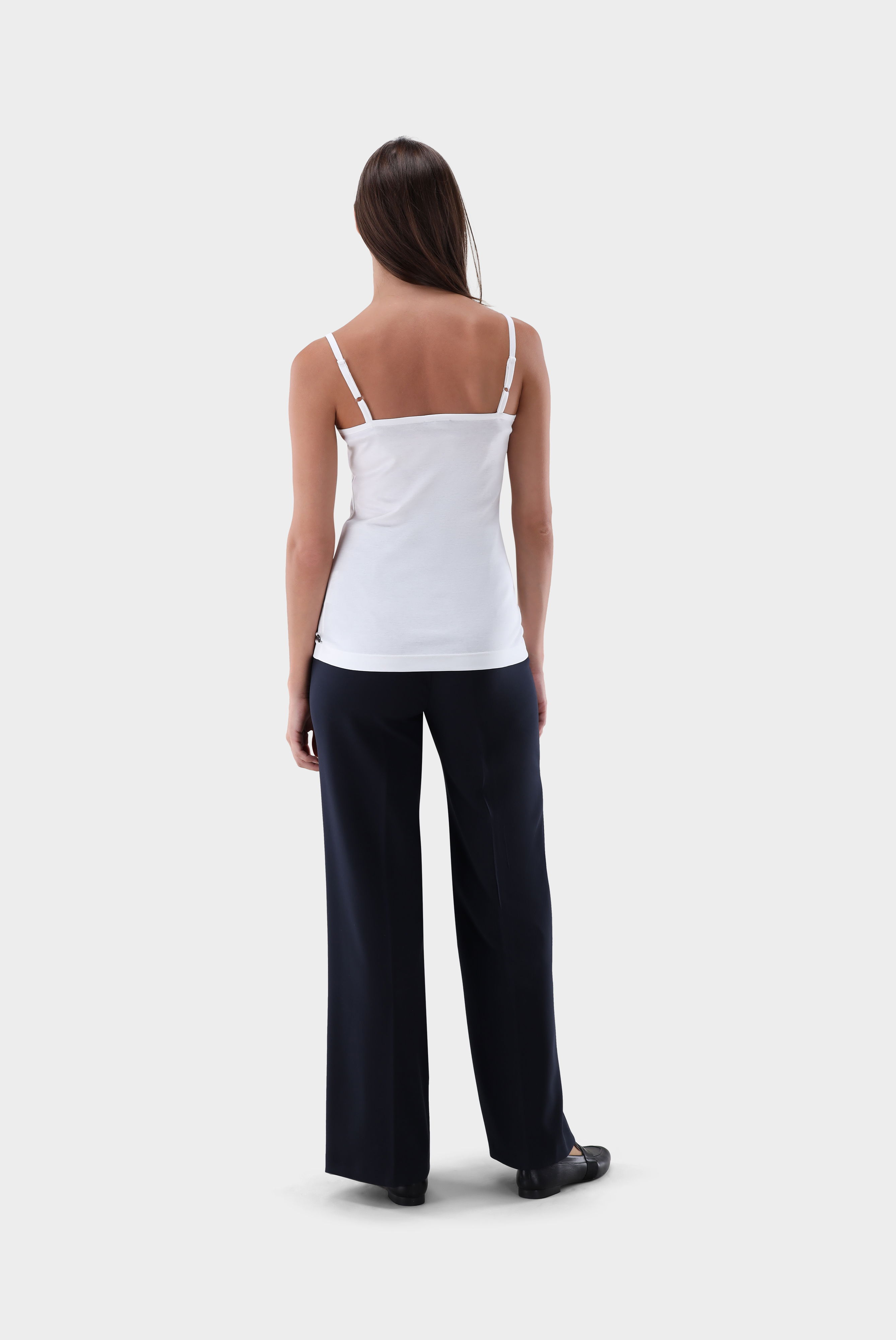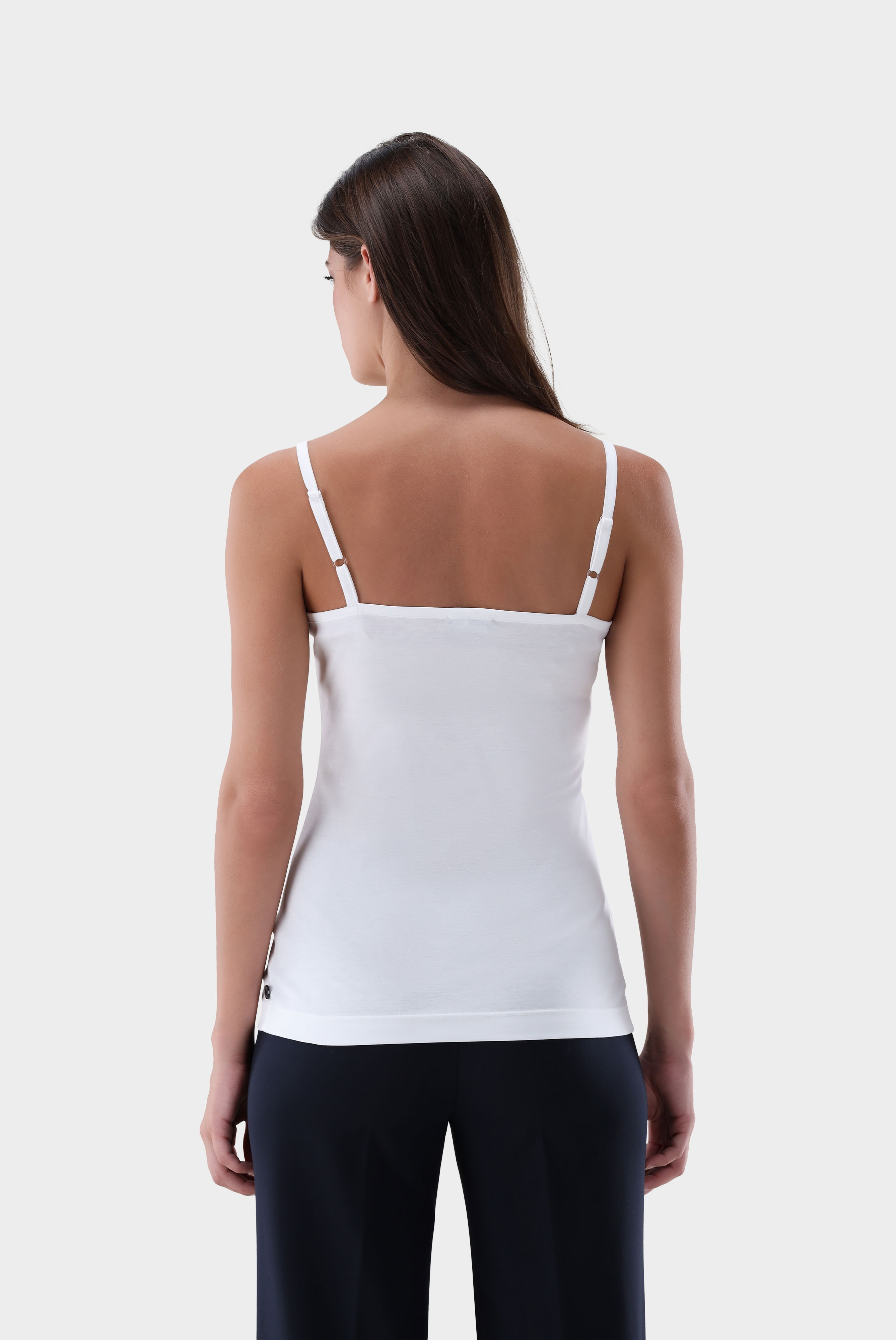 Dieses stilvolle Spaghetti-Träger-Top aus hochwertigem Schweizer Baumwolljersey überzeugt durch seinen schlichten, eleganten Look und die exzellente Passform. Der weiche und elastische Stoff sorgt für höchsten Tragekomfort, während die verstellbaren Träger eine individuelle Anpassung ermöglichen. Je nach Kombination passt das Top perfekt zu casual, festlichen oder auch geschäftlichen Anlässen.