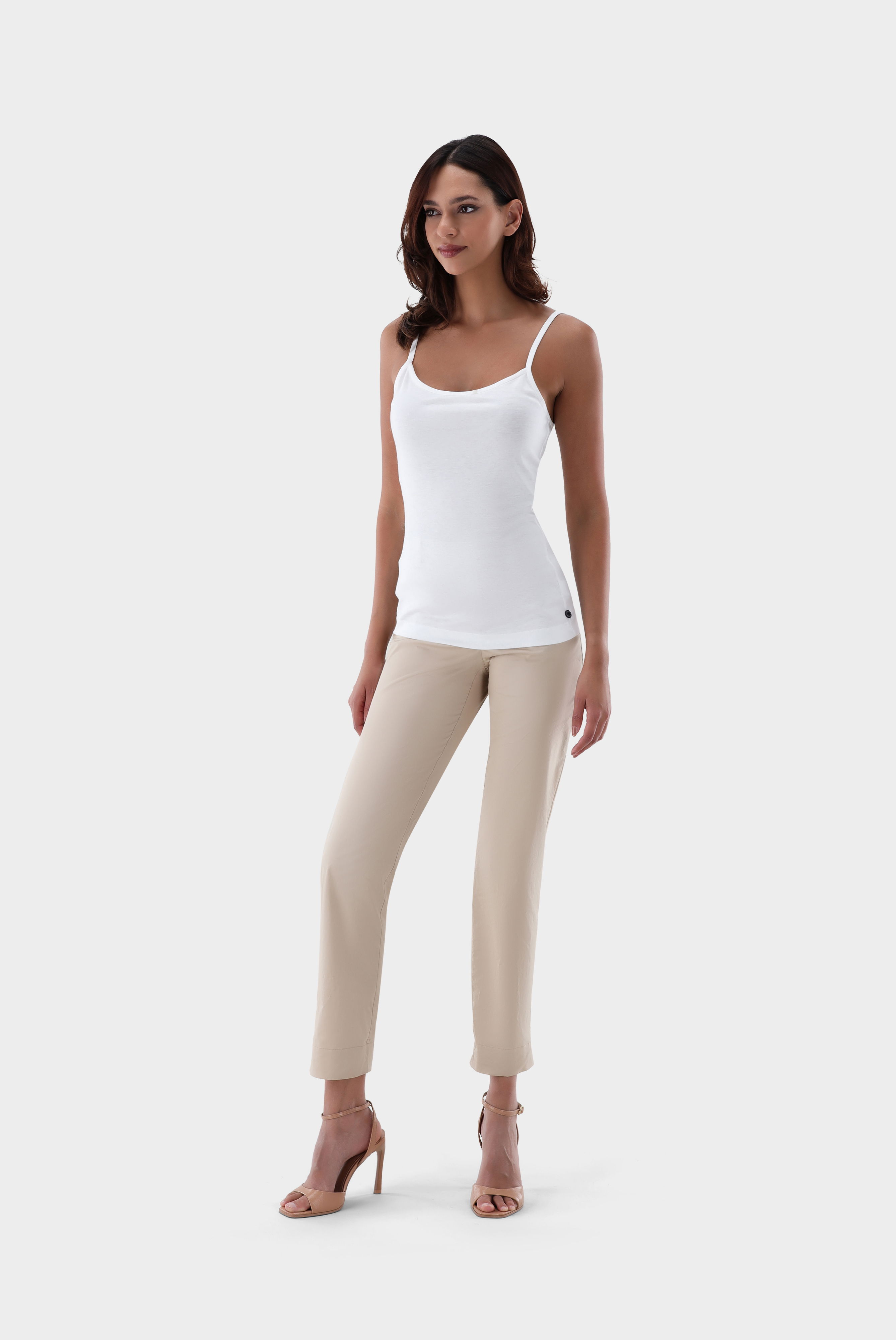 Dieses stilvolle Spaghetti-Träger-Top aus hochwertigem Schweizer Baumwolljersey überzeugt durch seinen schlichten, eleganten Look und die exzellente Passform. Der weiche und elastische Stoff sorgt für höchsten Tragekomfort, während die verstellbaren Träger eine individuelle Anpassung ermöglichen. Je nach Kombination passt das Top perfekt zu casual, festlichen oder auch geschäftlichen Anlässen.