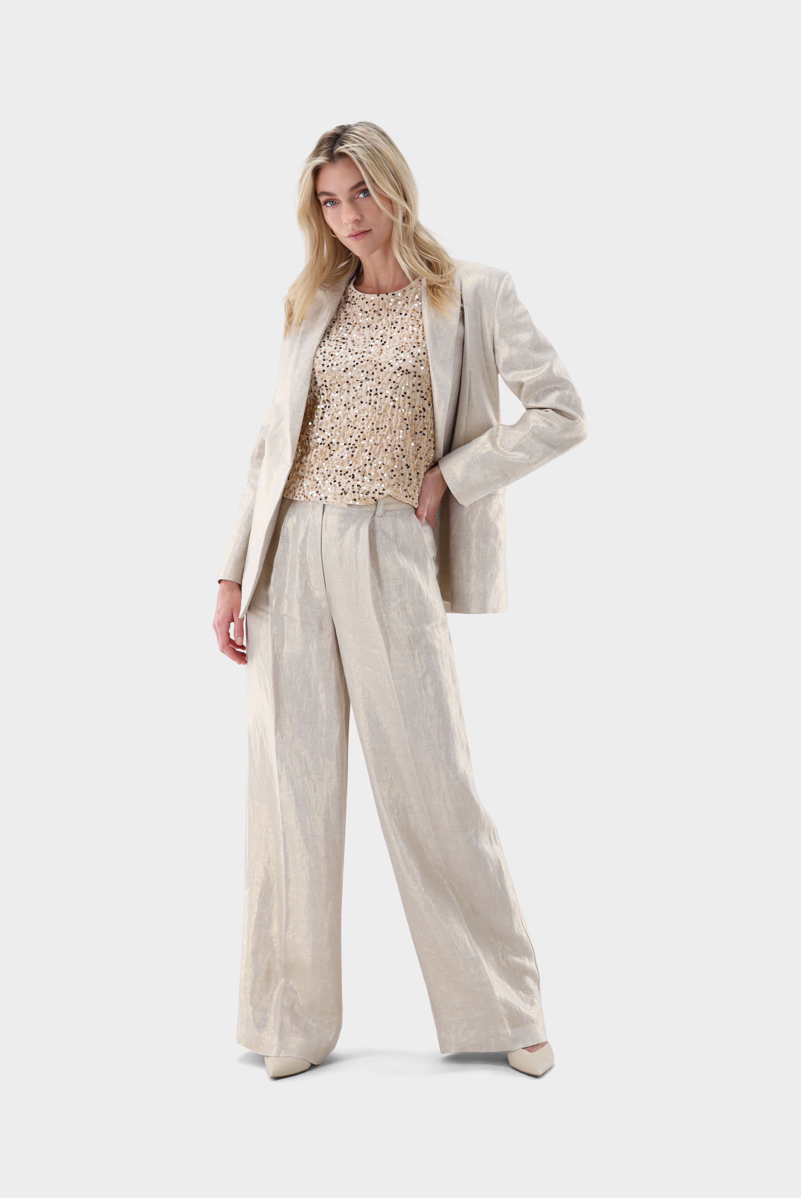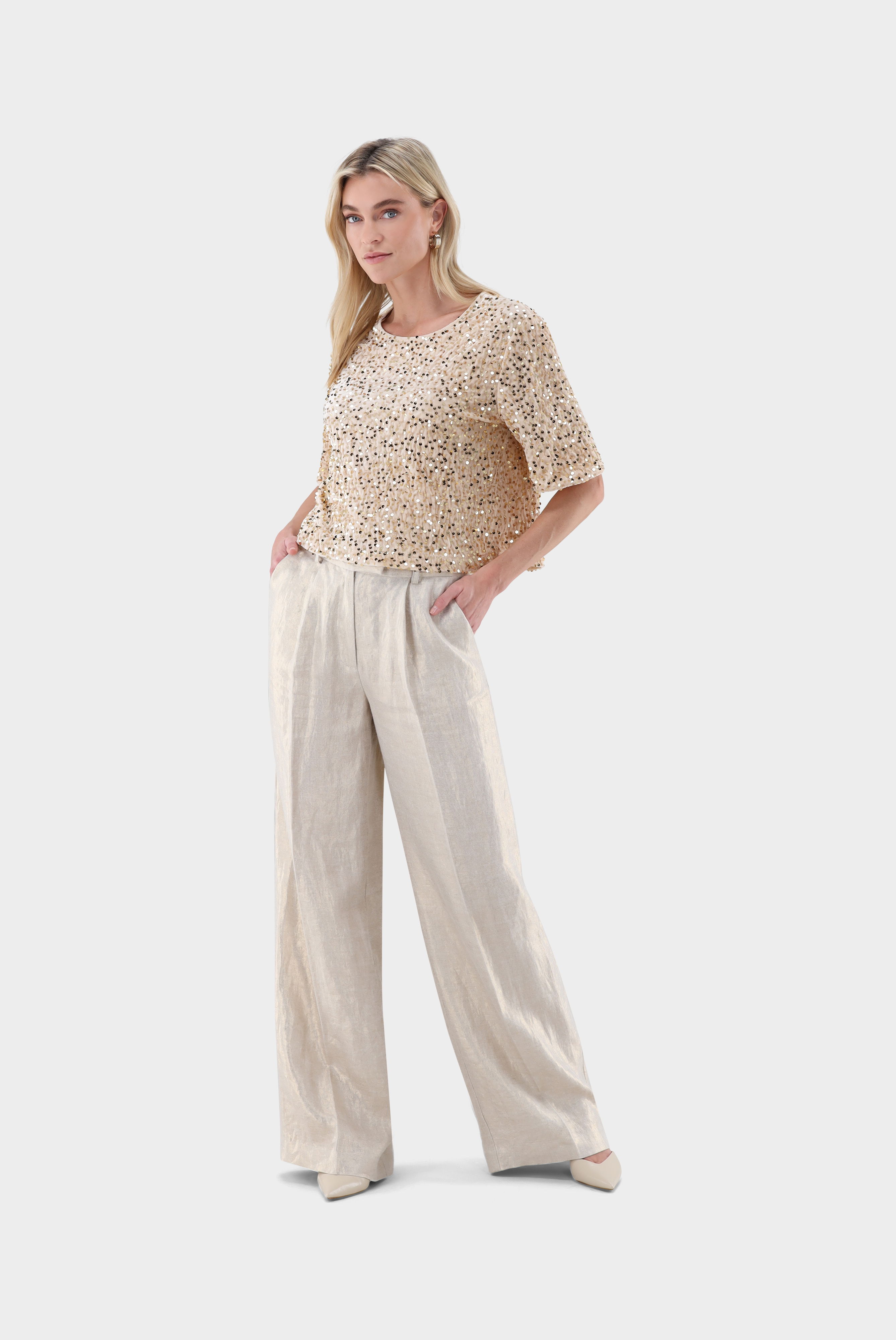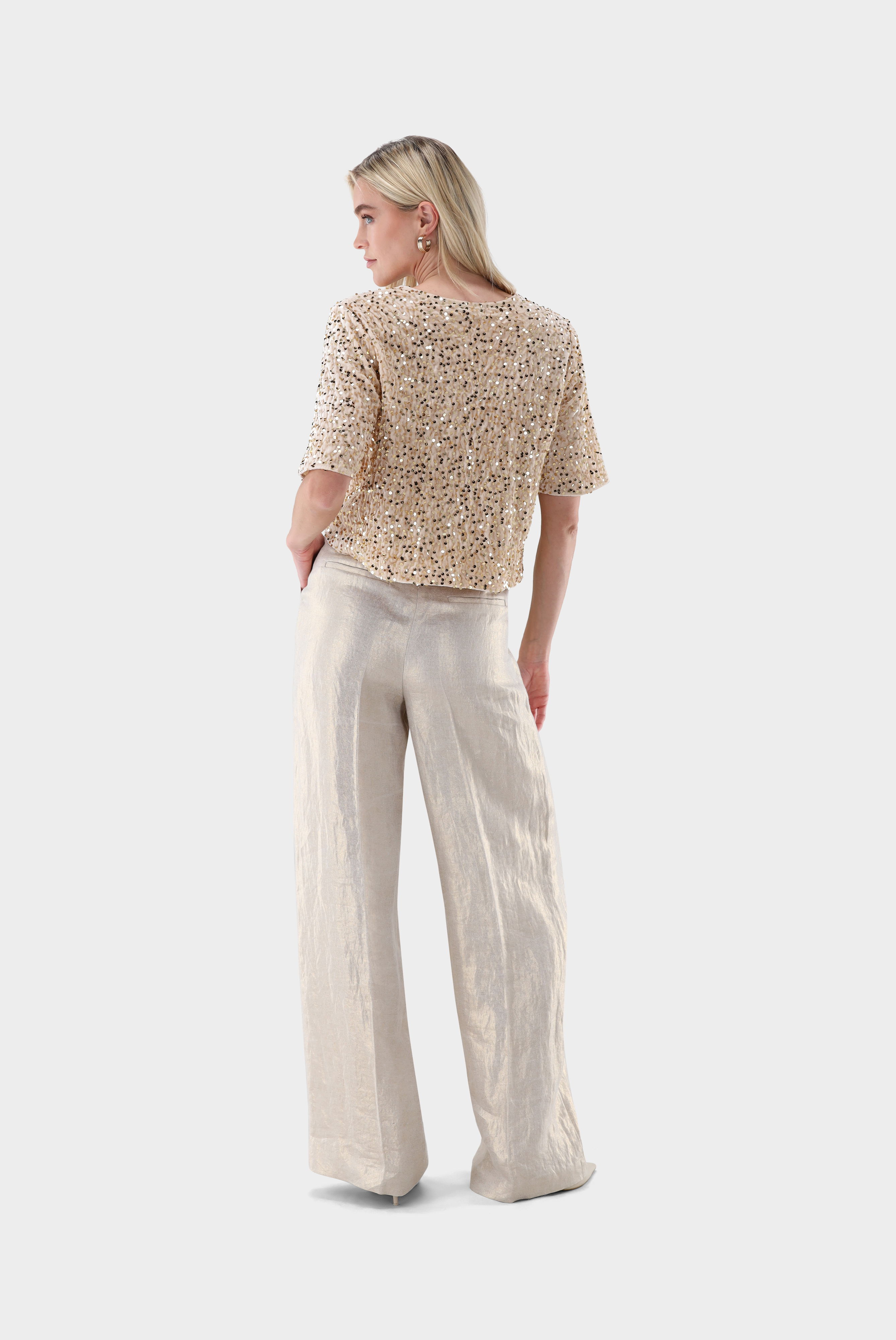Das kurzarm Pailletten Top verfügt über einen Boxy Fit und eignet sich ideal für festive Anlässe. Die lockere geschittene Passform, und eine leichte Fütterung sorgen für einen angenehmen Tragekomfort.