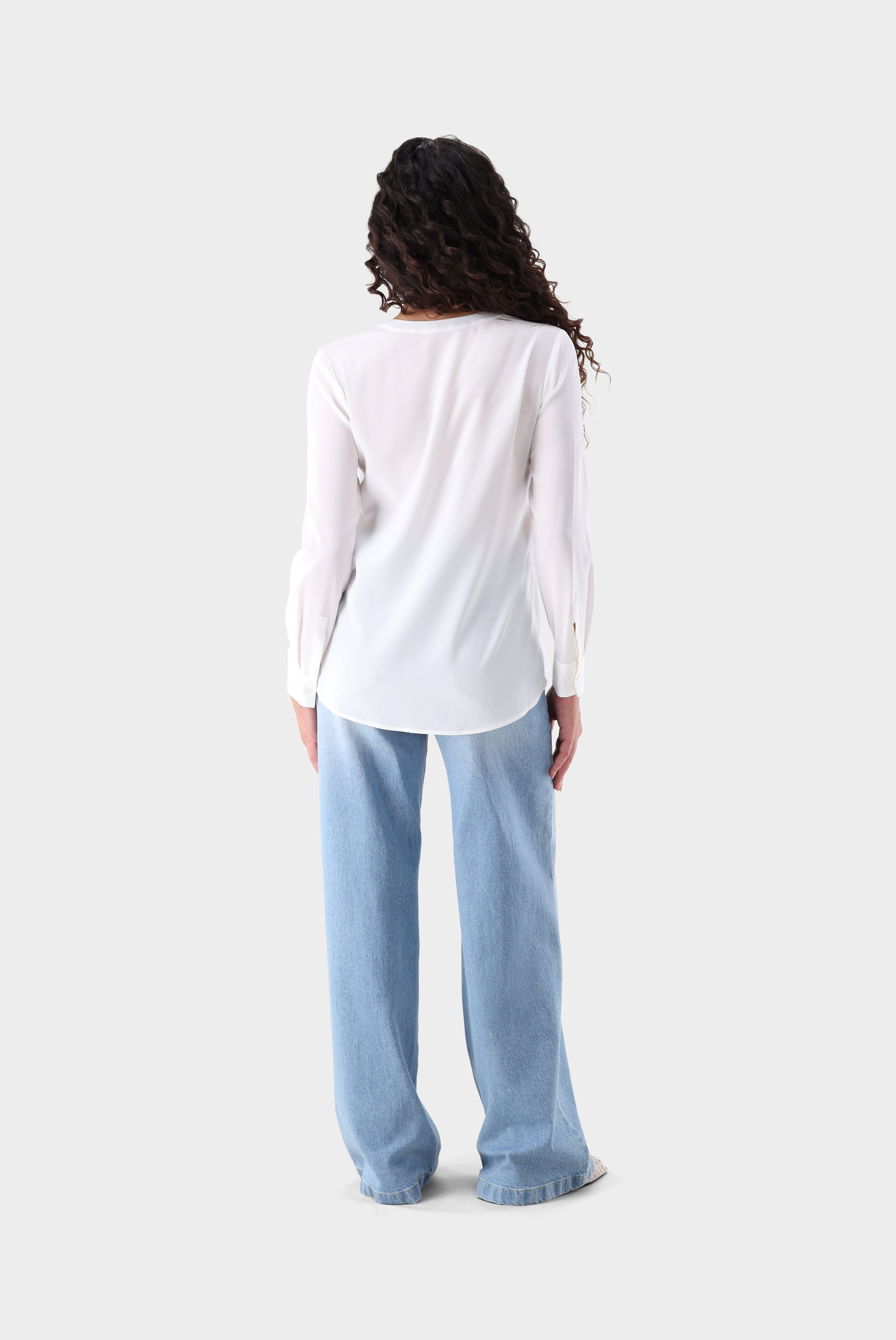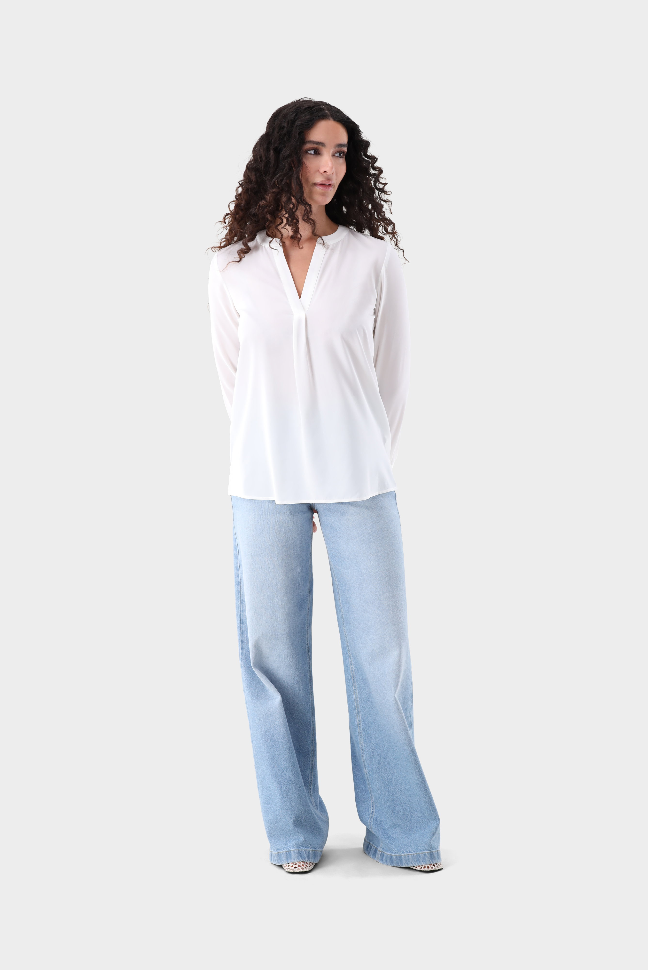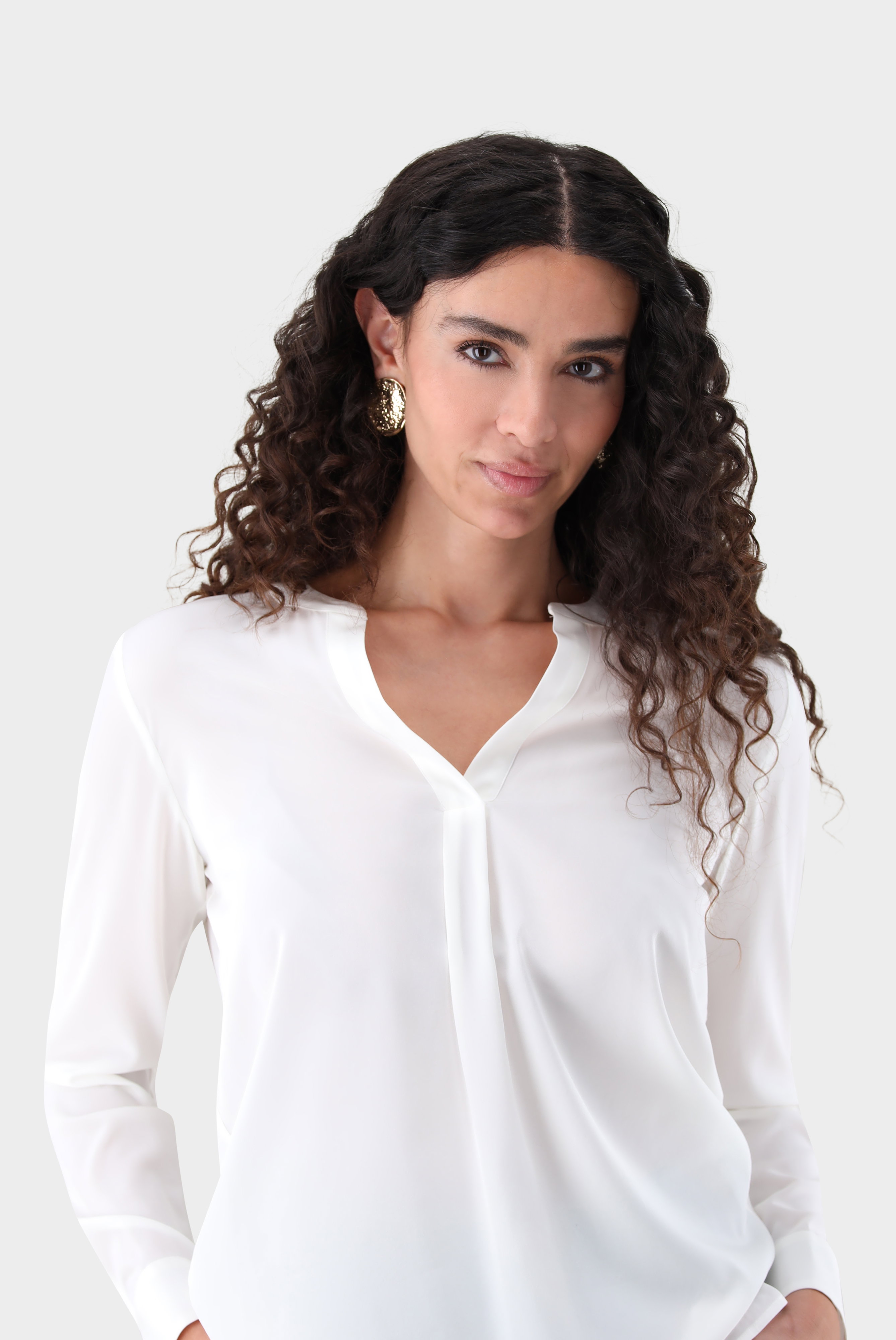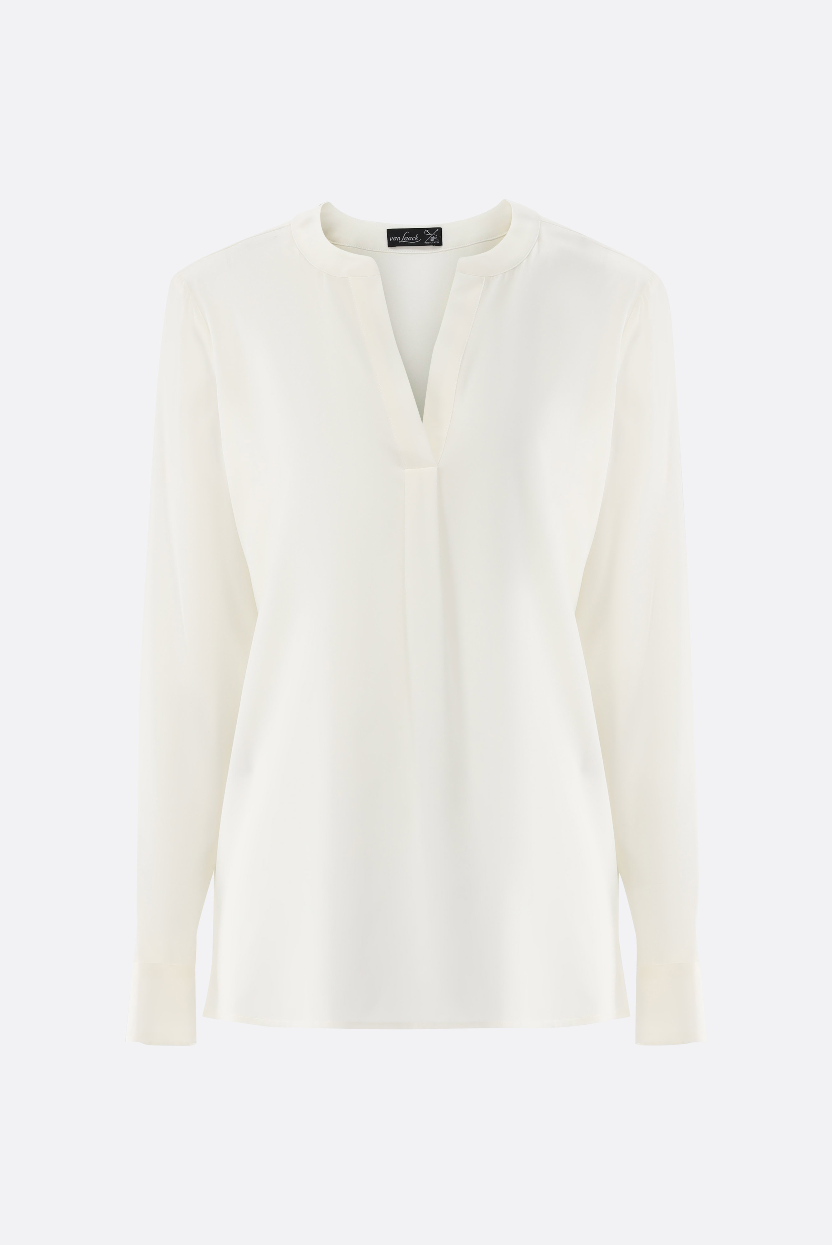 Die Tunika mit Seide und Stretch präsentiert sich in einem zeitlosen Design und ist perfekt für einen legeren Look! Das Oberteil kombiniert Seide mit Elastan für Tragekomfort und Flexibilität. Der kragenlose Stil verleiht ein modernes Flair, während der kleine V-Ausschnitt einen optischen Akzent setzt. Die kurze Manschette vervollständigt das schicke Erscheinungsbild dieser Tunika.