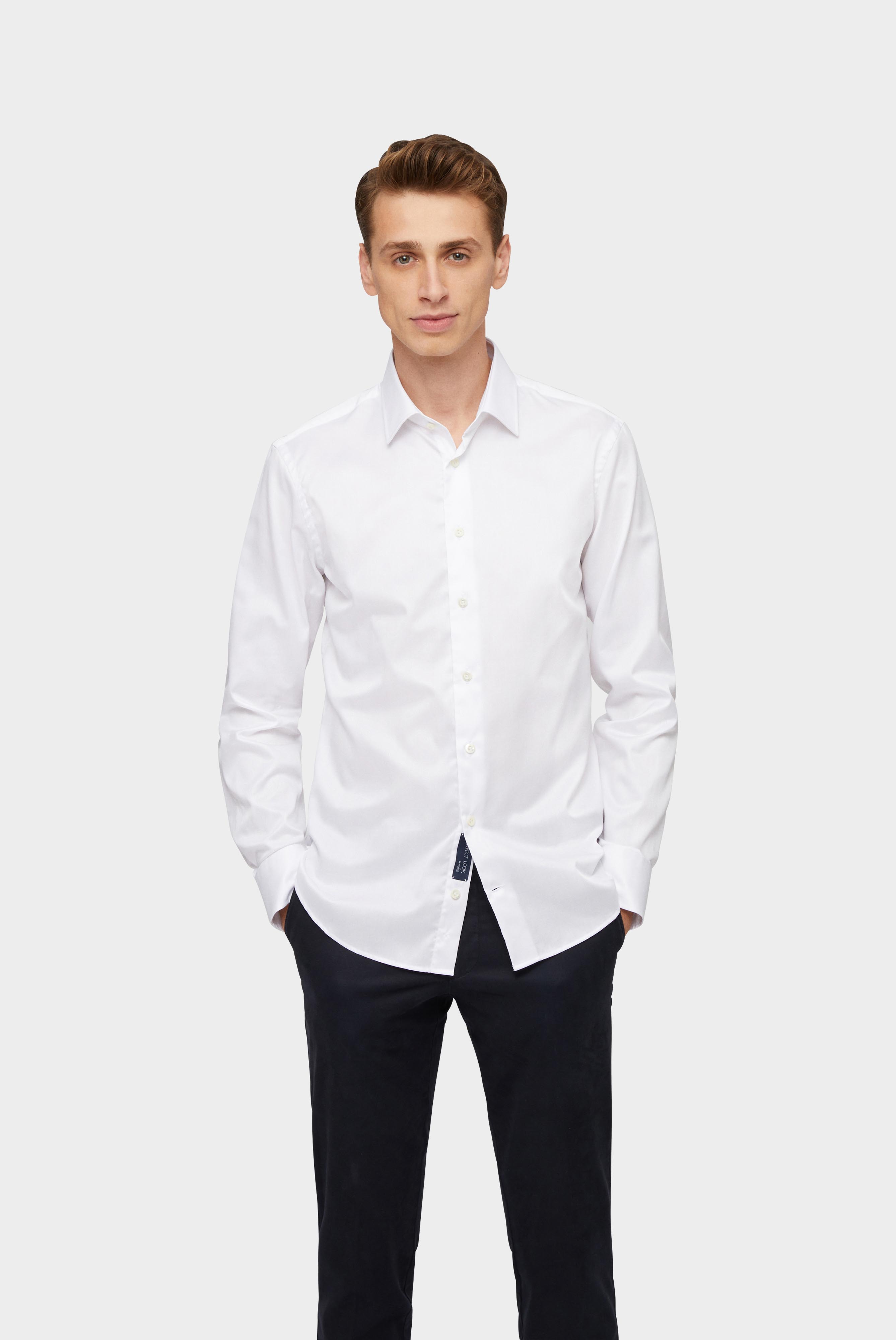 Dieses bügelfreie Slim Fit-Twill Hemd ist ein vielseitiges Essential für Ihre Garderobe. Seine maskuline Ästhetik und dezente Taillierung machen es zum perfekten Begleiter für Anlässe wie Hochzeiten oder Feste. Mit seinem Uni-Muster und dem Kentkragen fügt es sich nahtlos in jedes Business-Outfit ein. Die sportliche Manschette verleiht dem Hemd eine zeitgemäße Note.