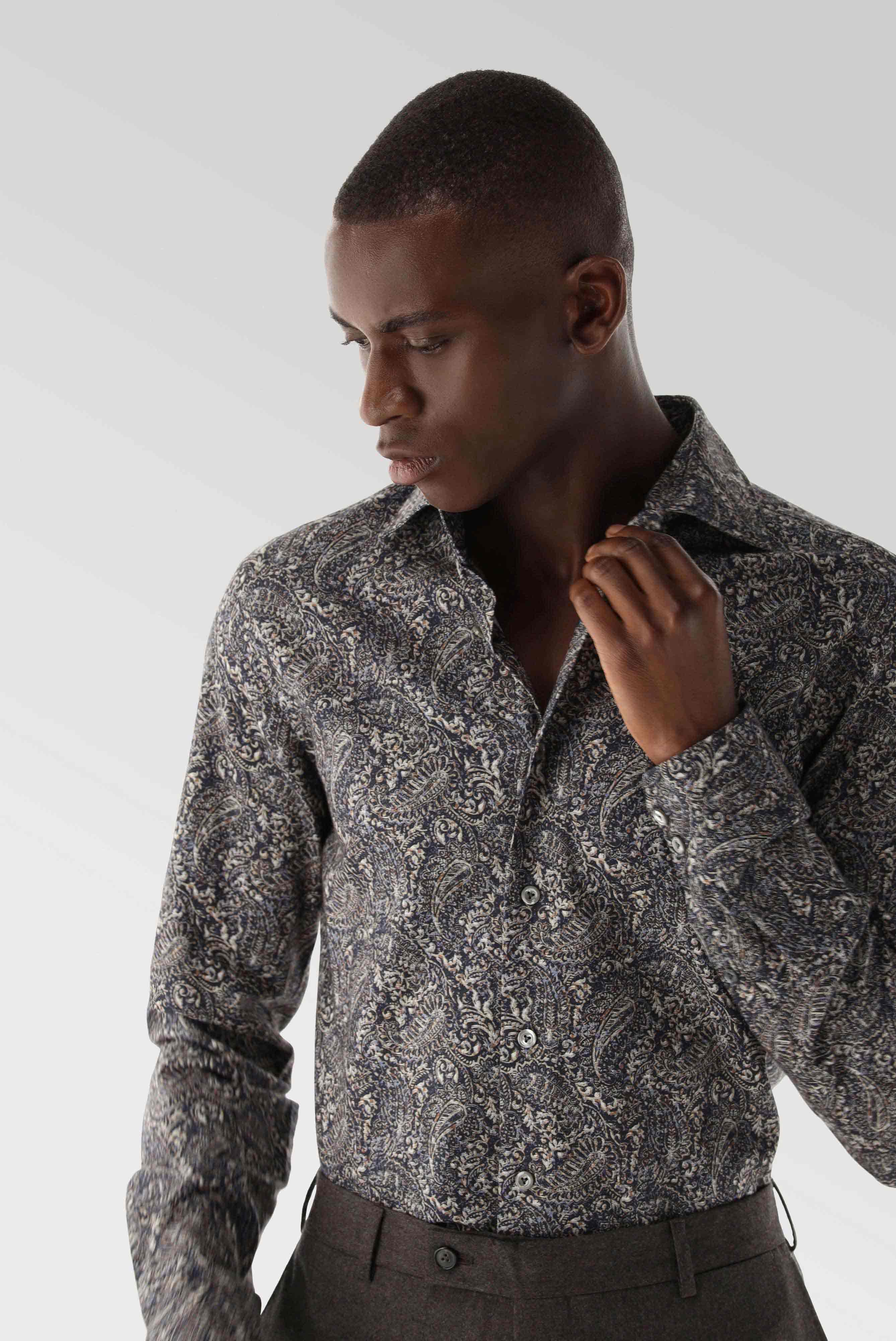 Look aus Twill Hemd mit Paisley Druck Tailor Fit