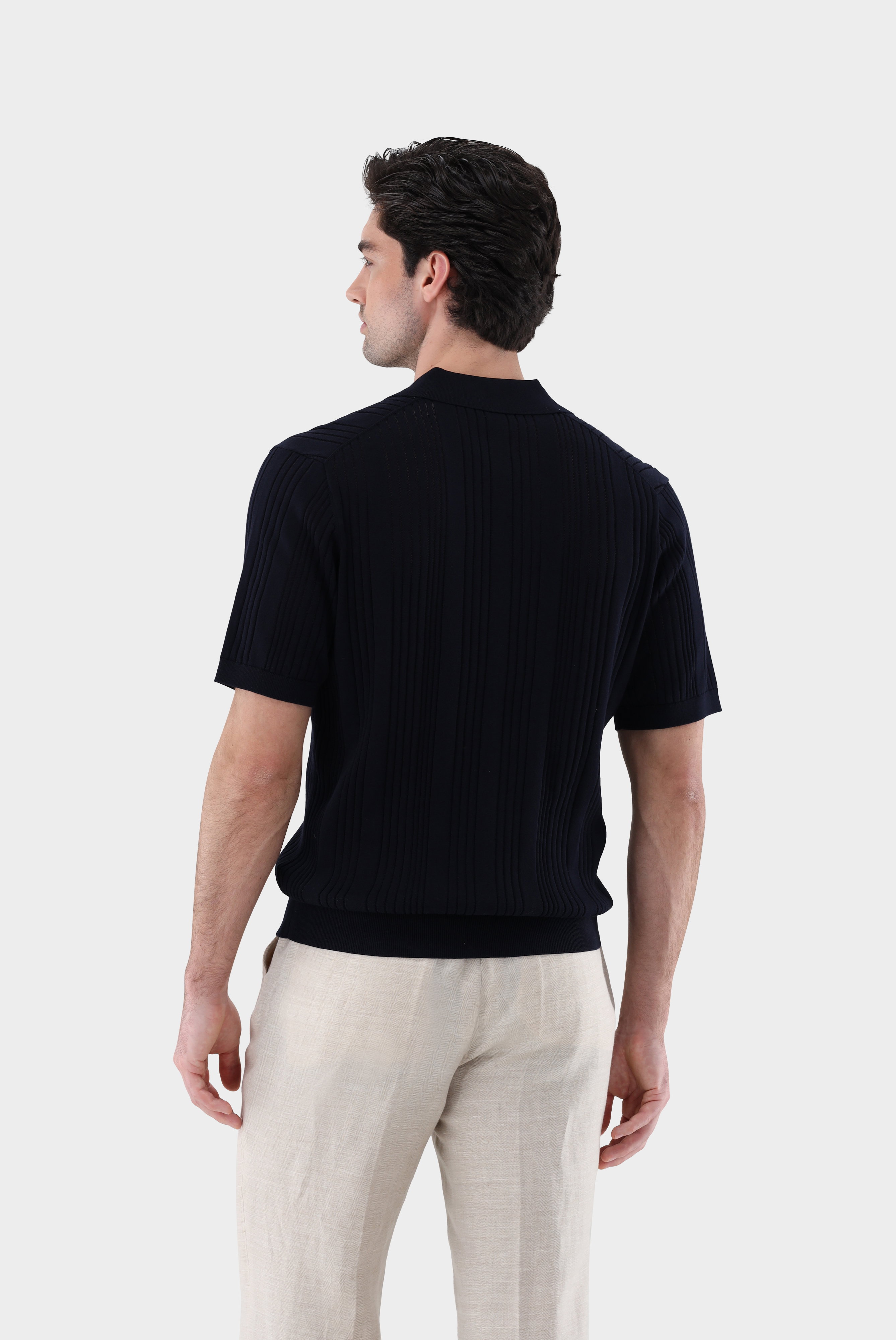 Das StrickPoloshirt mit V-Ausschnitt und Streifen Struktur aus Air Cotton überzeugt durch Tragekomfort und hochwertige Verarbeitung. Der Einsatz von gezwirnten, fein gestrickten Baumwollgarnen mit einer modernen Struktur in Streifen-Form, welche gleichzeitig blickdicht sind, bewirkt besondere Luftdurchlässigkeit und verleiht dem Hemd einen besonders modernen look.