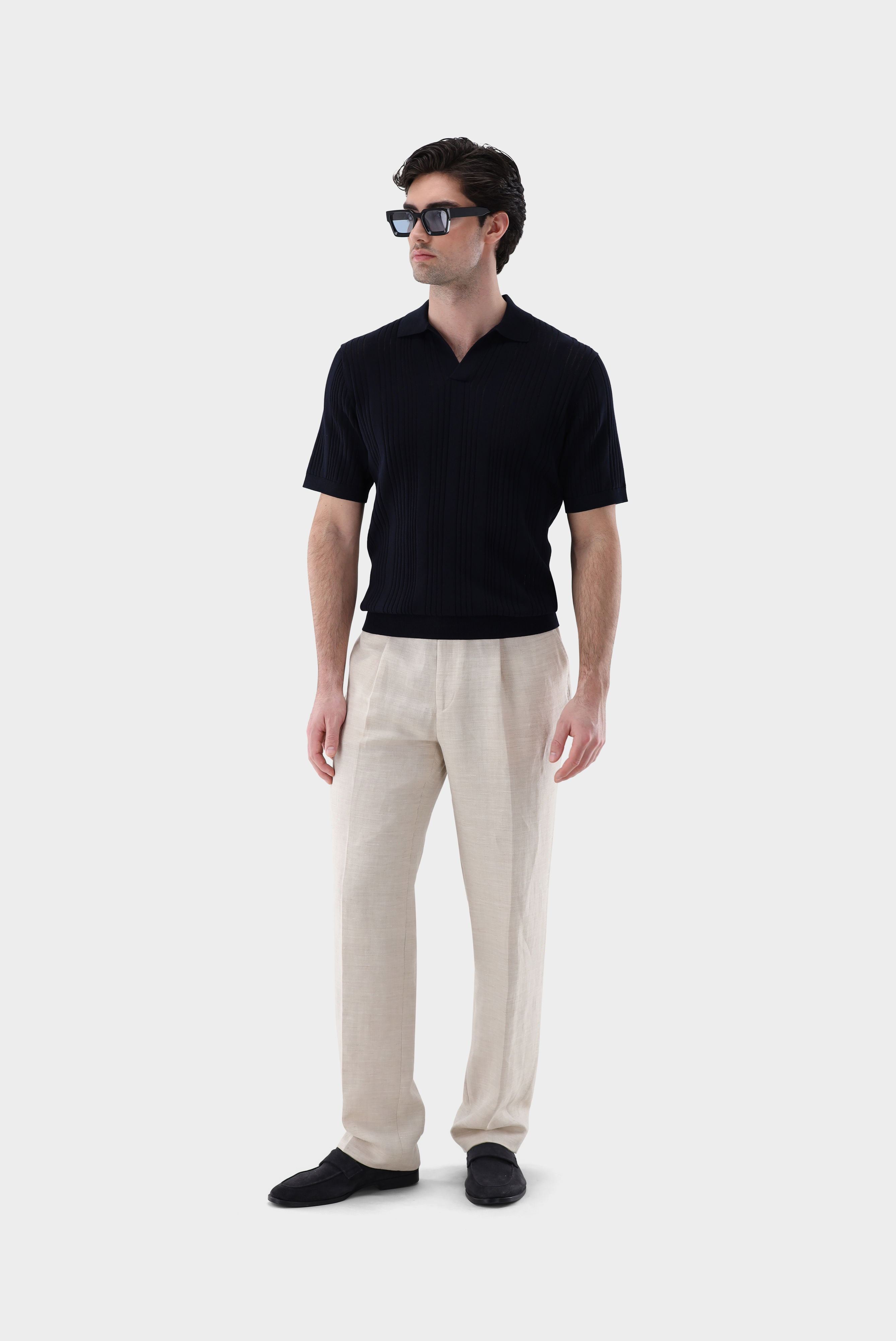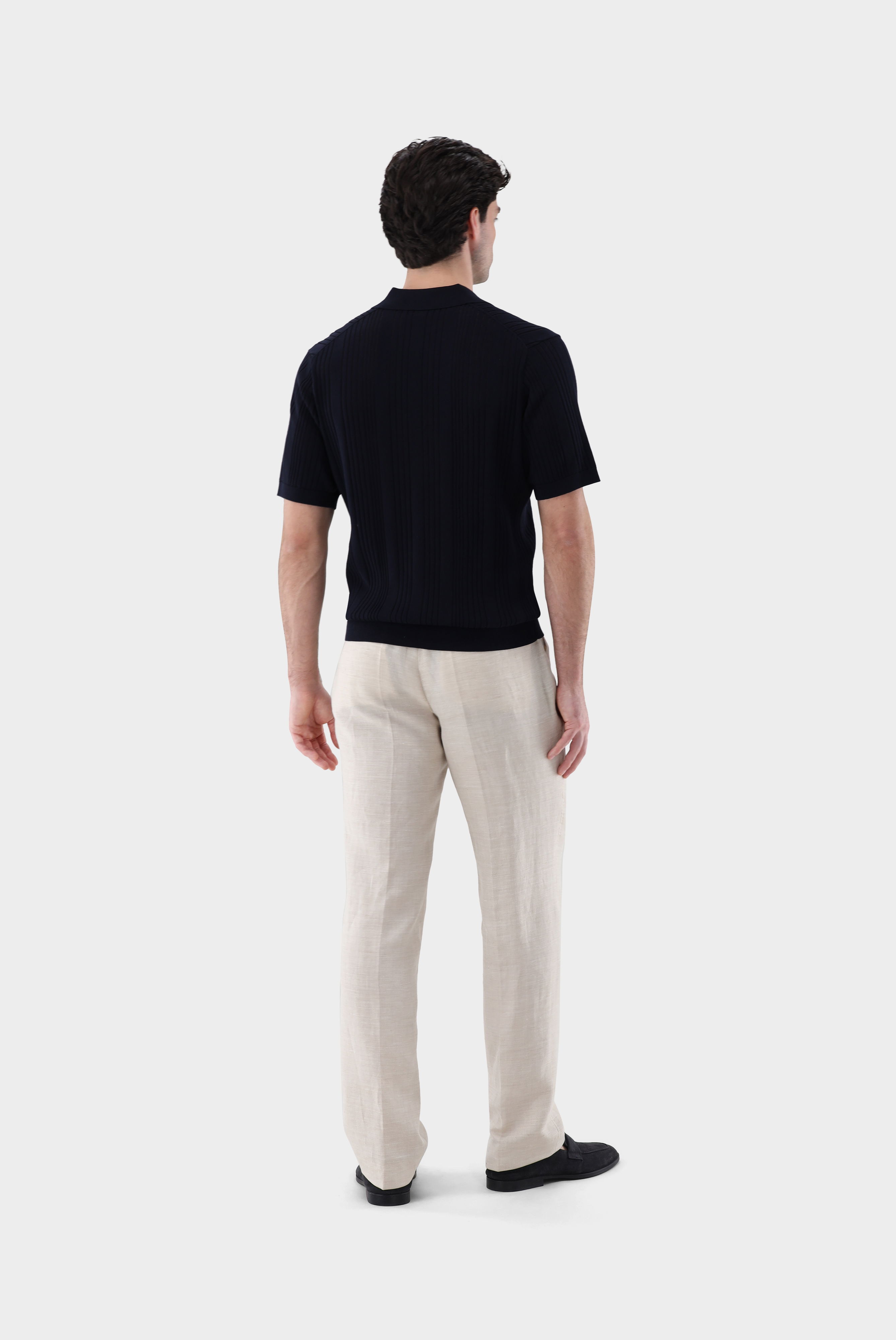 Look aus V-Neck Poloshirt mit Streifen-Struktur aus Air Cotton