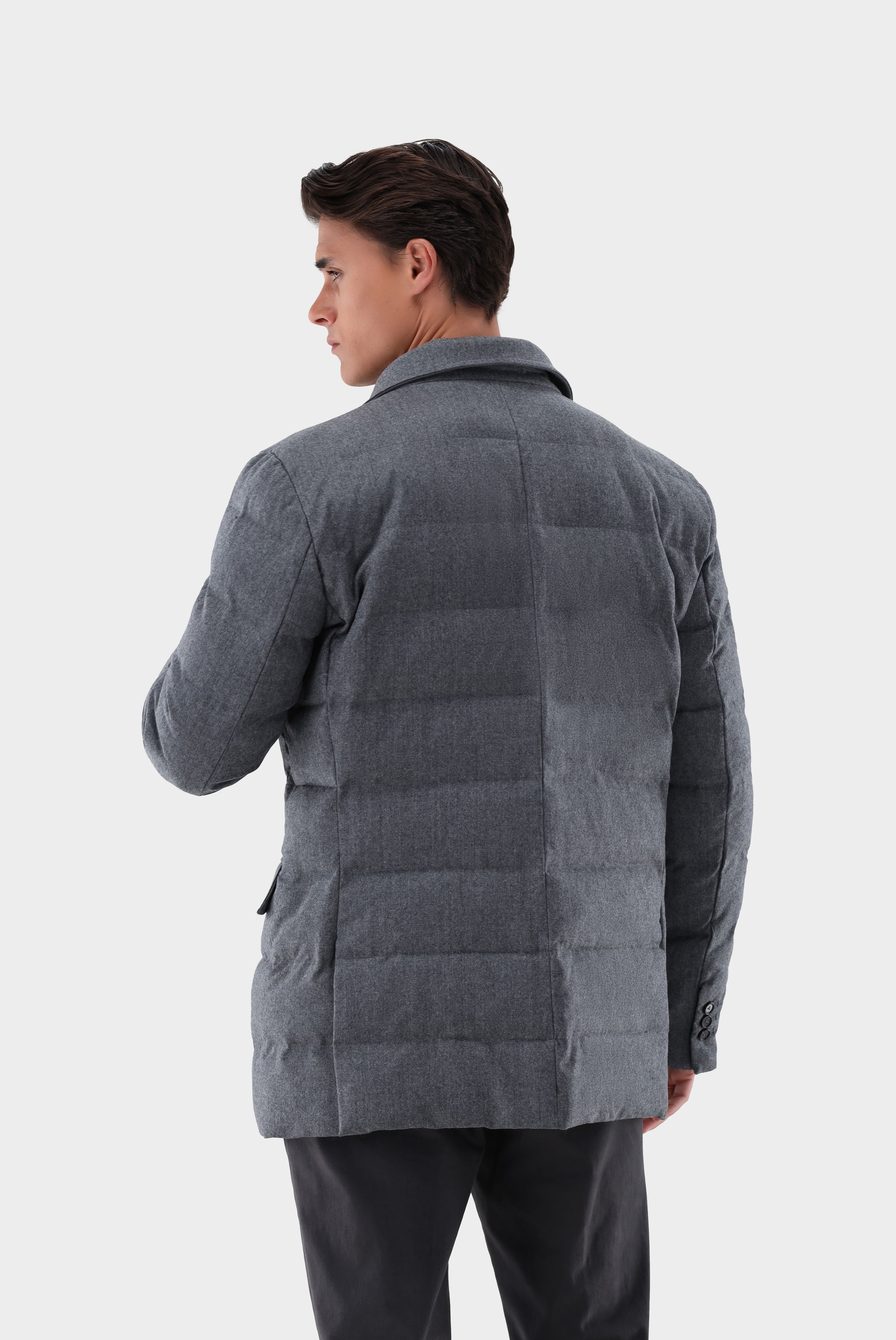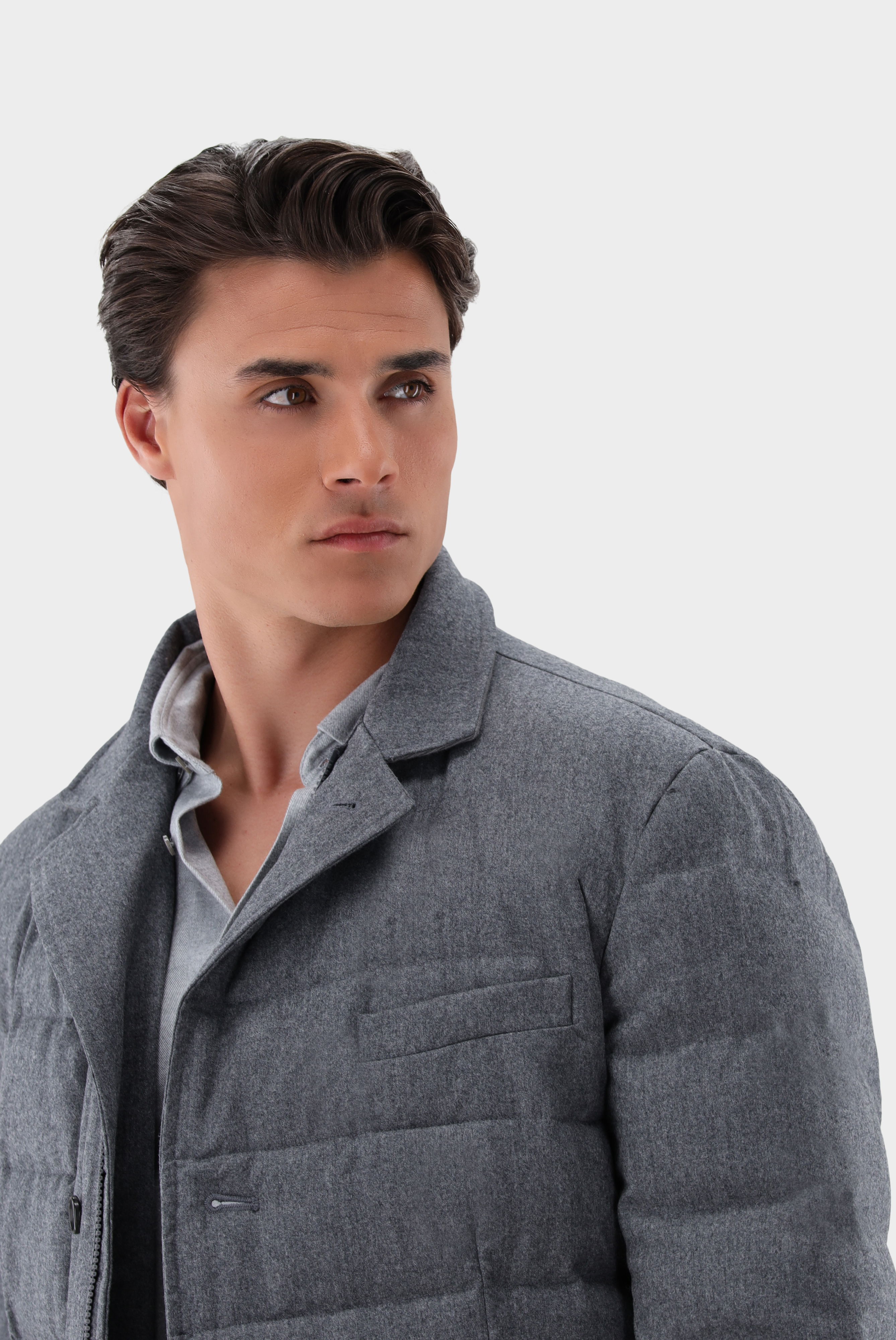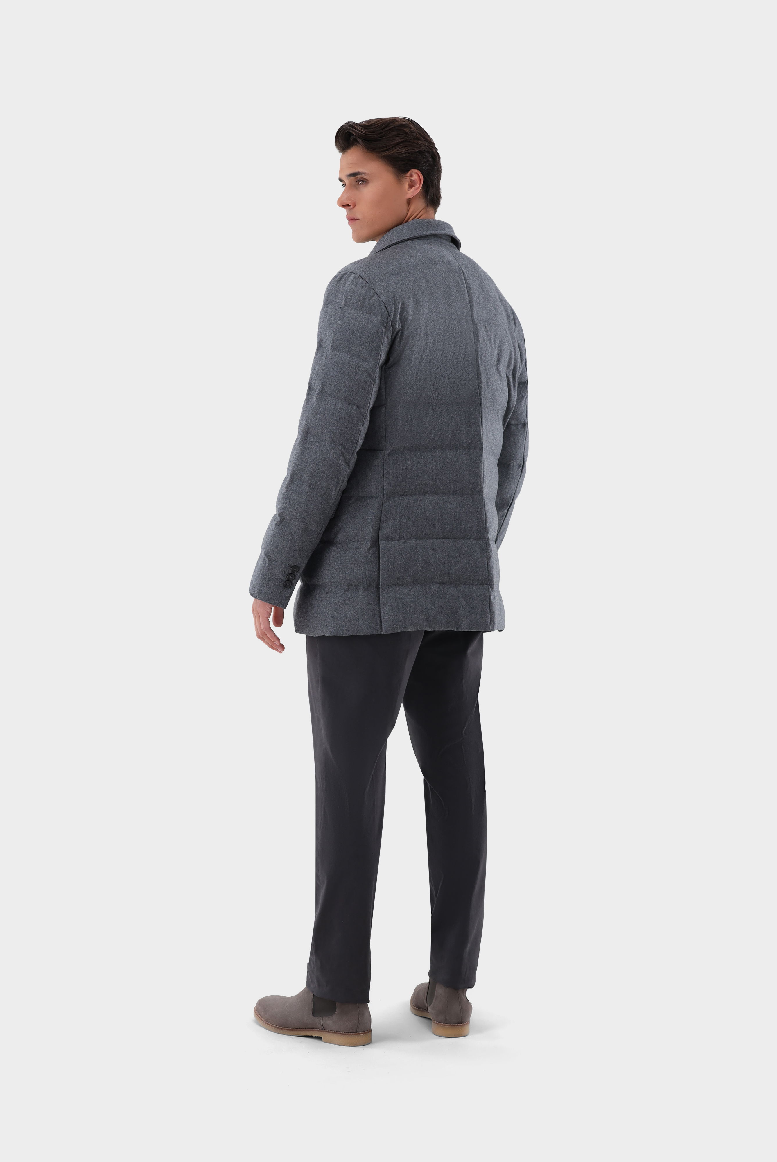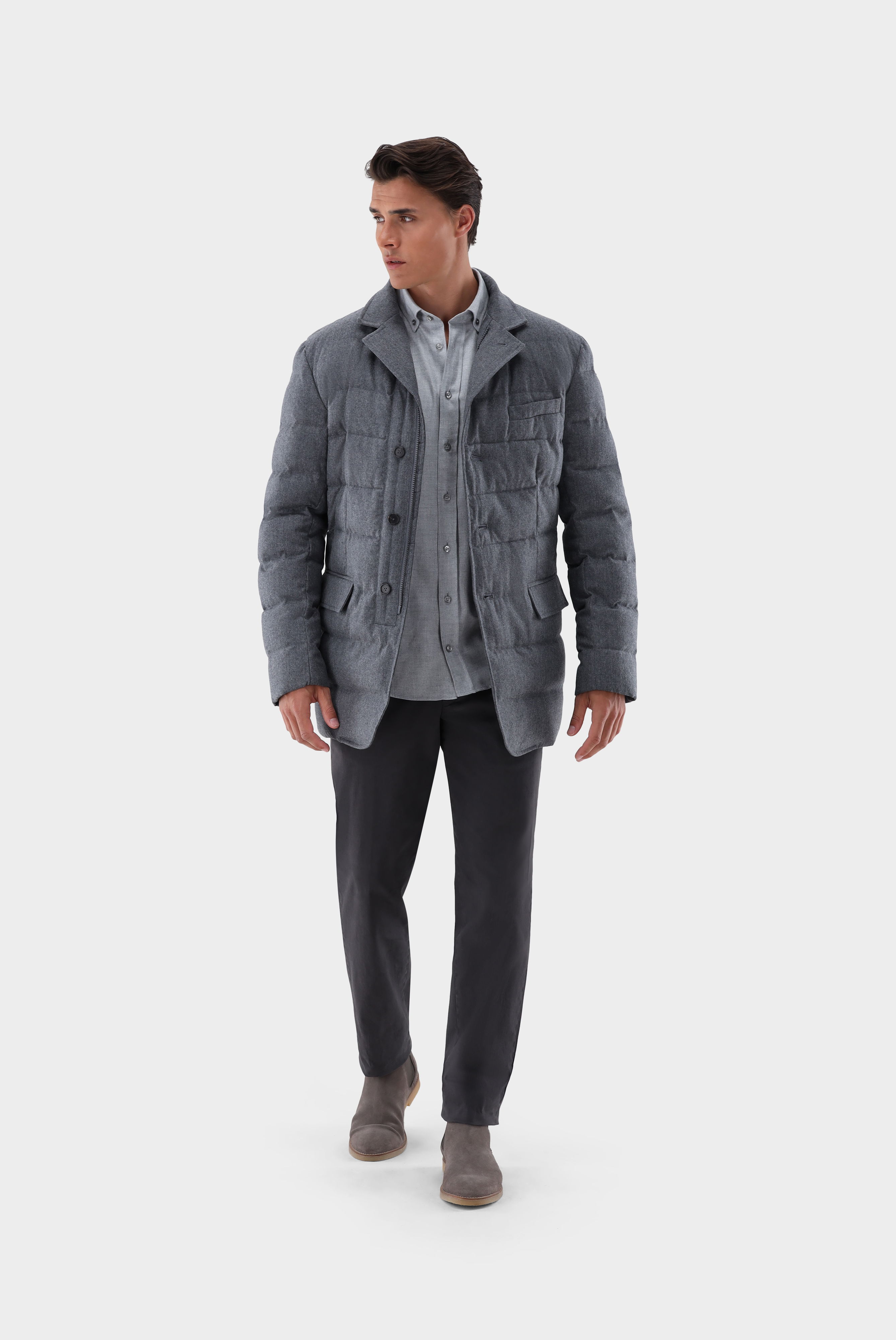 Die gesteppte Winterjacke aus Super 120''''s Flanell ist ideal für Herren, die einen stilvollen und warmen Mantel für kühlere Temperaturen suchen. Hergestellt aus hochwertigem Flanellstoff bietet die Jacke eine elegante Optik und ausgezeichnete Wärmeisolierung sowie eine leichte Wasserabweisung. Das gesteppte Design verleiht der Jacke eine moderne Note und sorgt für eine ansprechende Textur. Der Knopfverschluss ermöglicht einfaches An- und Ausziehen, während die zwei Seitentaschen und eine Brusttasche praktischen Stauraum bieten. Egal ob im Alltag oder bei Outdoor-Aktivitäten, diese Winterjacke hält Sie warm und stilvoll zugleich.