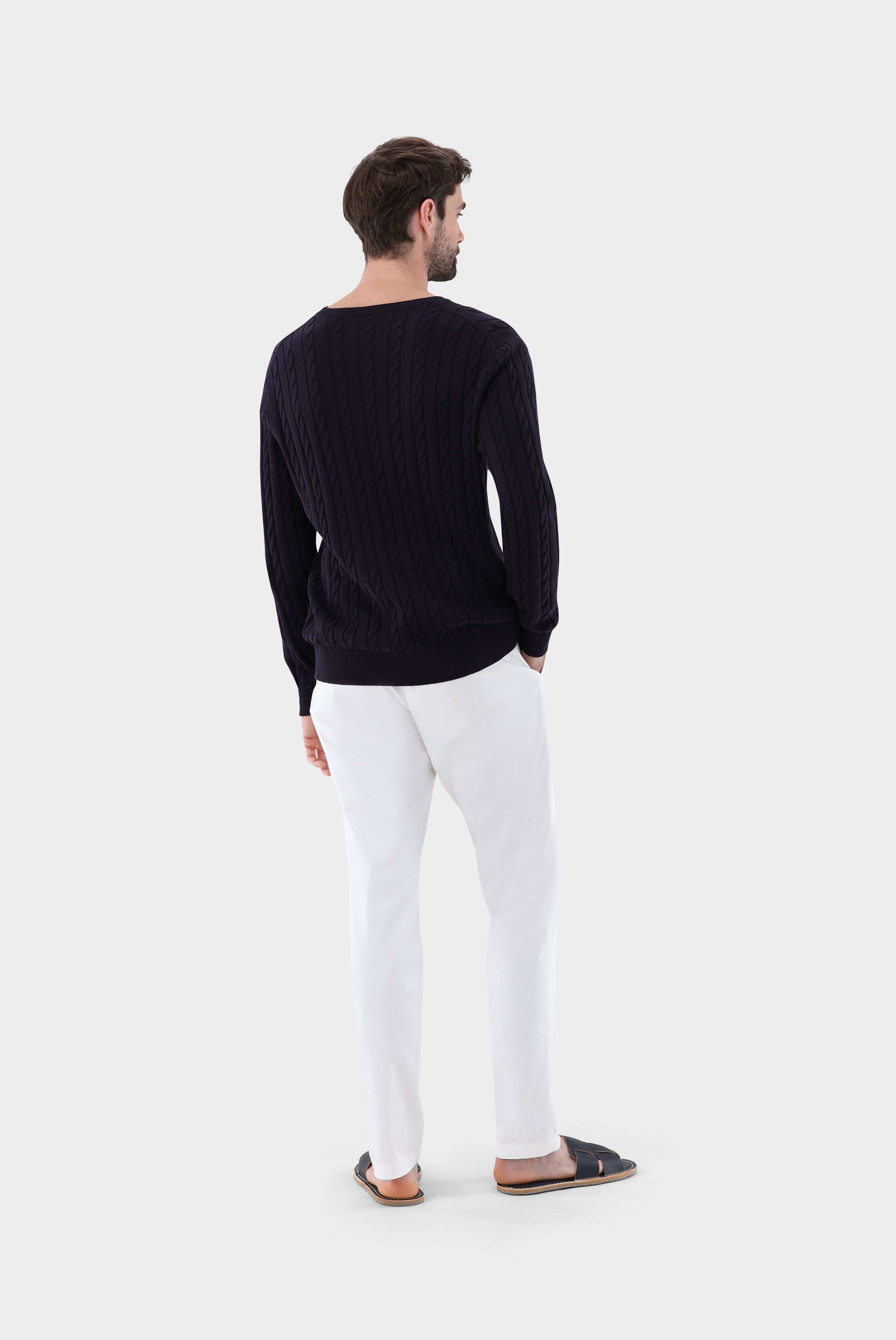 Der Rundhalspullover mit Zopfmuster wird mit Baumwolle und Seide gefertigt und bietet luxuriöse Weichheit. Der Seiden Anteil sorgt für eine leicht kühlendes Element. Das klassische Zopfmuster verleiht ihm einen eleganten Look, während der Rundhalsausschnitt für eine klassische Silhouette sorgt. Ideal für kühle Abende im Sommer, oder das Frühjahr.