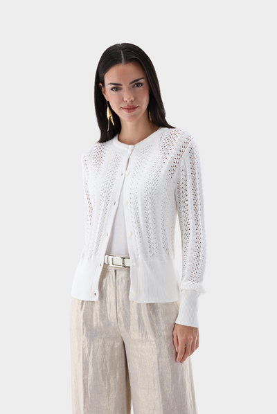 Cardigan in openwork knit with cashmere