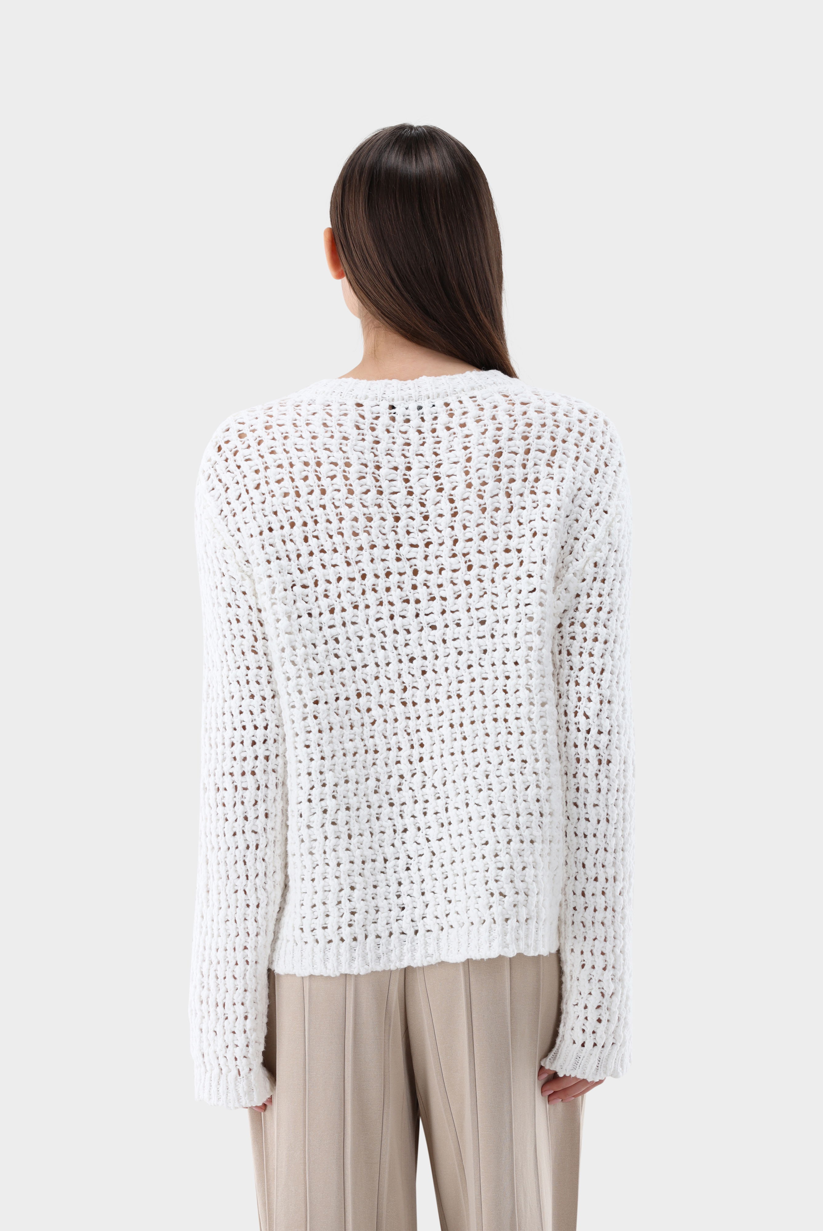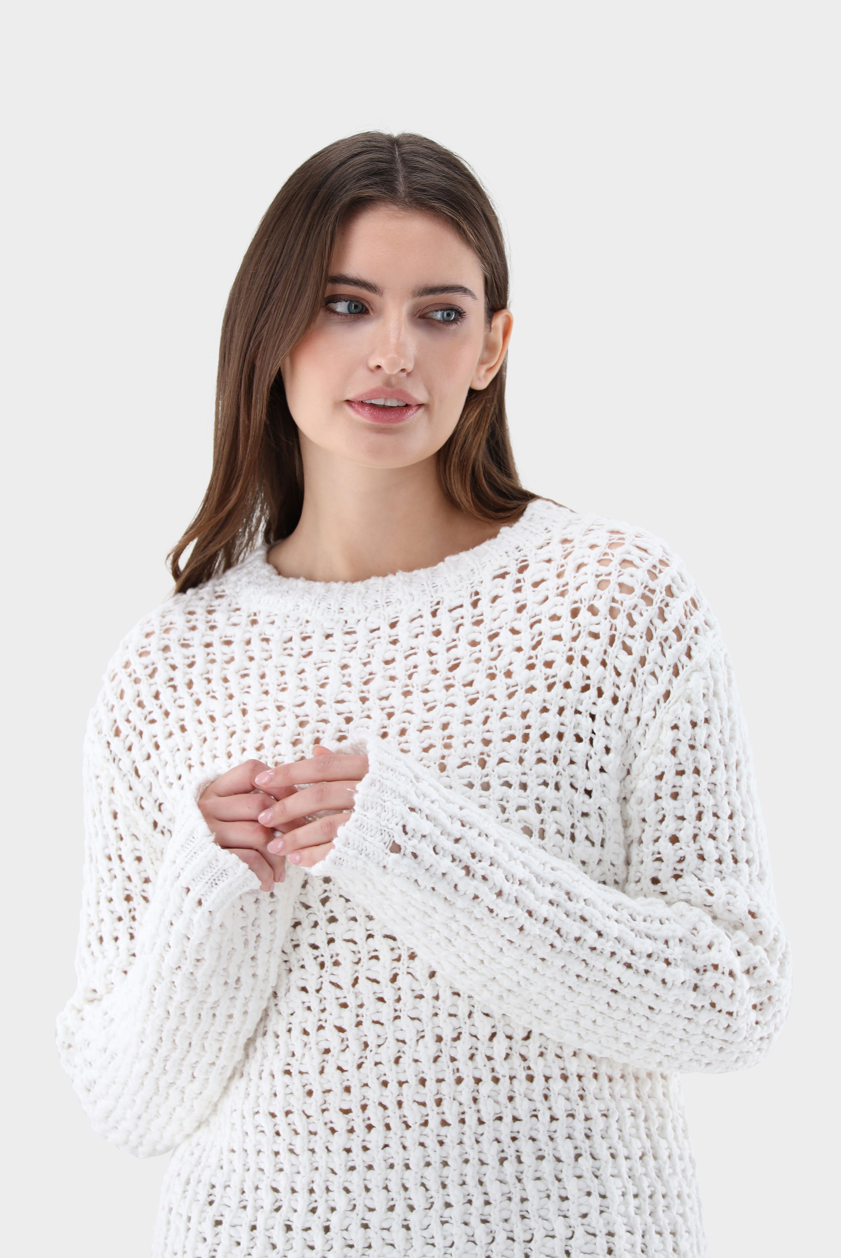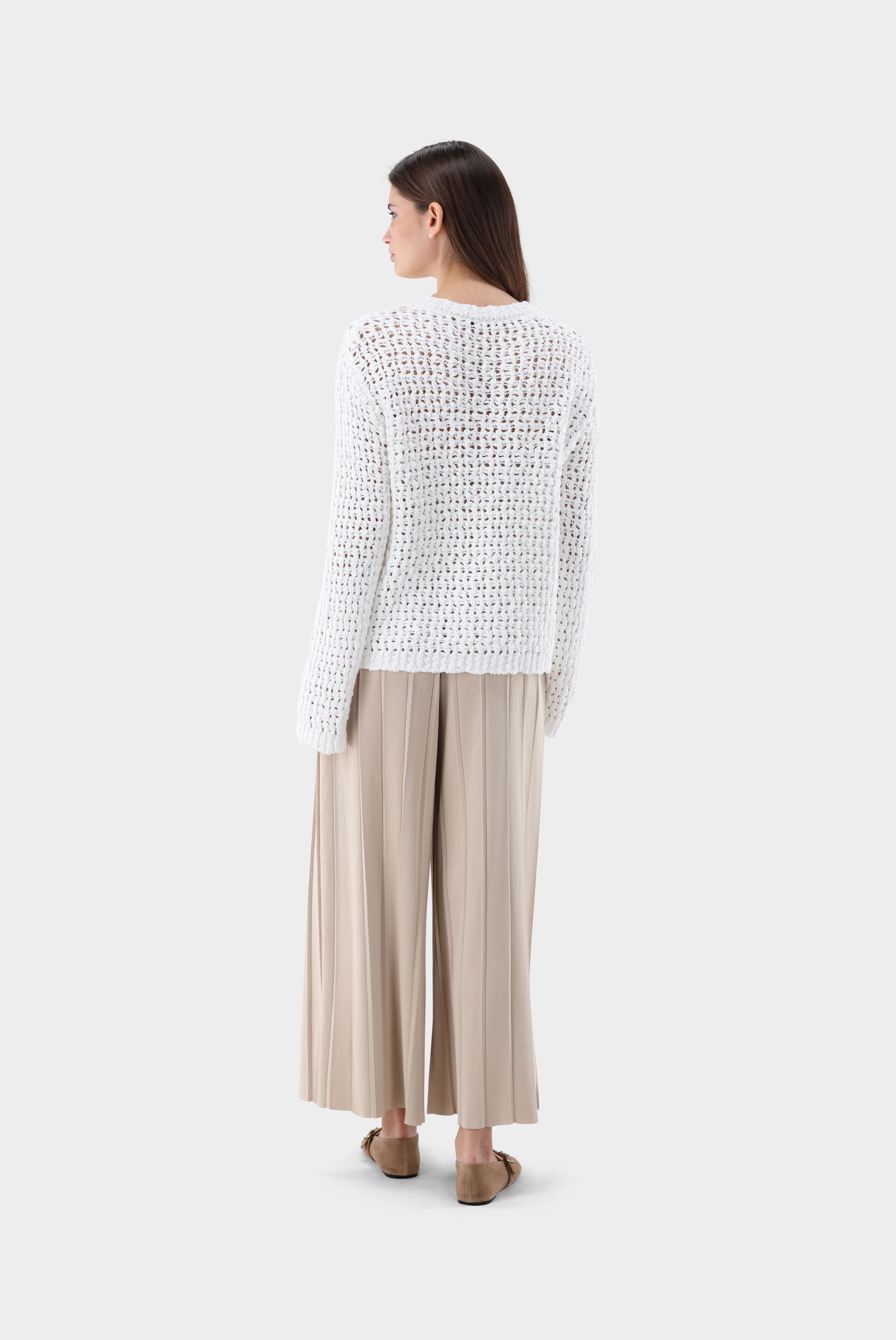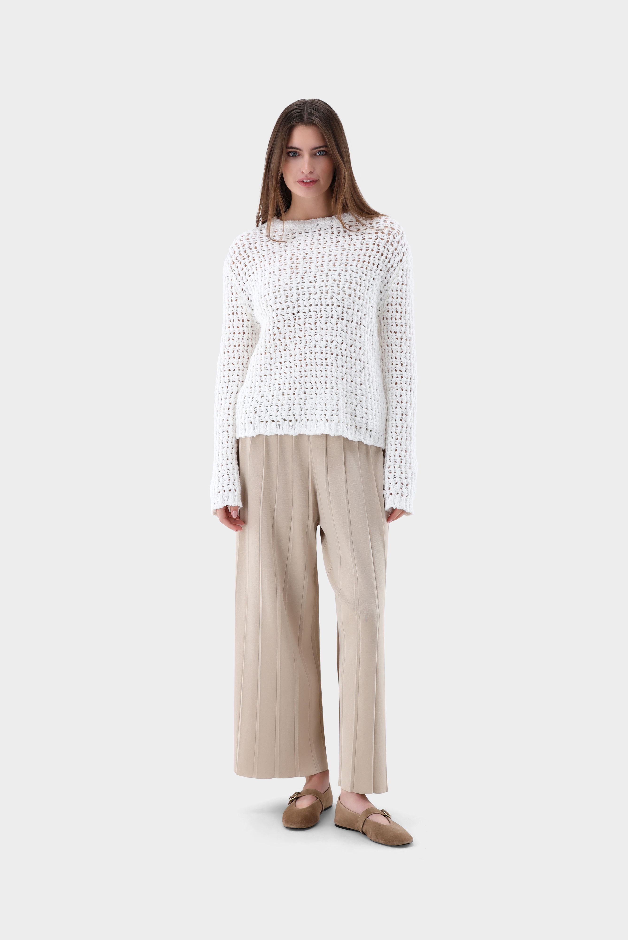 This loose-fitting, cropped sweater features a high round neck and a modern silhouette. Long sleeves ensure comfort and underline the casual design. Crafted from a premium blend the teddy yarn knit offers a particularly soft feel and pleasant warmth. This piece combines fashionable style with exceptional comfort and is ideal for versatile casual looks in the cooler seasons.