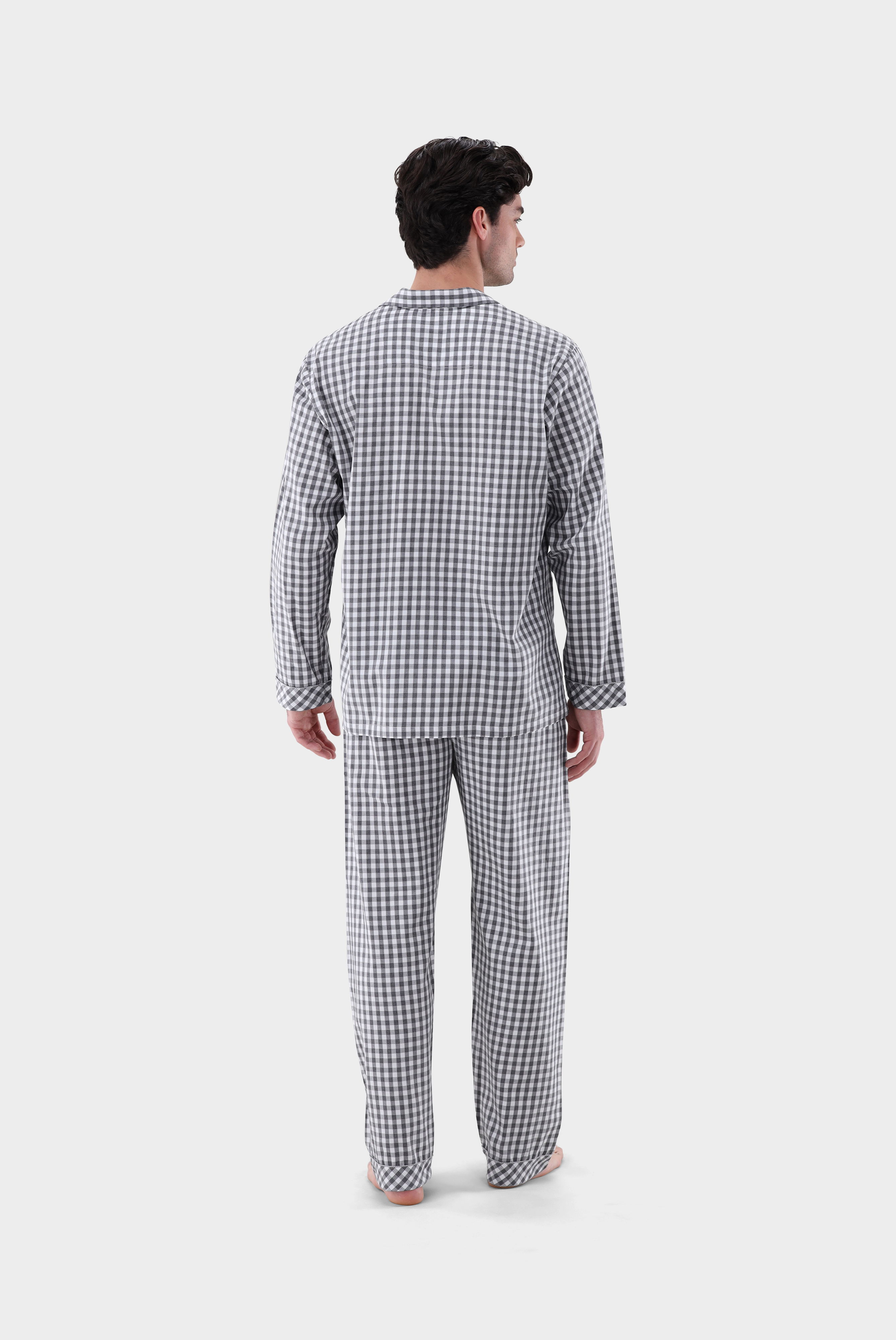 Pyjamas made from lightweight Vichy-checked twill flannel with piping details. These cozy pajamas combine comfort and style, perfect for restful nights.