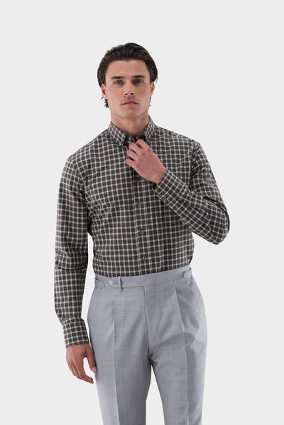 checked with button-down collar
