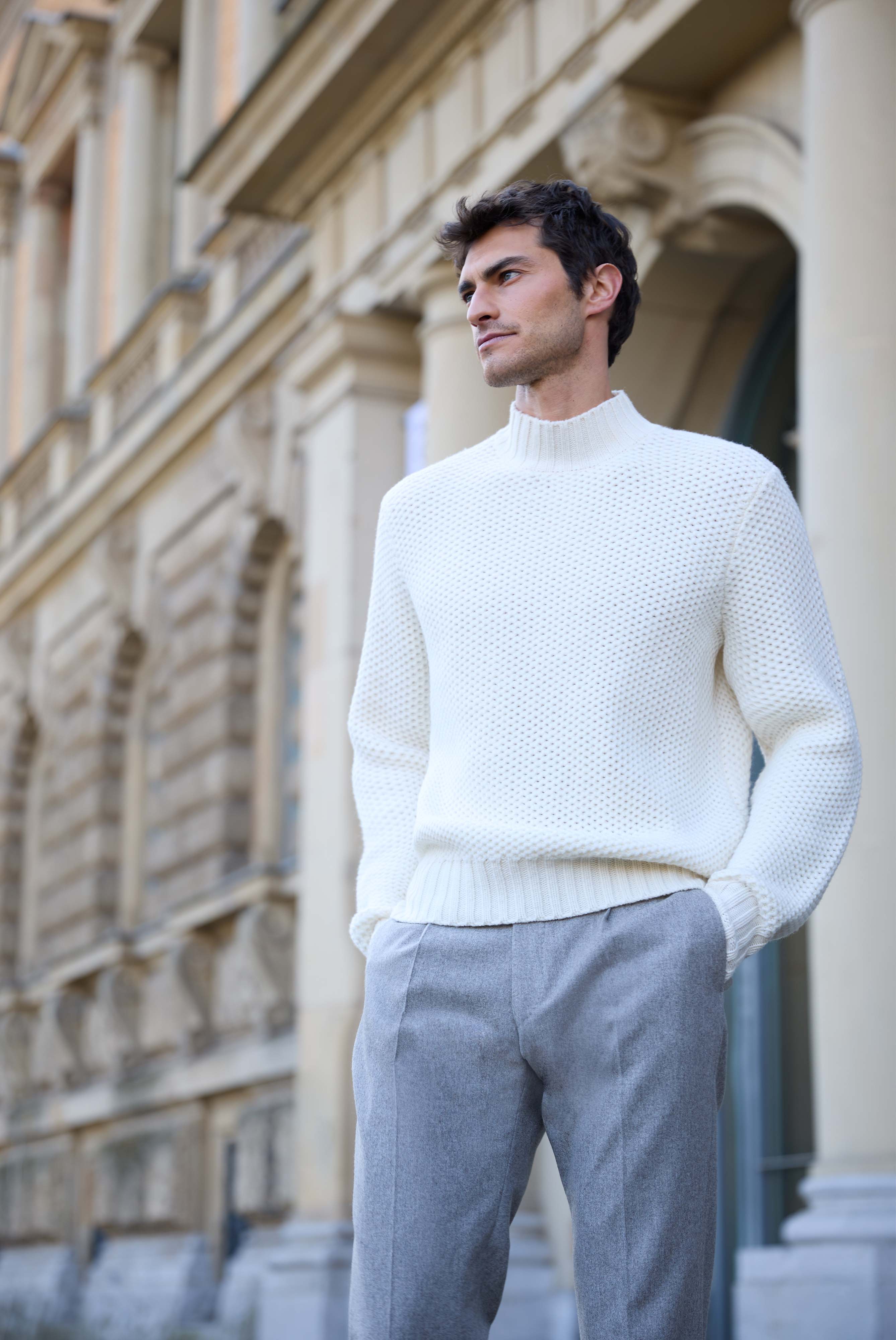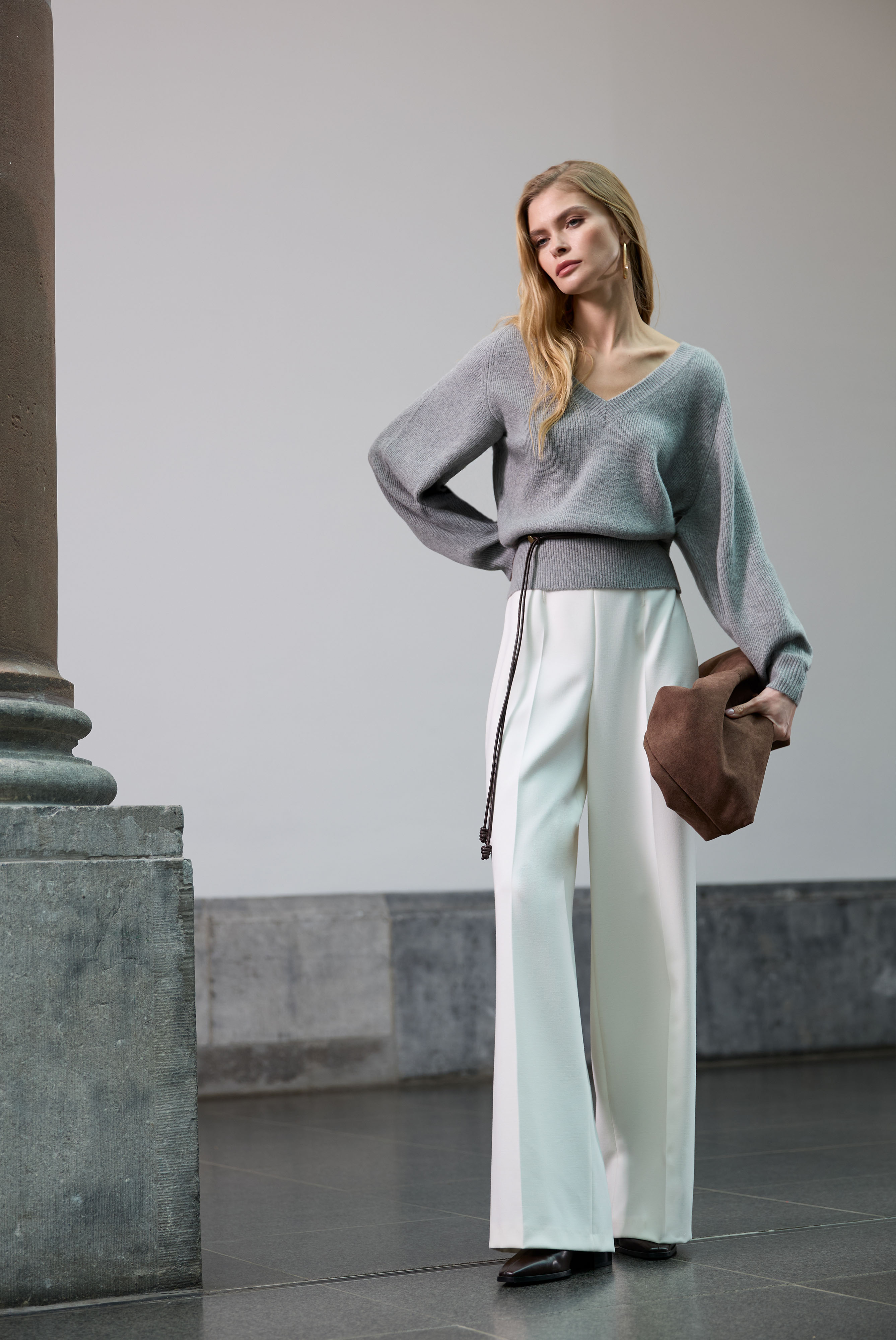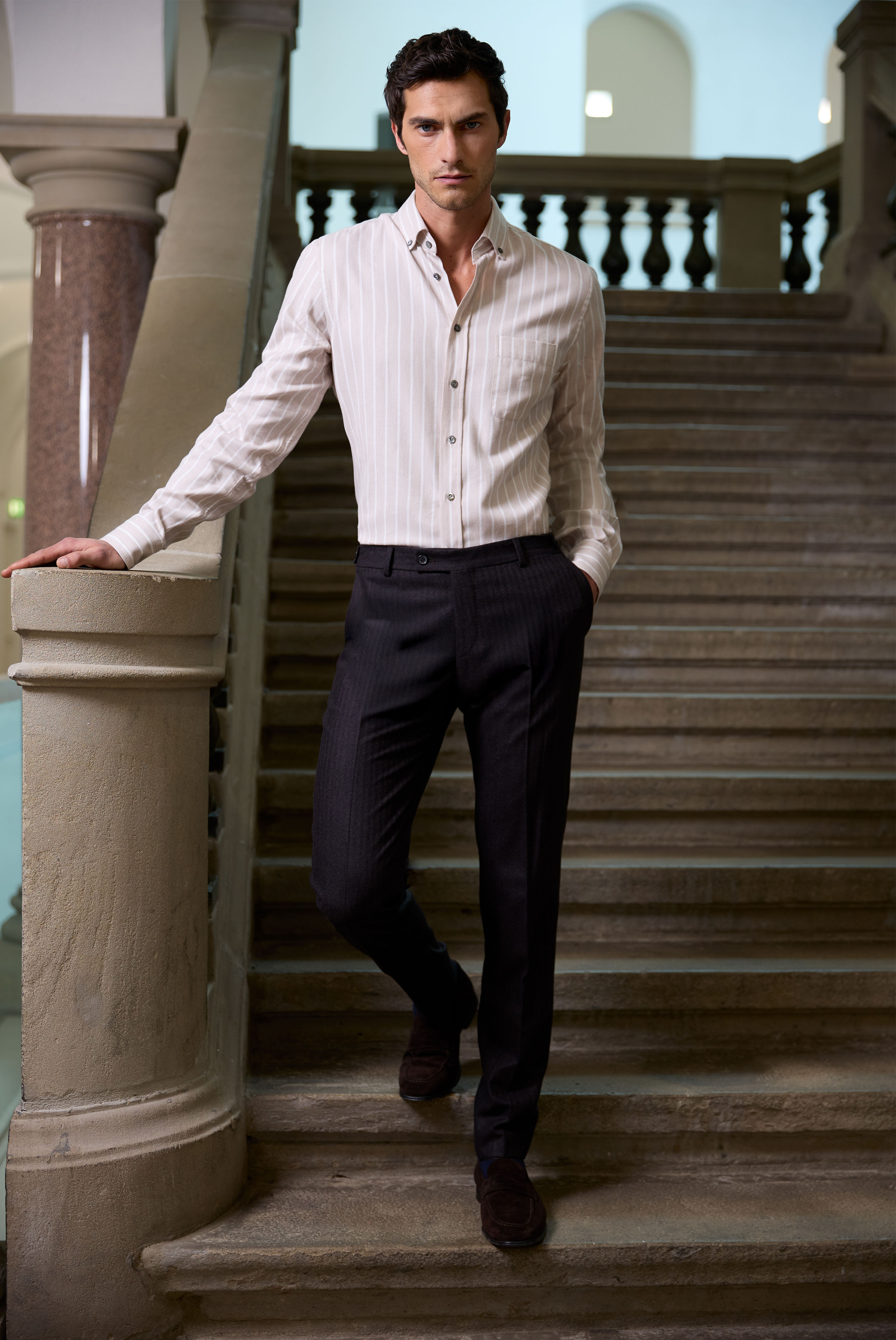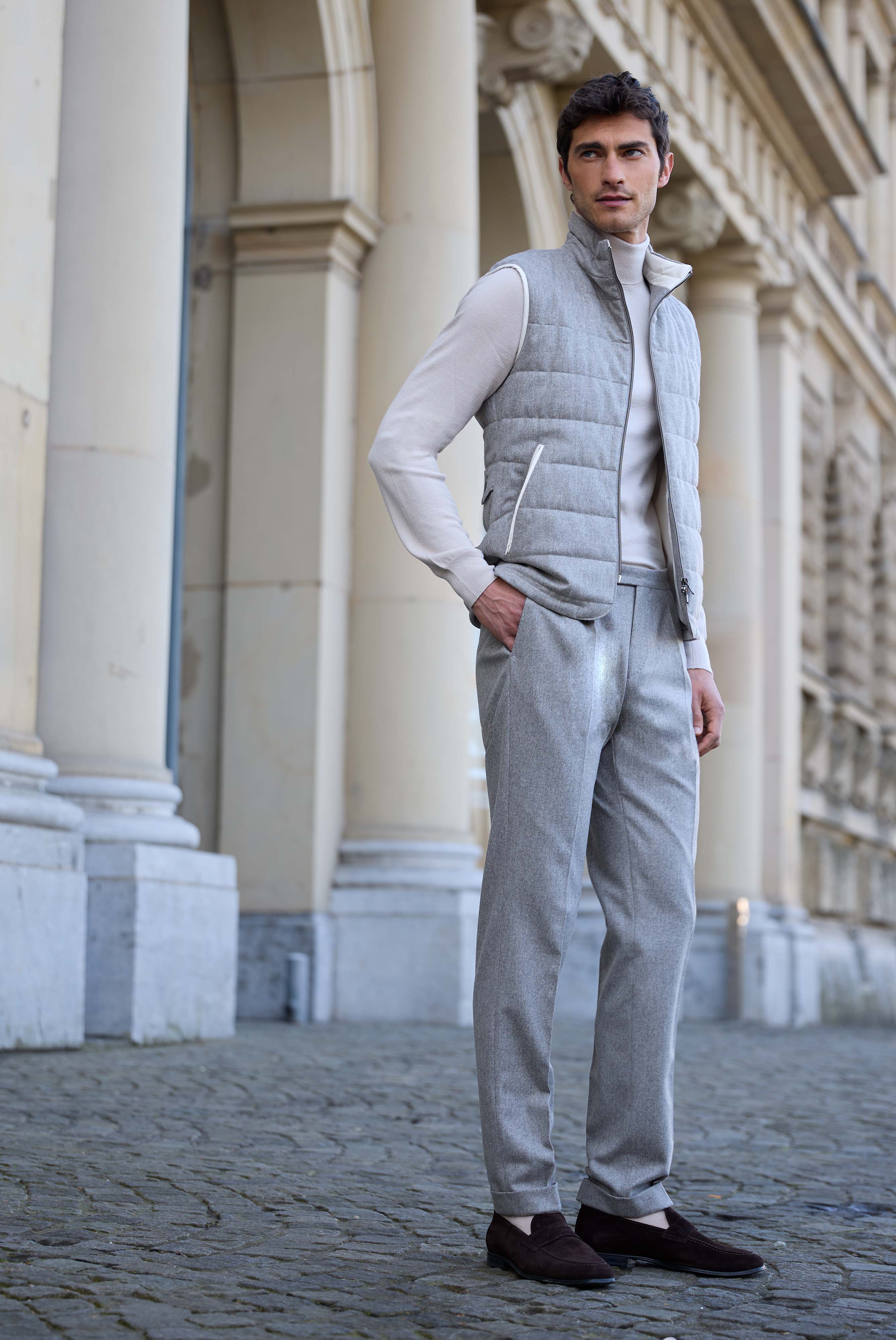The Gallery Collection by van Laack stands for timeless sophistication and the highest level of tailoring. Each design is carefully curated—just like in a gallery where style, quality, and attitude take center stage. The finest materials, precise cuts, and harmonious silhouettes come together to create a collection that impresses with its understatement and perfection. Lightweight blouses with voluminous sleeves, elegant blazers made of fine corduroy, and flowing pants in pure tones lend every look effortless elegance. Whether for everyday business, special occasions, or a stylish evening appearance, the van Laack Gallery Collection embodies what van Laack has always stood for: tradition, quality, and timeless beauty.