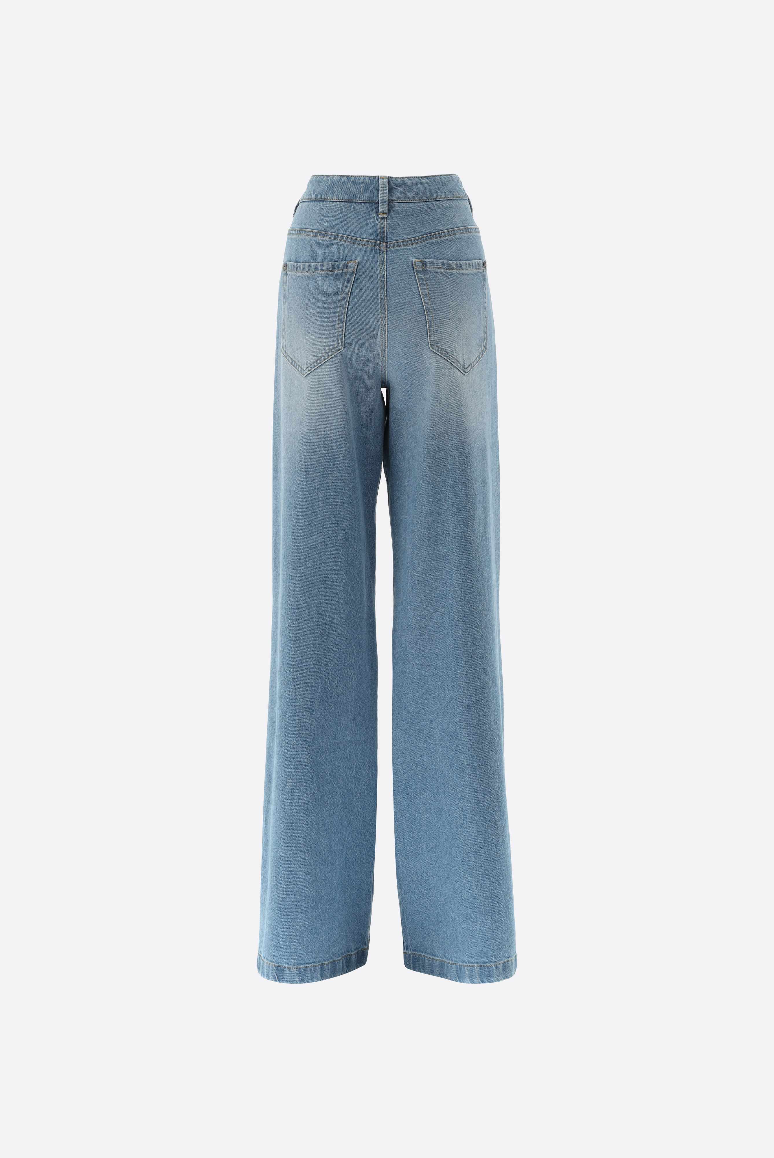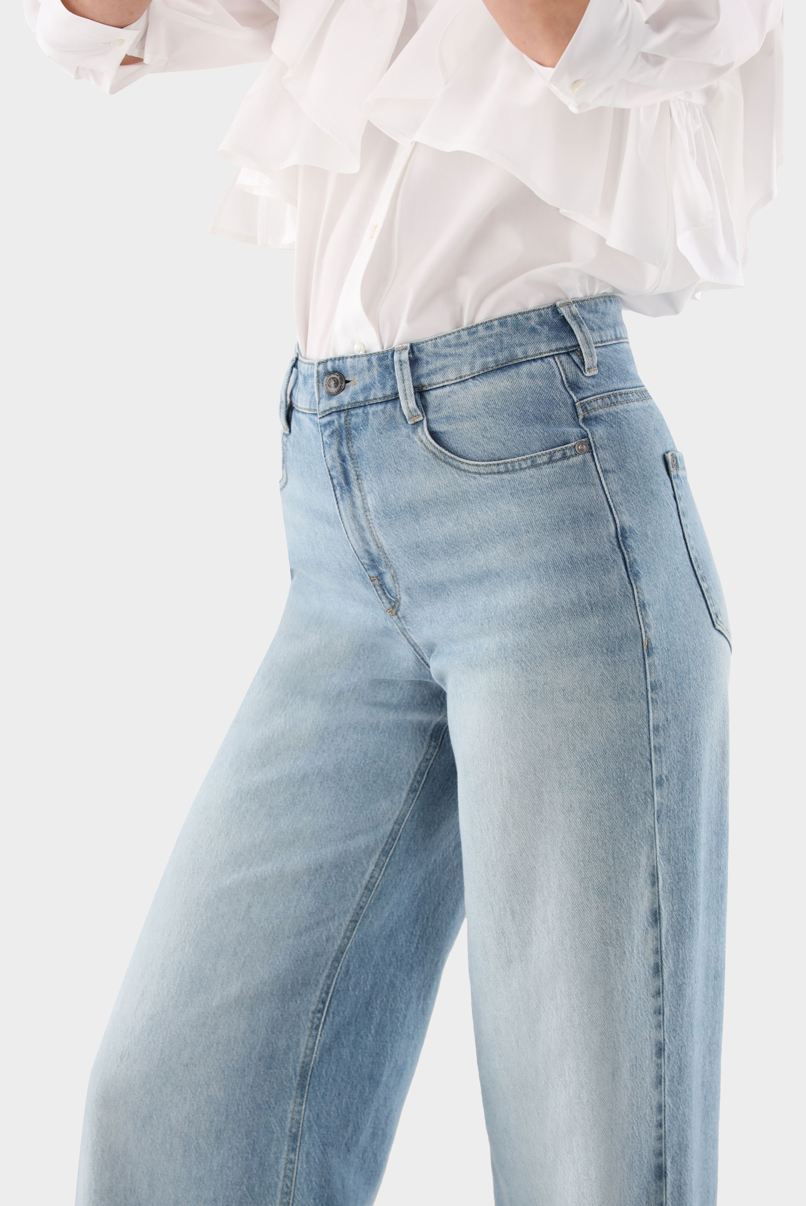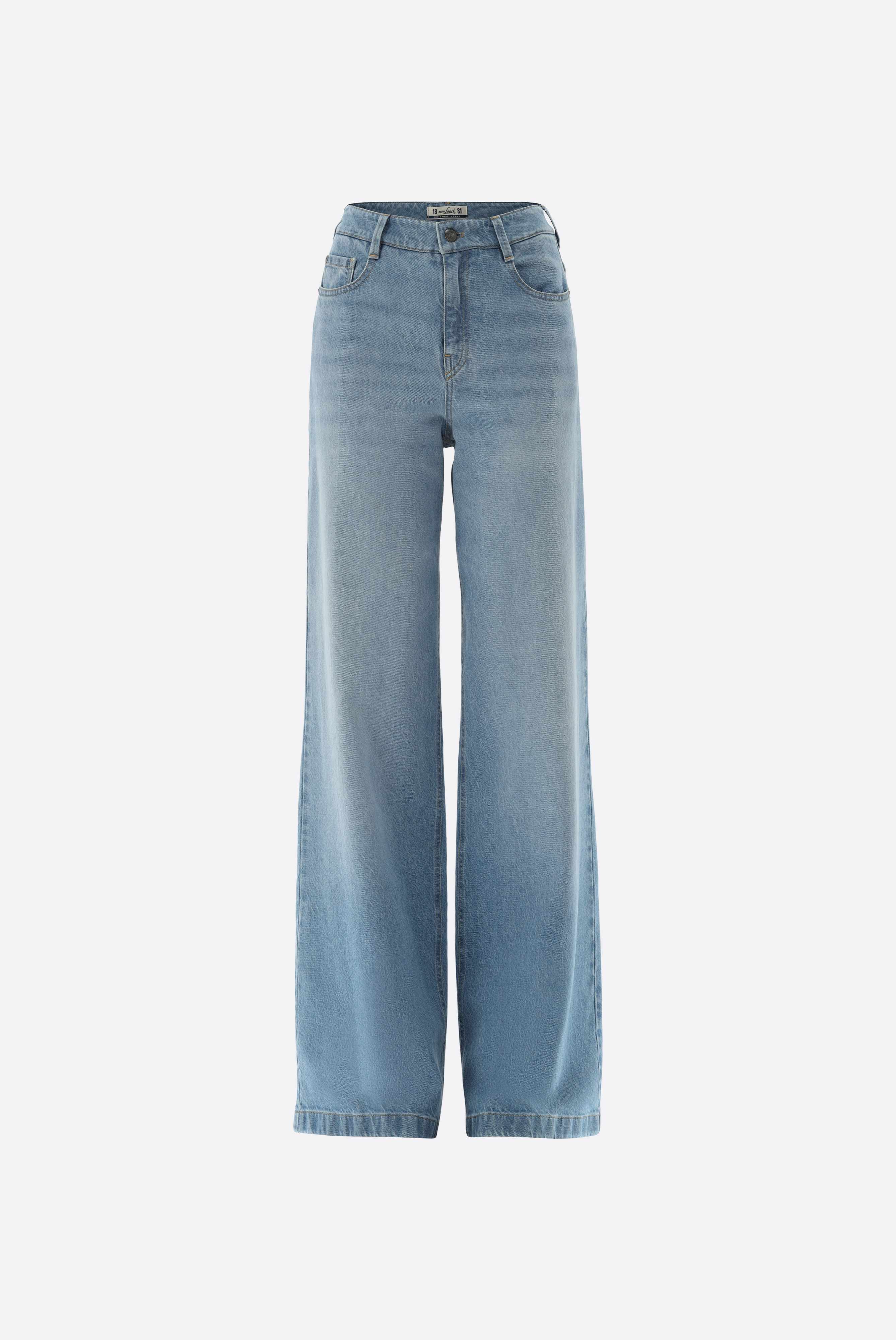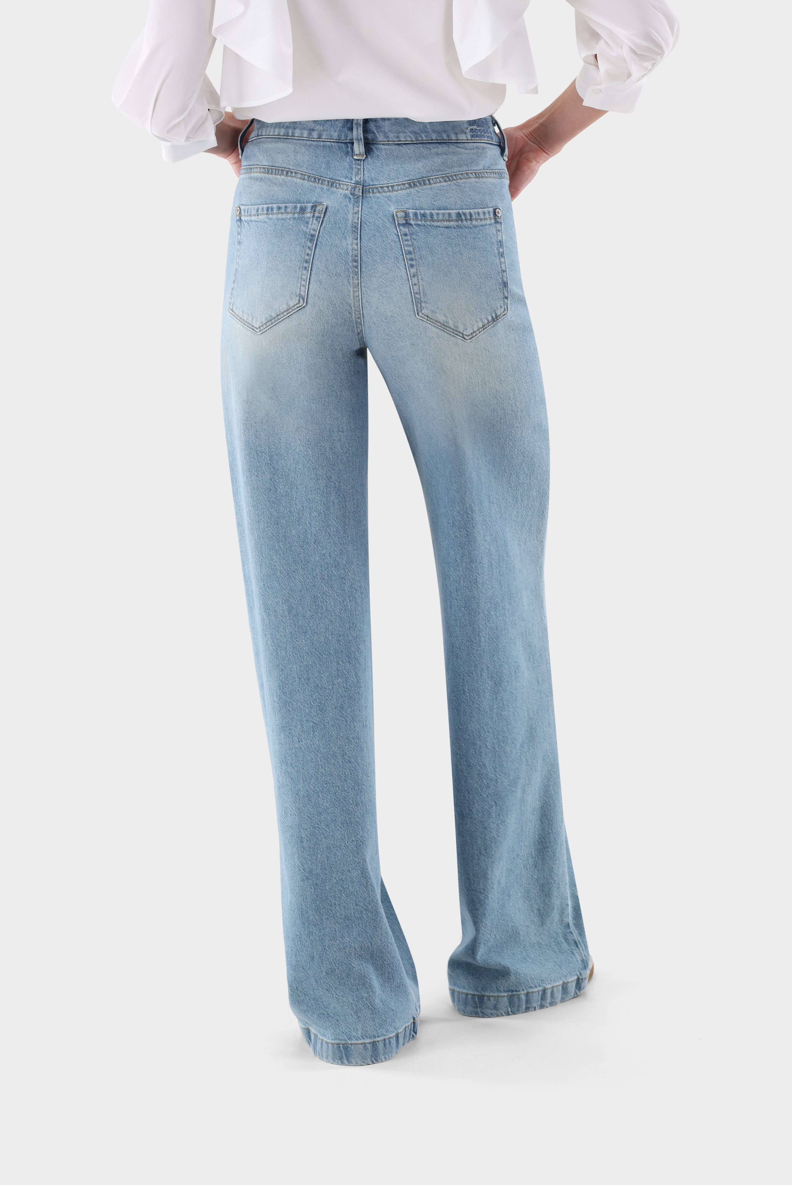 These mid-rise jeans impress with a modern silhouette and extra-wide leg. The classic five-pocket design, belt loops, and a zip fly with button closure provide functional details and a secure fit. Made from a high-quality cotton-lyocell stretch blend in a washed denim finish, they offer comfortable wear and freedom of movement. Versatile and easy to style, they are ideal for creating stylish casual looks with a contemporary, relaxed feel.