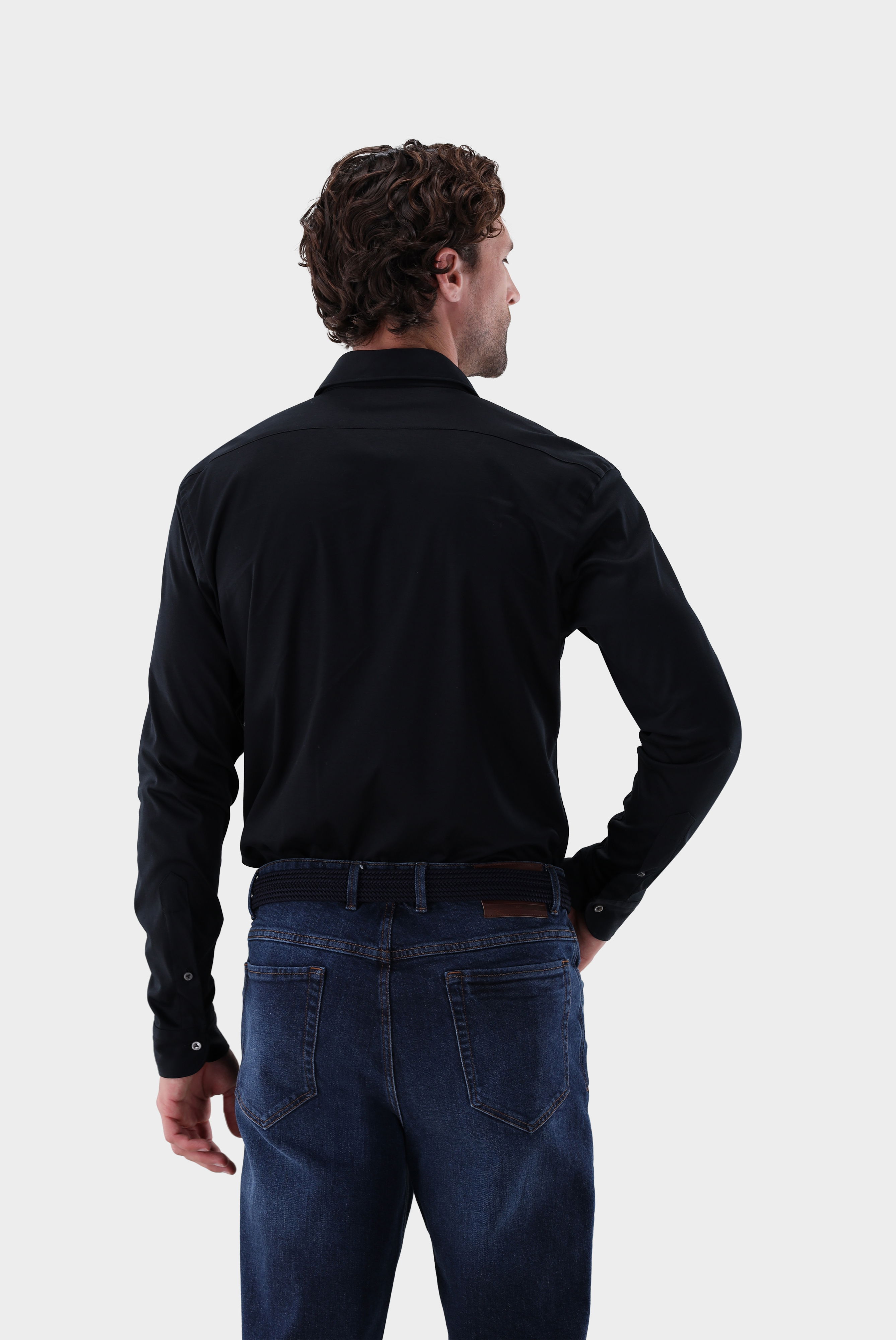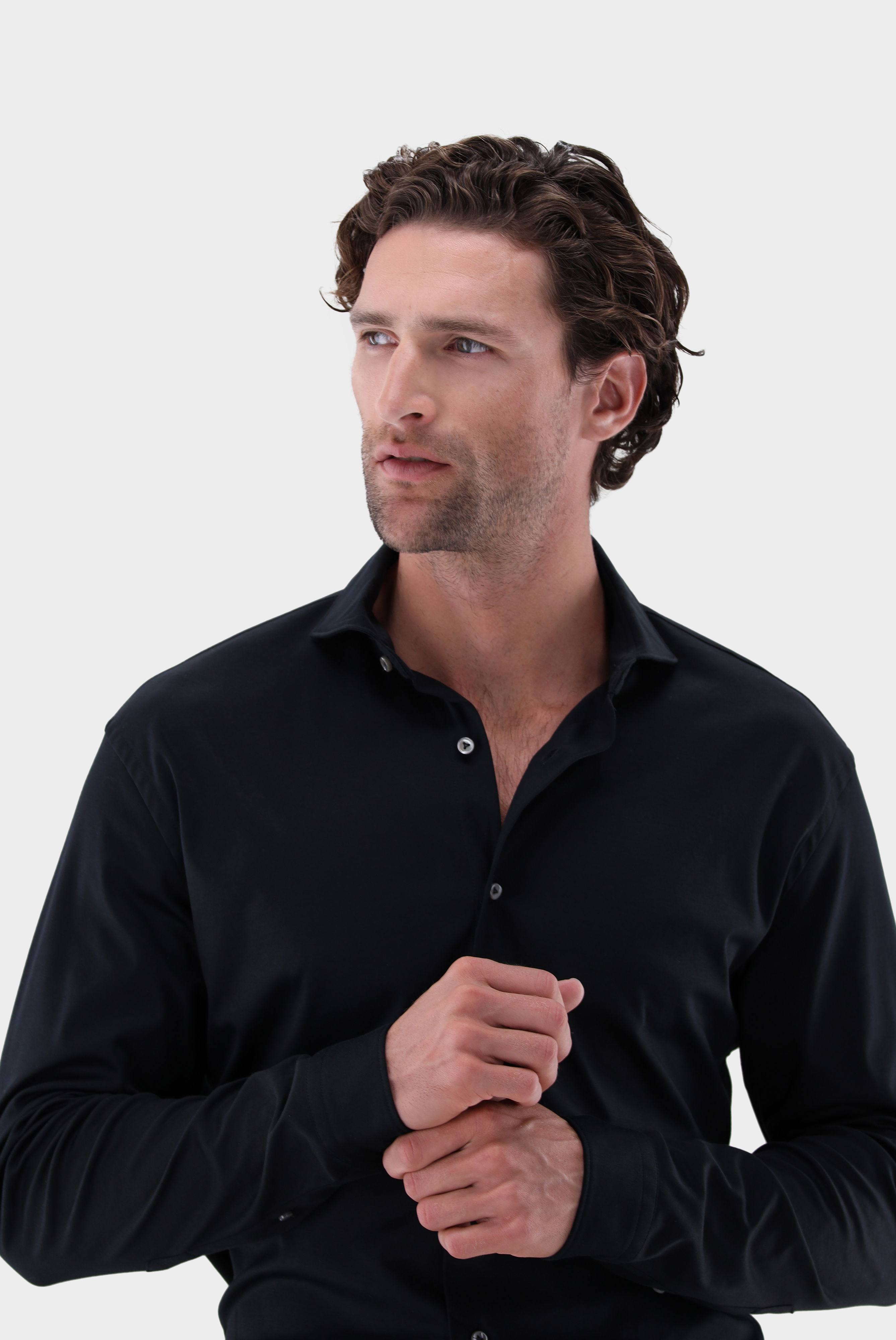 The shirt made of Swiss Cotton Jersey offers maximum comfort and a luxurious look. Made from high-quality and soft interlock jersey with natural stretch, the Swiss Cotton Jersey quality ensures a comfortable fit. The shiny look, the French button placket and the Mother-of-pearl buttons give the shirt an elegant touch.