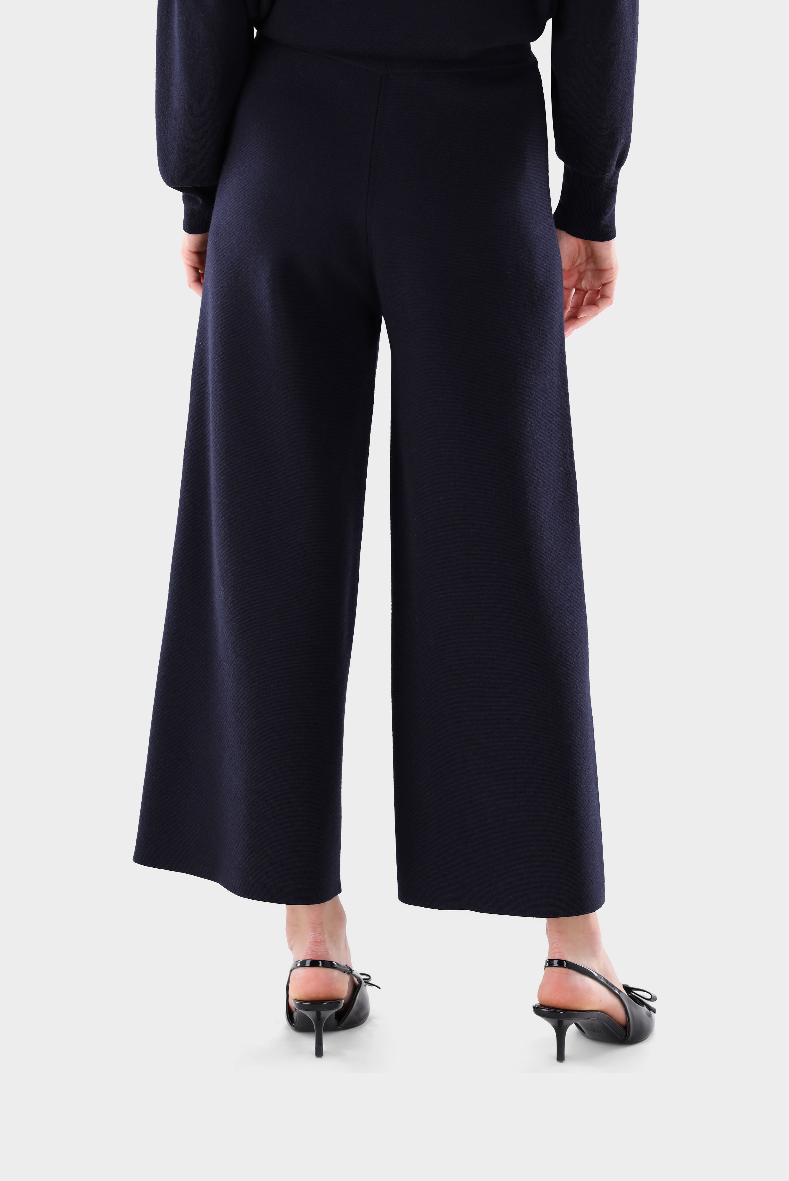 The modern straight-leg knit trousers are made of ultra-fine Merino wool and Lycra, which guarantees you a luxurious and comfortable feel. These trousers are perfect for an elegant and contemporary look. The flared leg gives the trousers a modern silhouette while ensuring a comfortable fit. The combination of ultra-fine merino wool and Lycra makes the trousers soft, light and elastic, so that they adapt perfectly to your movements. The elastic waistband offers additional comfort and ensures that the trousers always fit perfectly. Whether for everyday office life or a special occasion, these modern knitted trousers can be combined in many ways and give your outfit an elegant touch.
