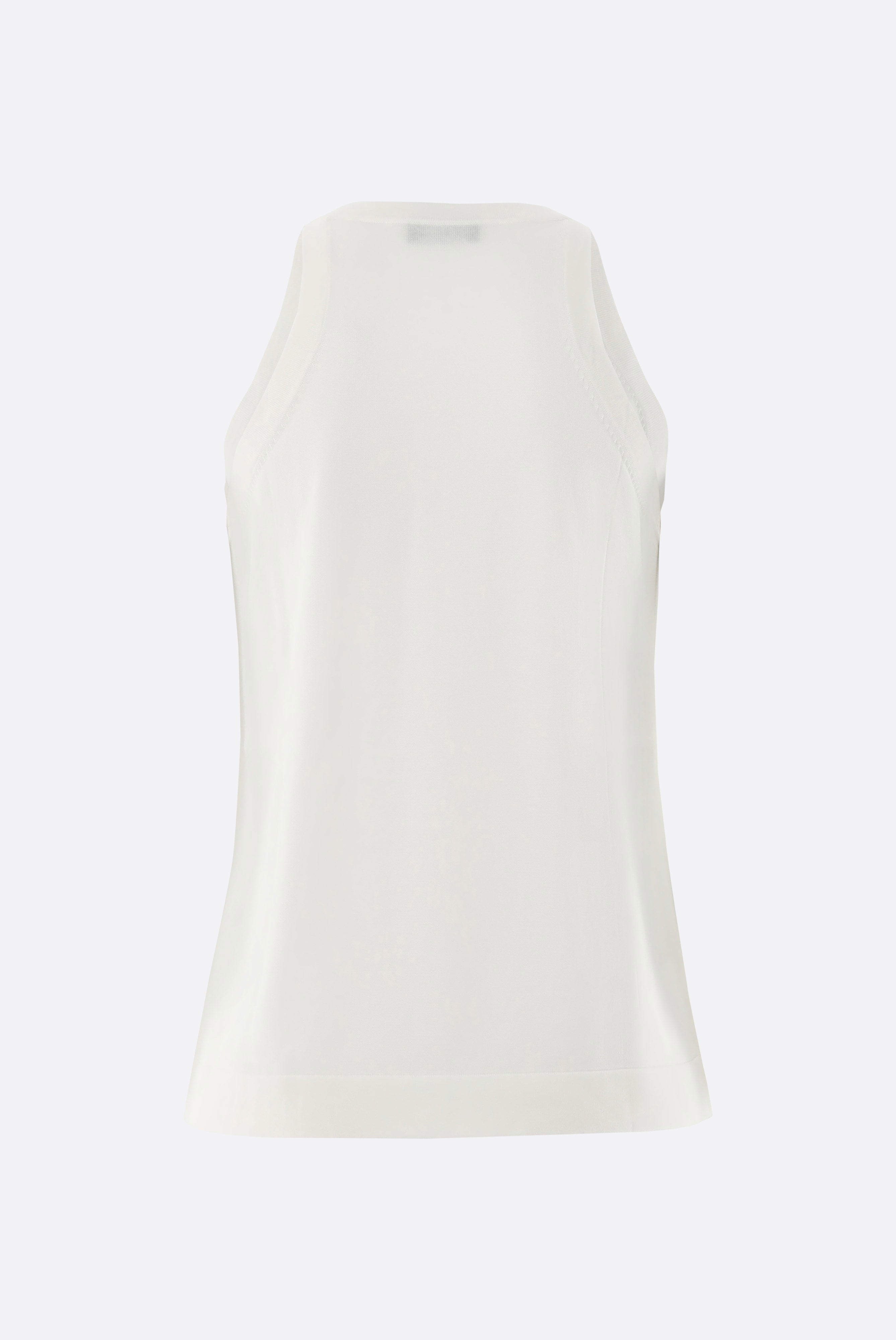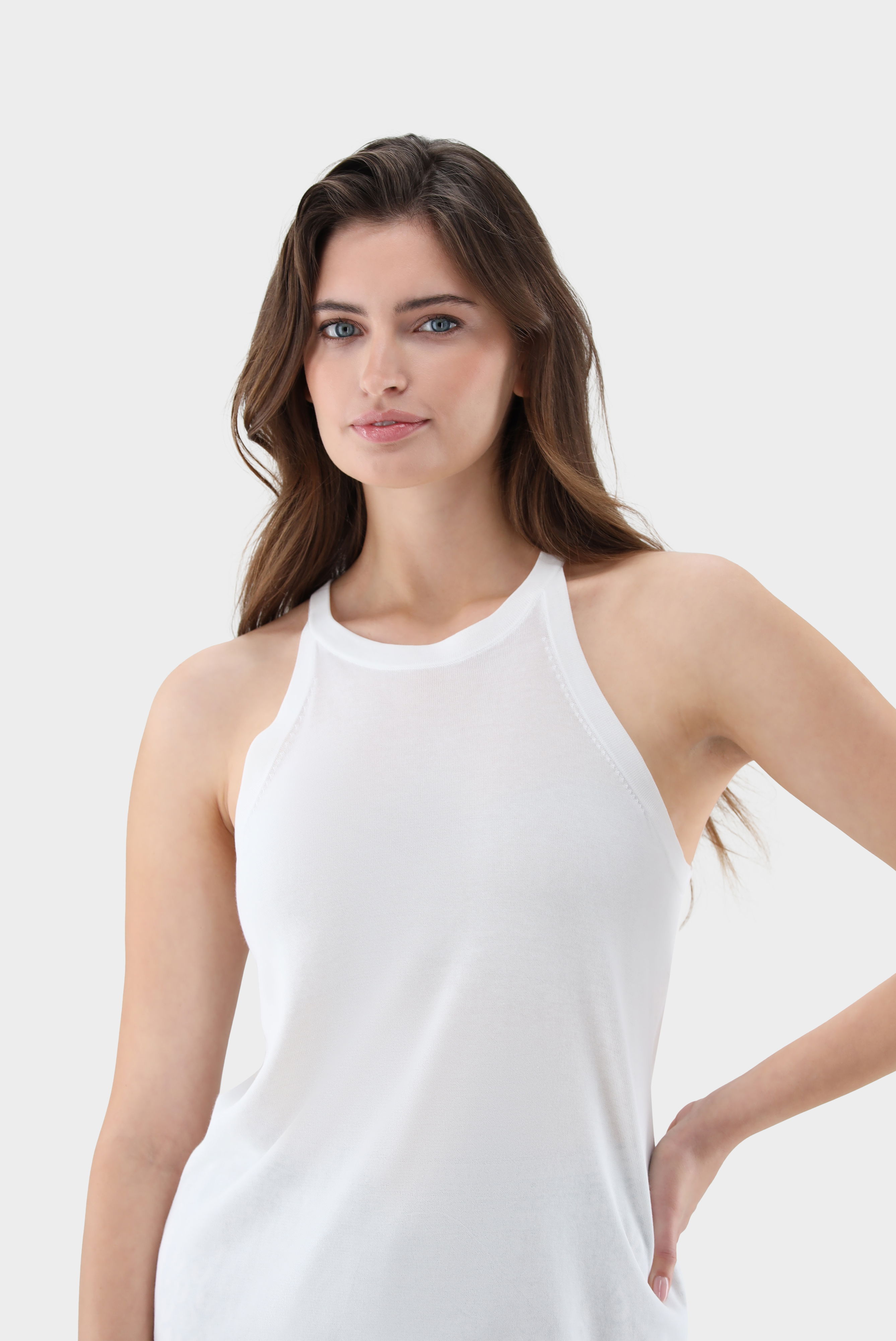This straight-fit top impresses with its timeless silhouette and minimalist look. The sleeveless design emphasises its modern lightness, while the fine knit made from a high-quality cotton-viscose blend ensures a pleasantly soft feel. The smooth surface and flowing drape make this style very versatile. Ideal for stylish casual and business casual looks with a clear, elegant look.