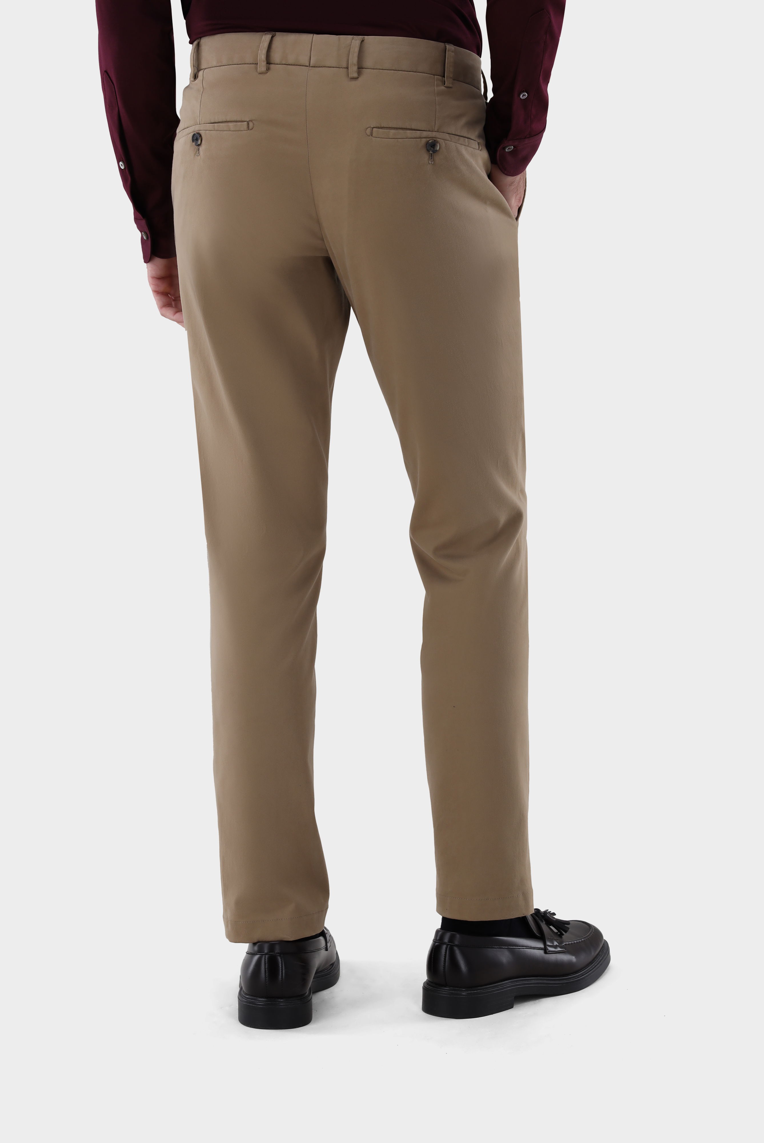 Discover our timeless chino pants with high-quality waistband construction and crease. These pants feature a classic trouser fly with 3-hole button closure, slanted front pockets, and double welt pockets with button closure at the back.