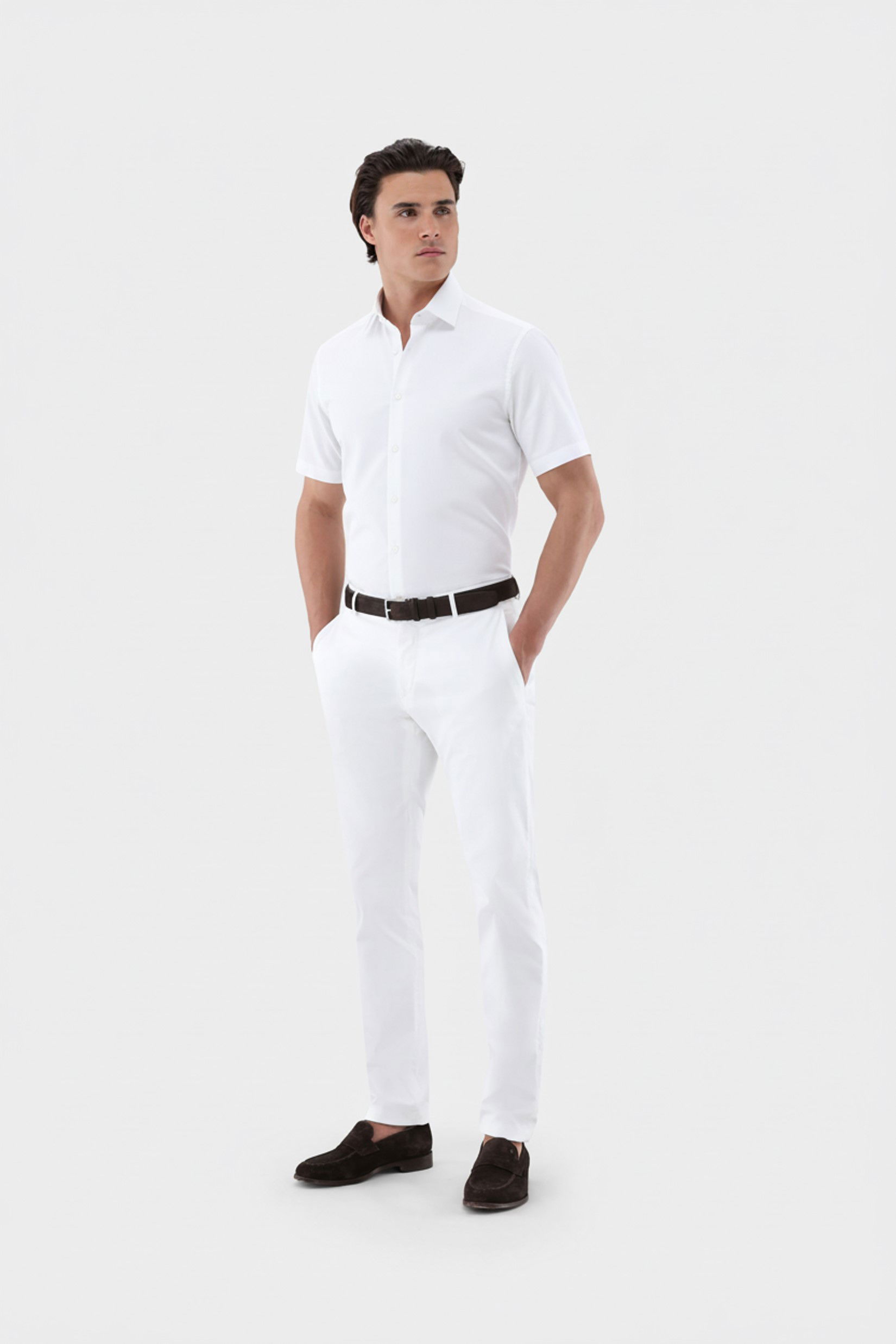 Look from Short-sleeved shirt in dobby fabric with a shark collar
