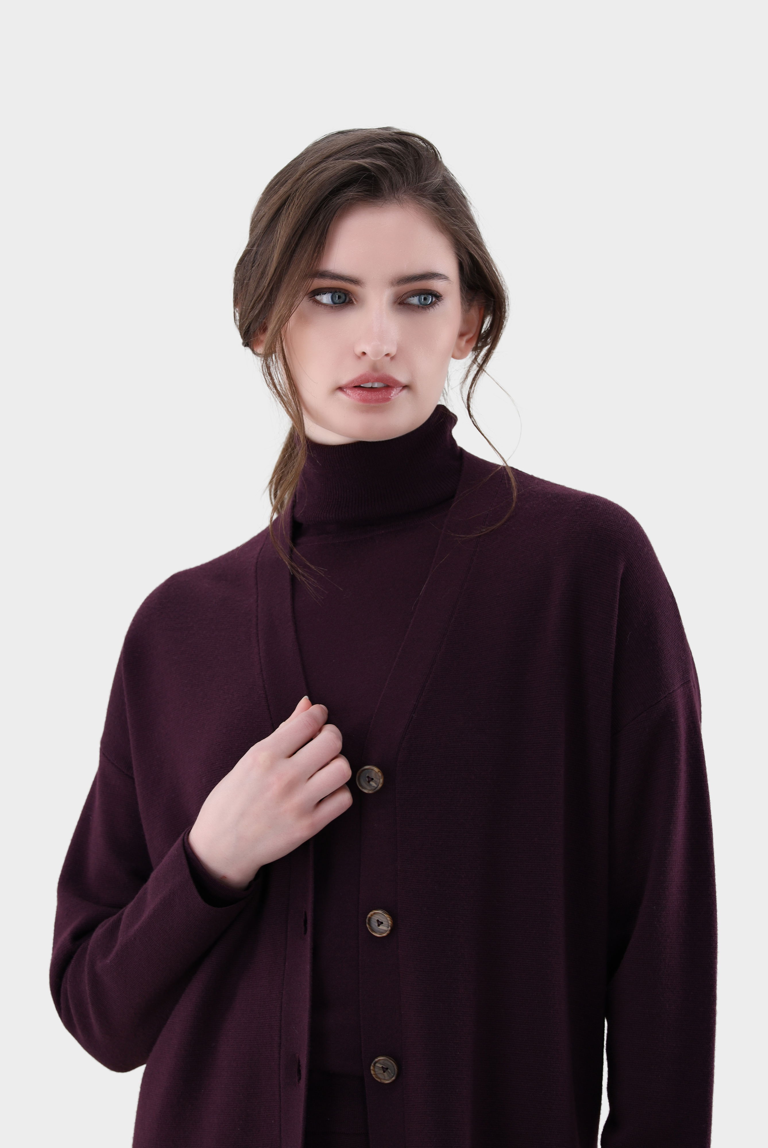 The oversized cardigan with long slits in ultra-fine Merino knit is a modern and versatile garment. Made from high-quality Merino wool, this cardigan offers exceptional comfort and warmth, while the fine knit pattern adds an elegant touch. The long slits provide a contemporary element to the design and allow for effortless movement. Ideal for various occasions, this cardigan can be easily paired with many outfits and is an essential piece in any wardrobe.