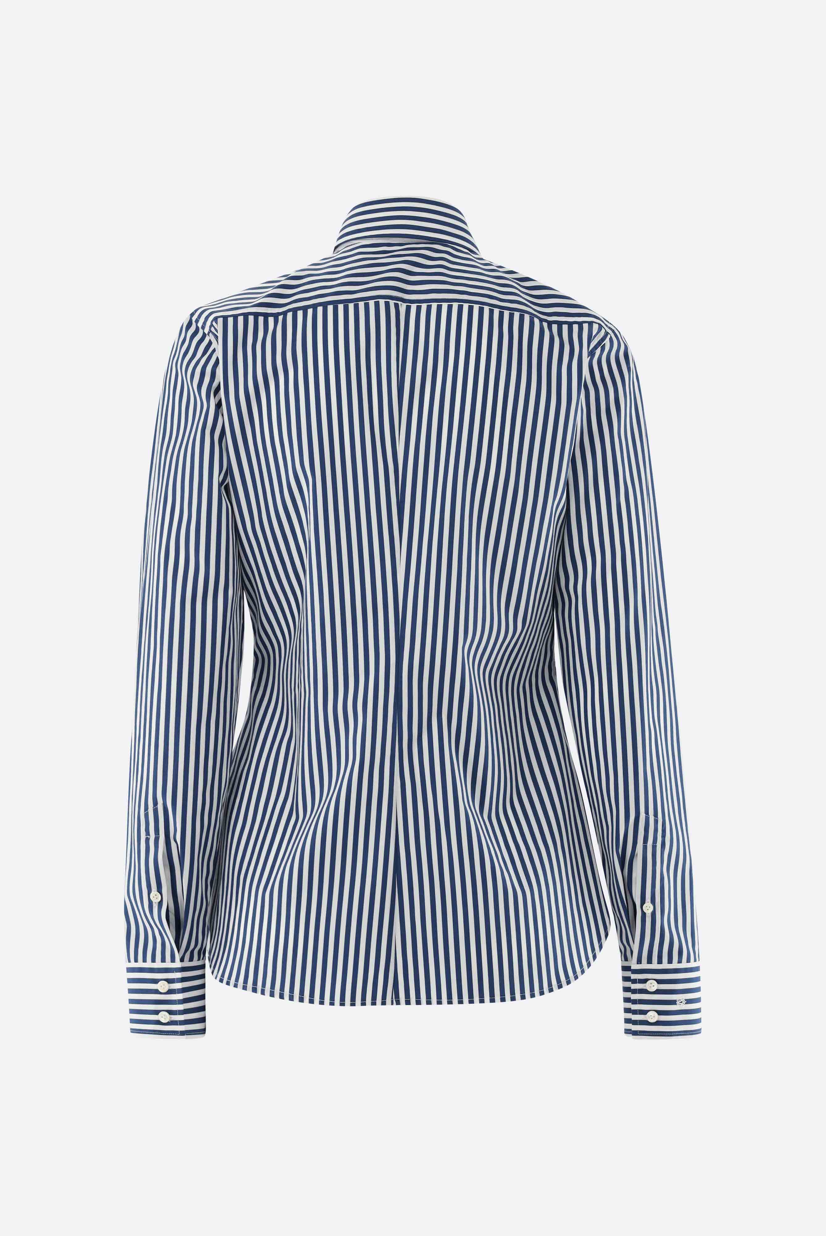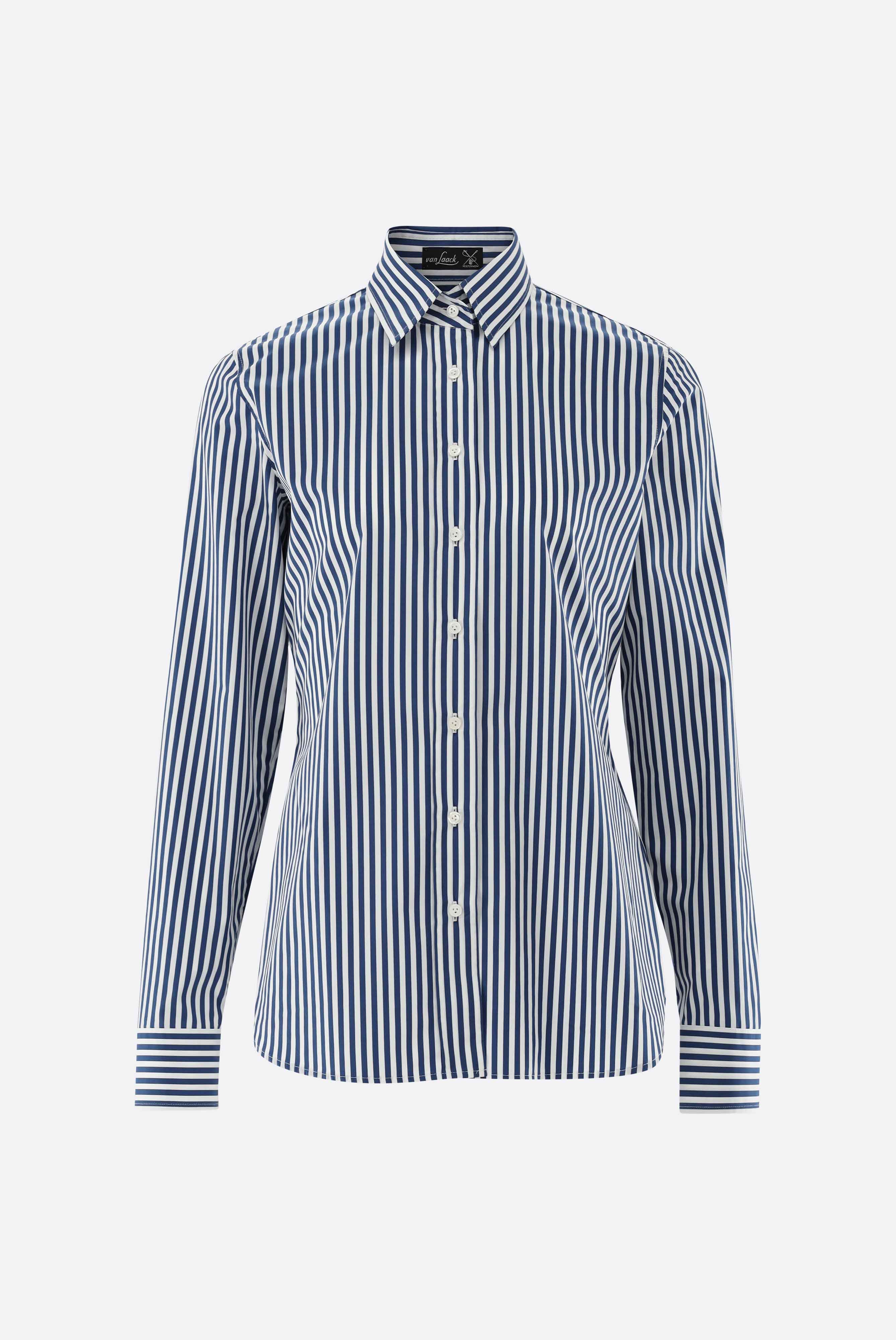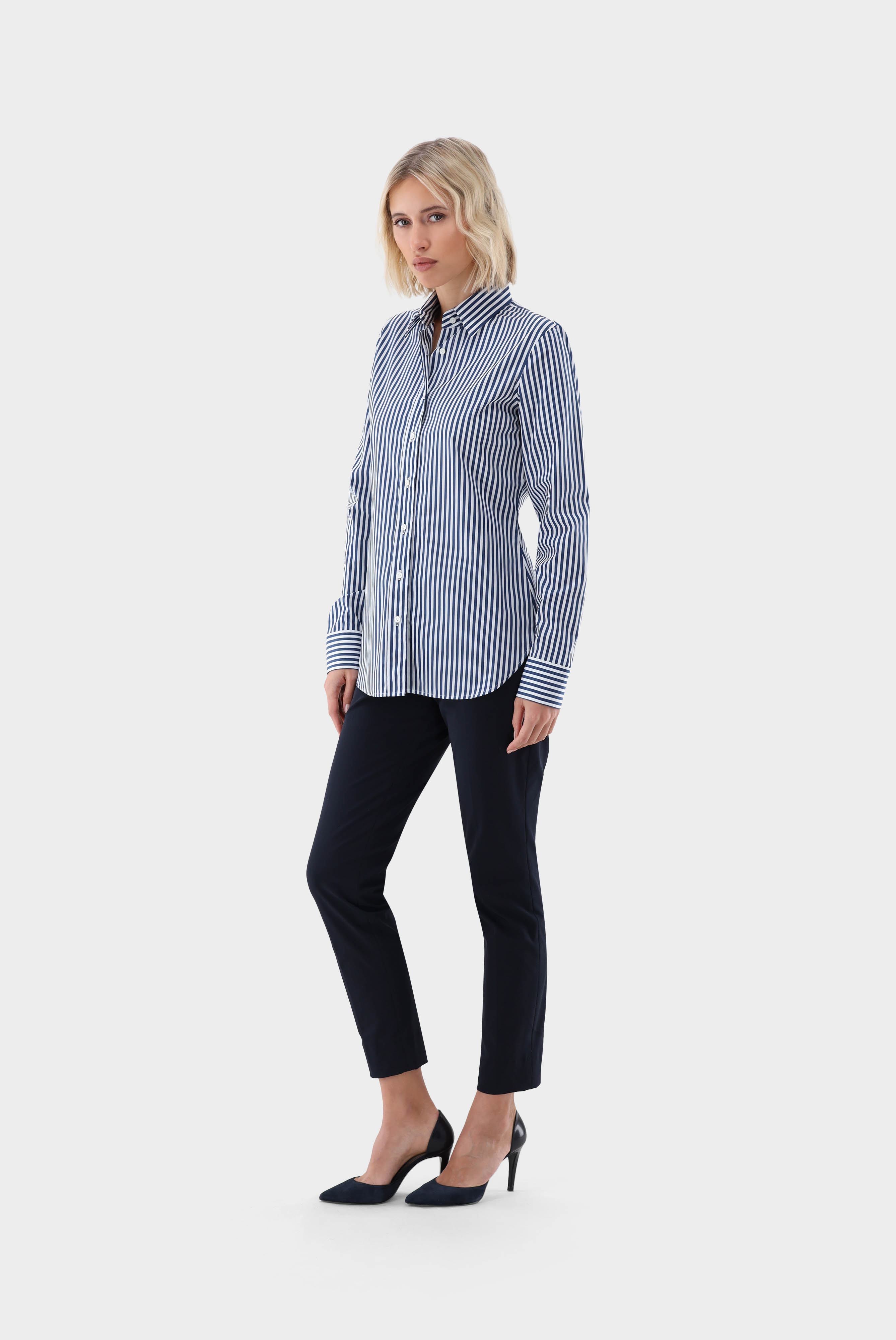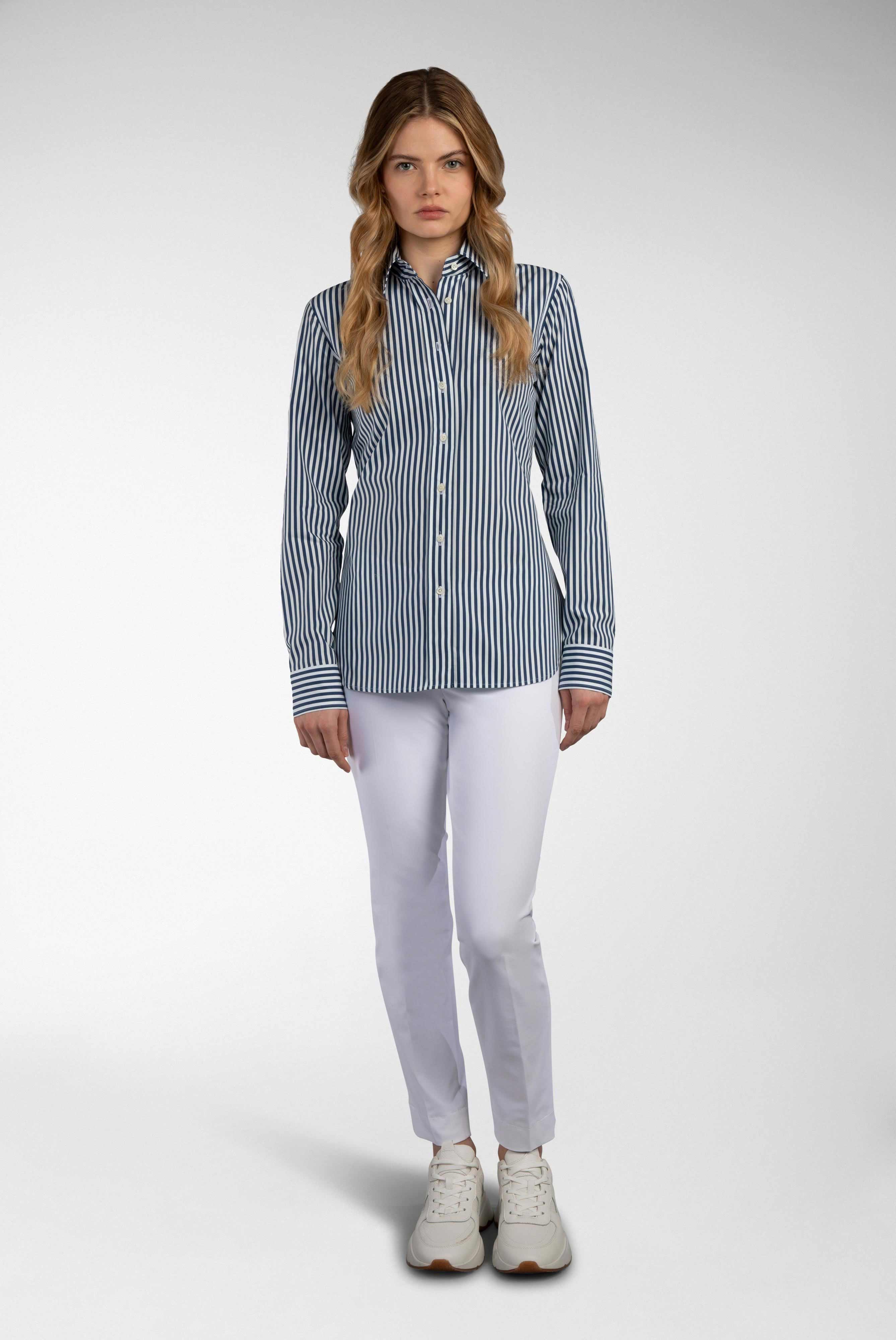 The long-sleeved poplin shirt blouse has a timeless design and is perfect for a casual look! The top is made of high-quality cotton, which gives this model a delicate and elegant shine. The shirt collar and the button placket with mother-of-pearl buttons add visual accents.