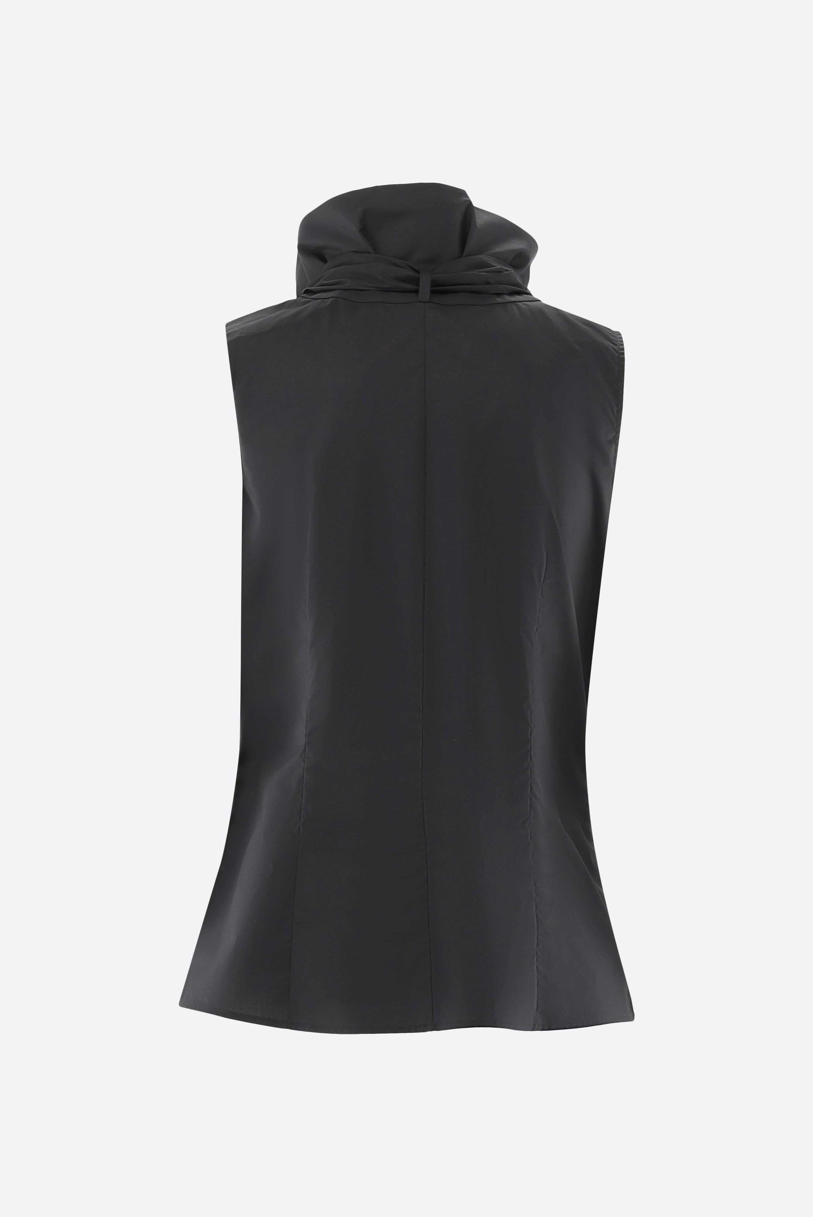 This sleeveless blouse impresses with its feminine silhouette and elegant details. The tailored cut accentuates the figure, while the stand-up collar with delicate ruffles adds a touch of sophistication. The stylish tie neck completes the design and allows for versatile styling options – from modern to classic. Made from high-quality material, this blouse is ideal for business looks, special occasions, or stylish everyday outfits.