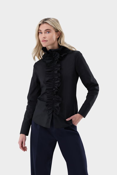 Striped Hybrid Blouse with Side Jersey Insert Slim Fit