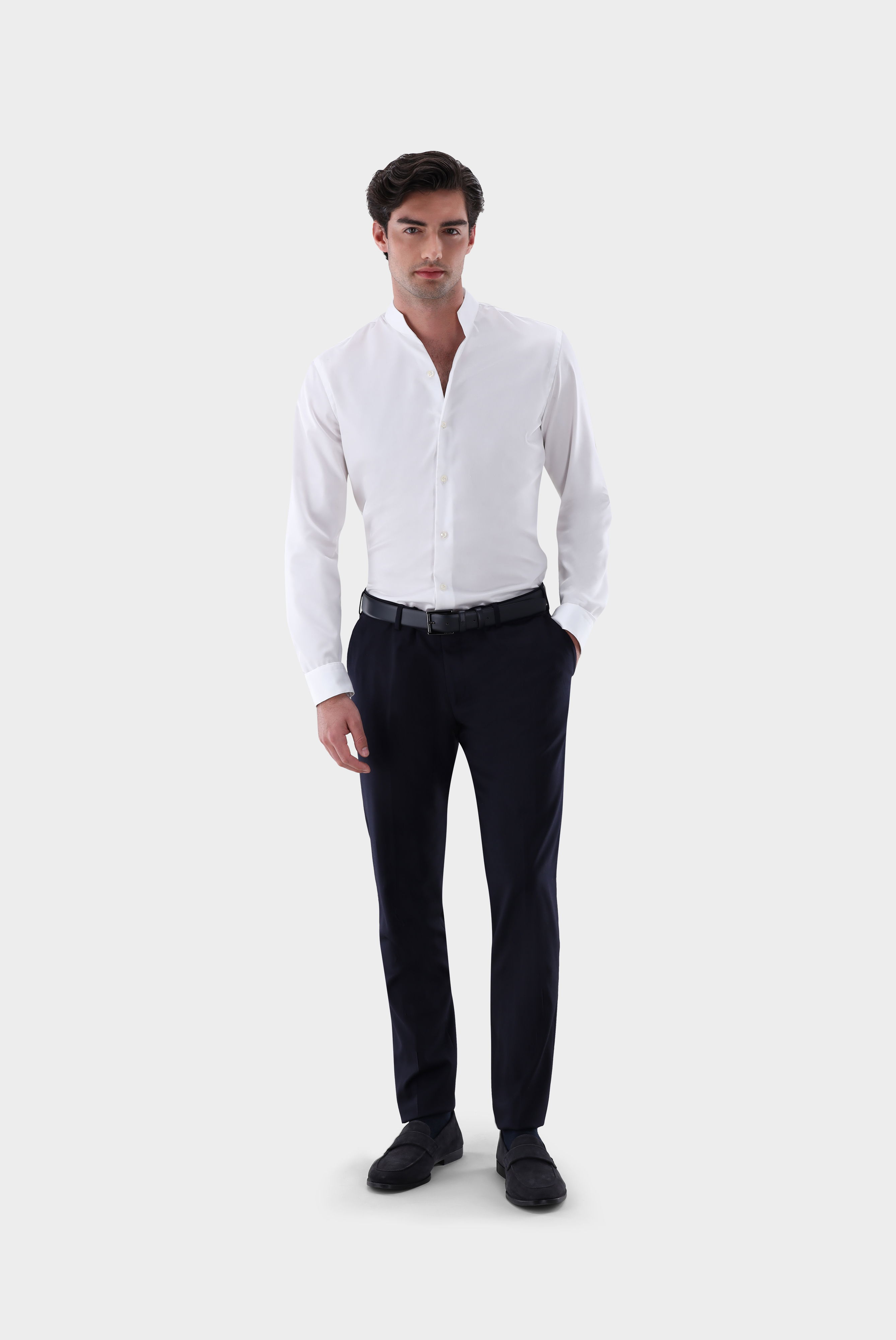 This shirt made from premium twill fabric blends modern design with practical features. Thanks to the innovative “Perfect Look” finish, the shirt remains virtually wrinkle-free and can be worn with minimal ironing effort – body heat further smoothens the fabric. The elegant stand-up V-collar adds a contemporary and stylish touch, making it perfect for urban lifestyles.