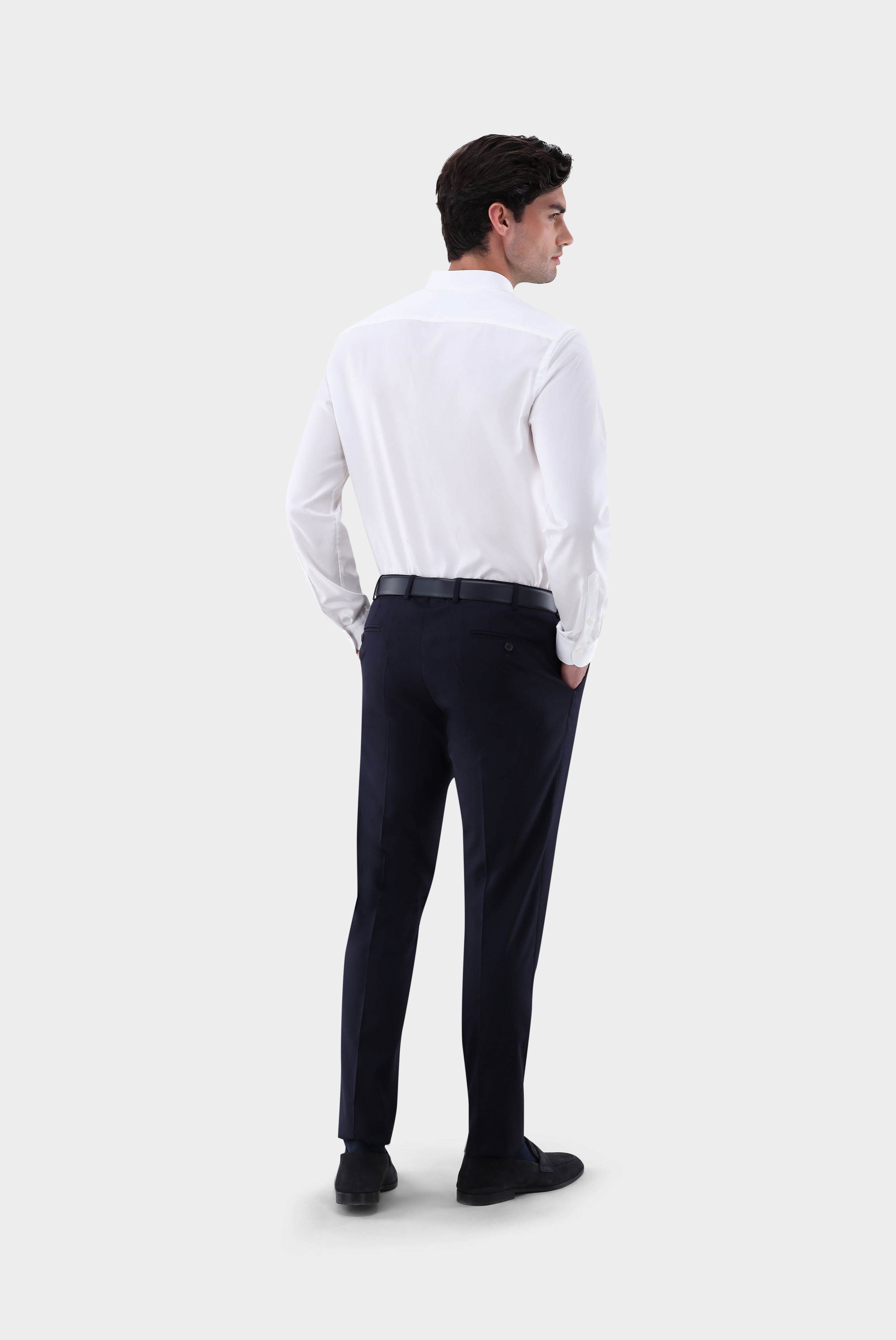 Slim-fit shirts are cut to fit the figure very closely and have darts at the back.