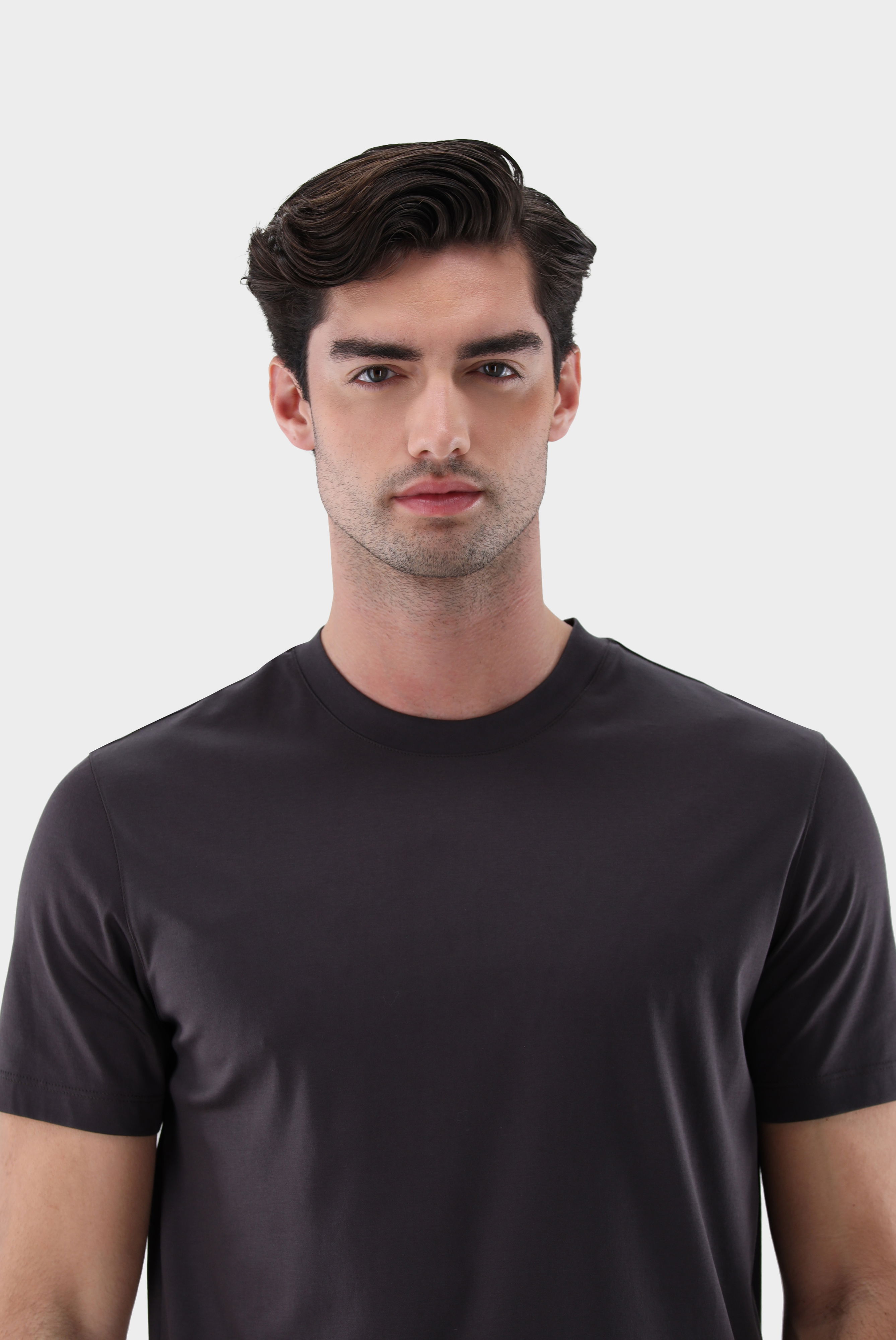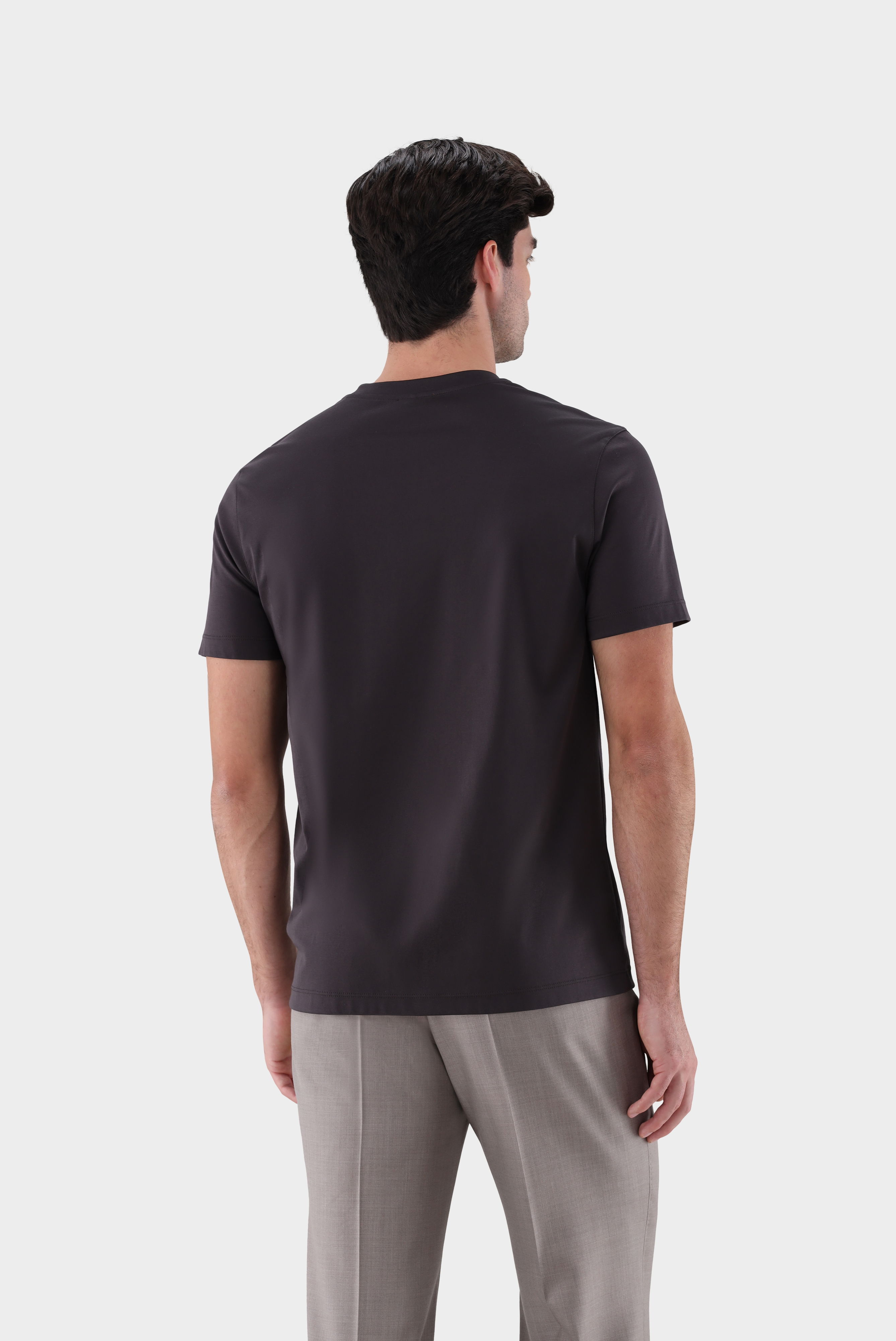 T-shirt made from Swiss cotton jersey. The Swiss cotton jersey quality, made from particularly high-quality and soft interlock jersey with natural stretch, ensures a luxurious feel. The shiny finish completes the elegant look. The long-staple Supima cotton is particularly durable.