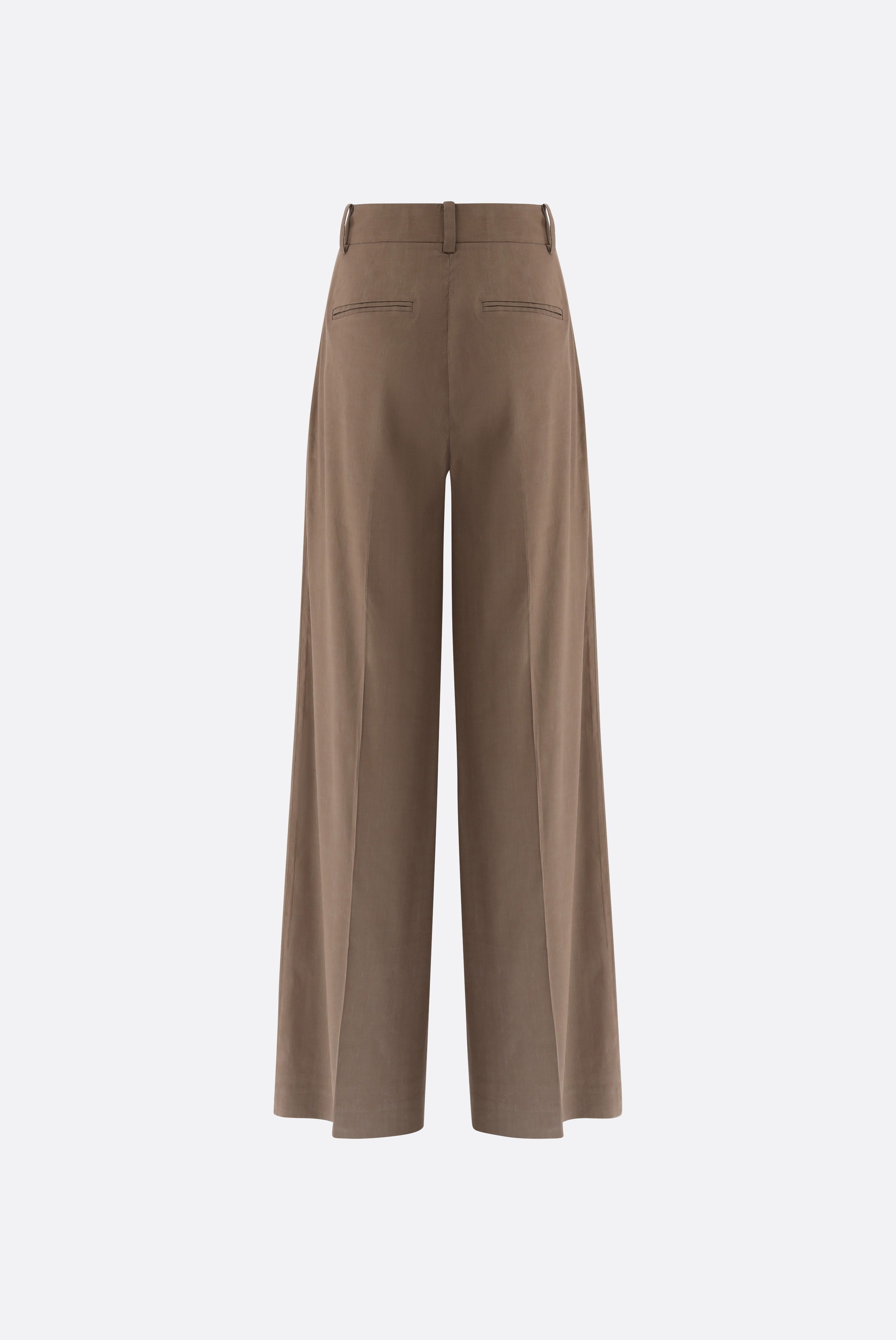 These wide-leg trousers with pleat details are made from a high-quality linen blend, making them particularly breathable. They feature a modern oversized look and are ideal for combining with the Jawia blazer for a complete look. Ideal for festive occasions or a modern business look.