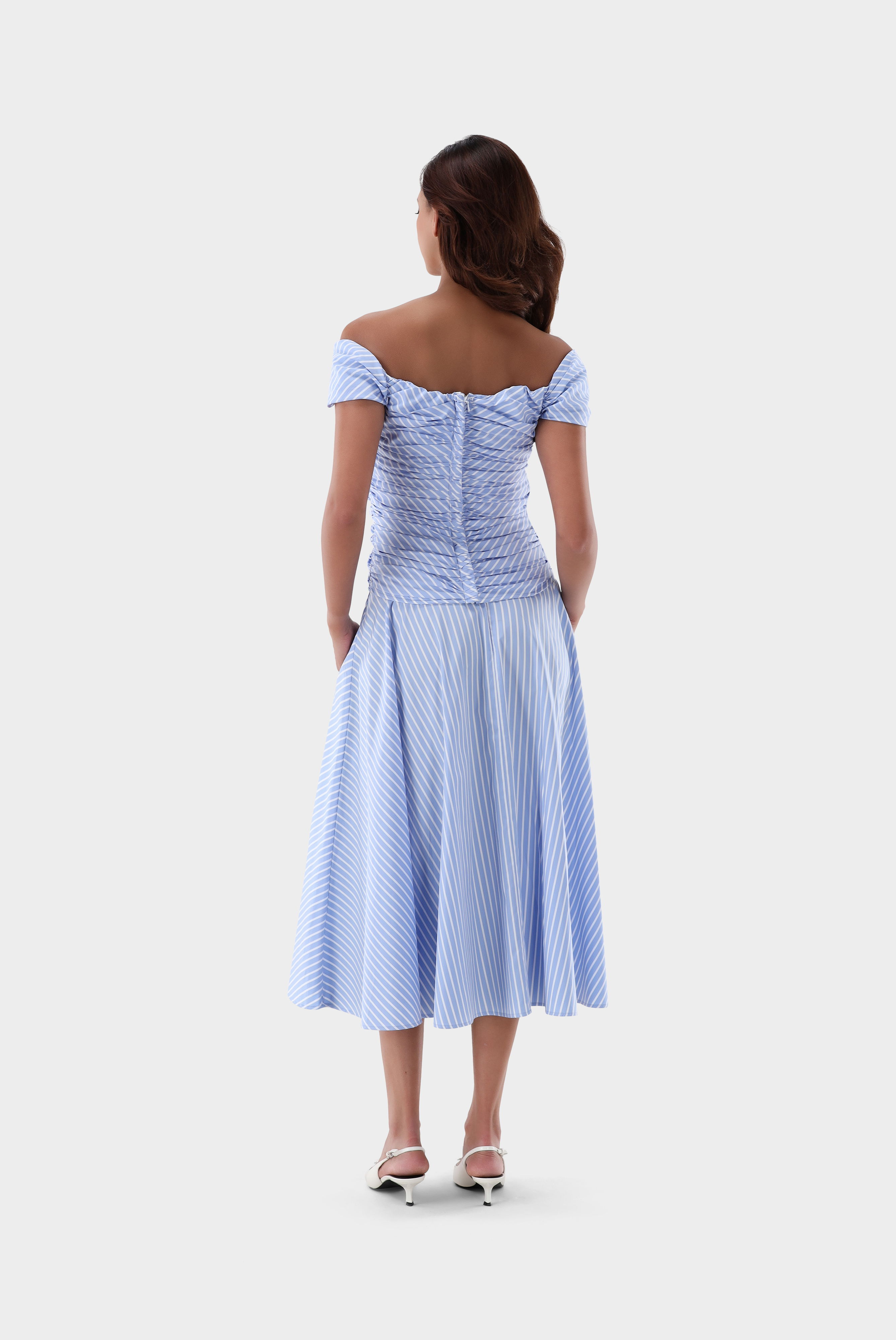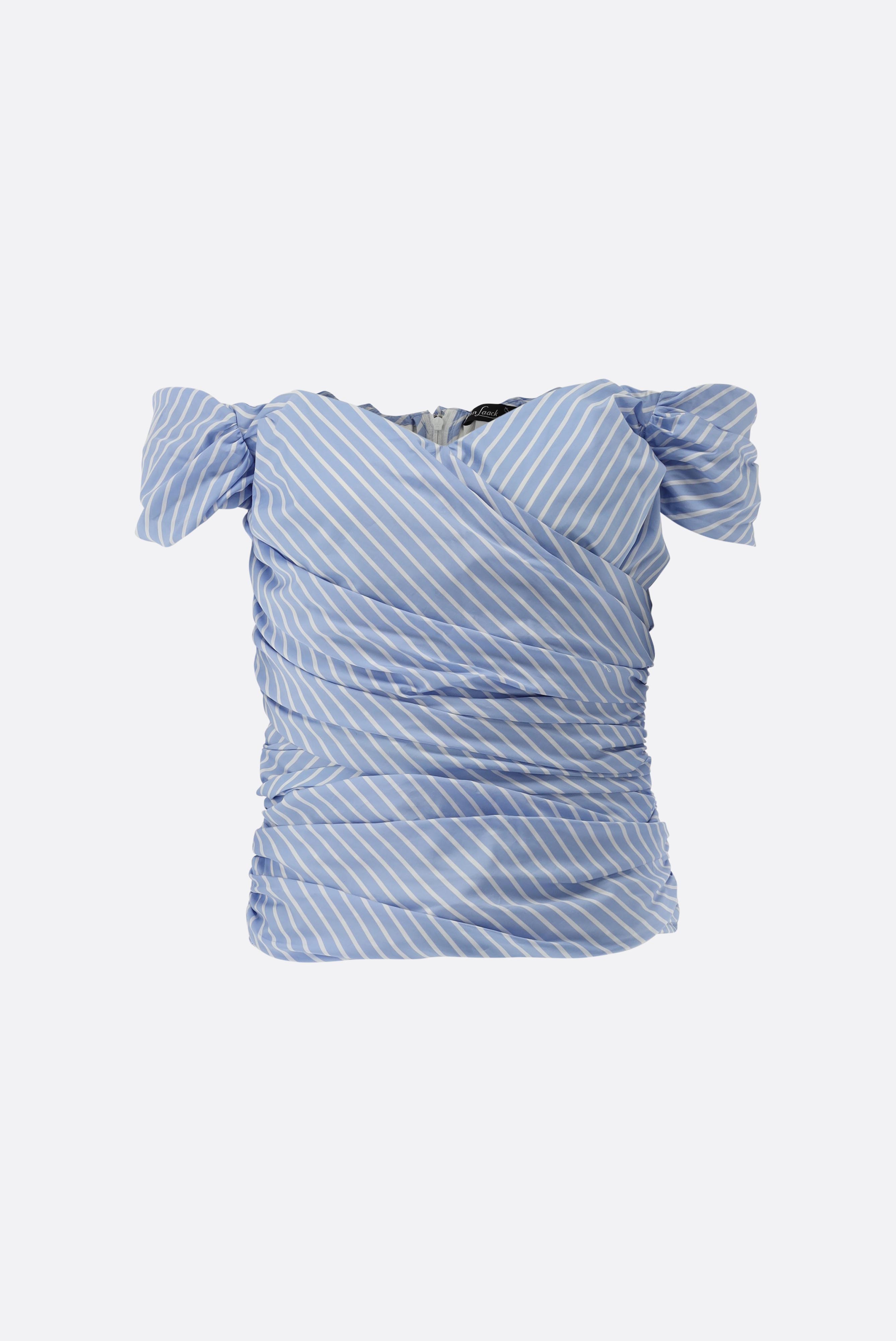 This striped cotton bodice boasts a very feminine look. The lined bodice features integrated bones, a small sleeve, a concealed center back zipper, and fabric draping for an attractive look. This bodice can be combined with the Ralea skirt for a complete look.