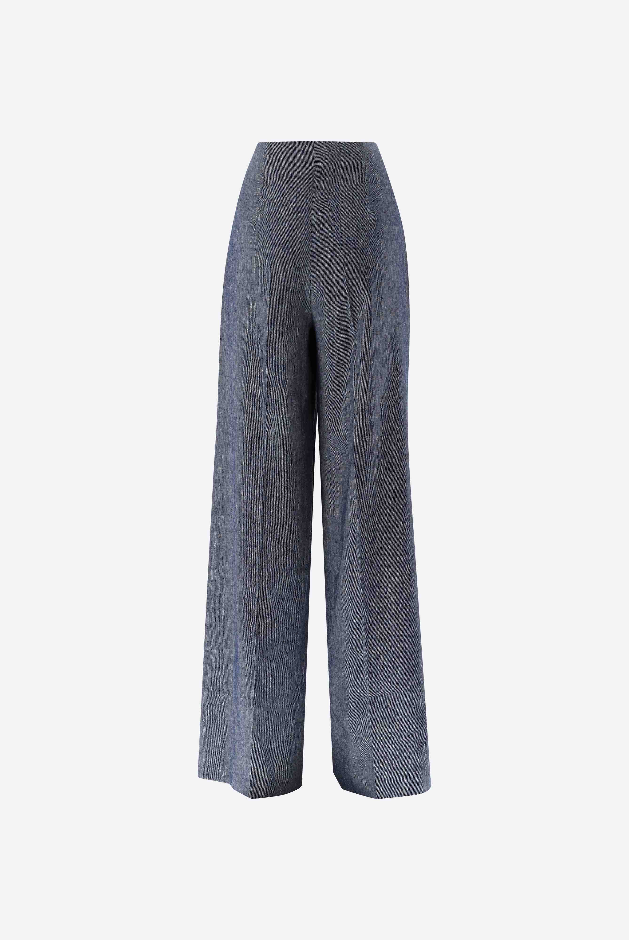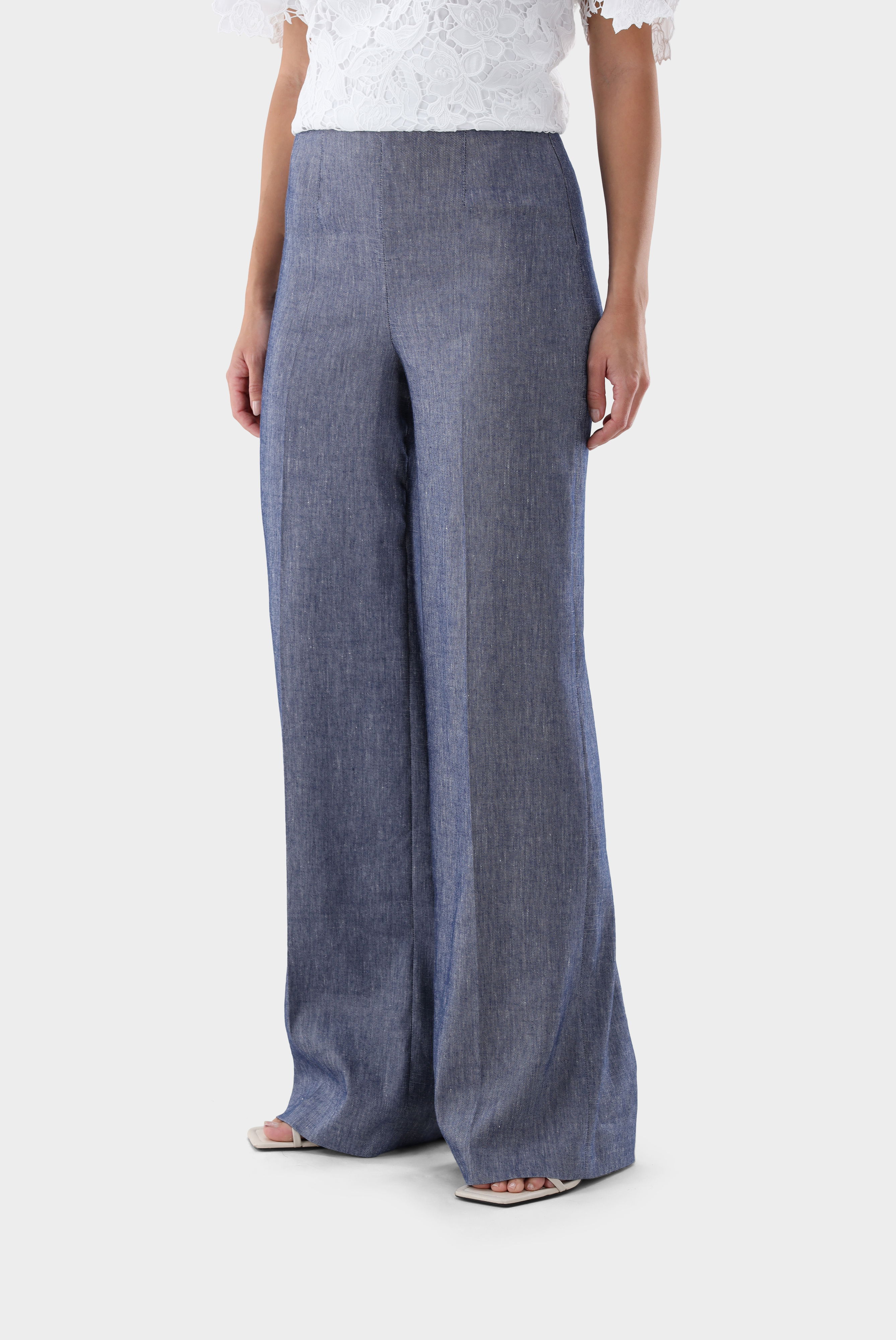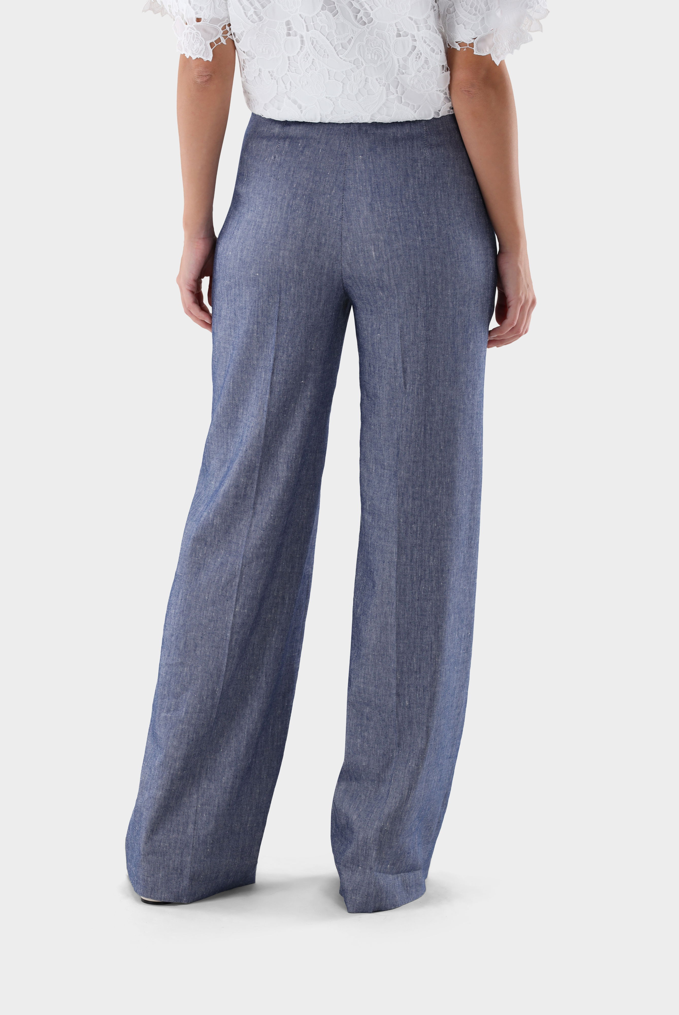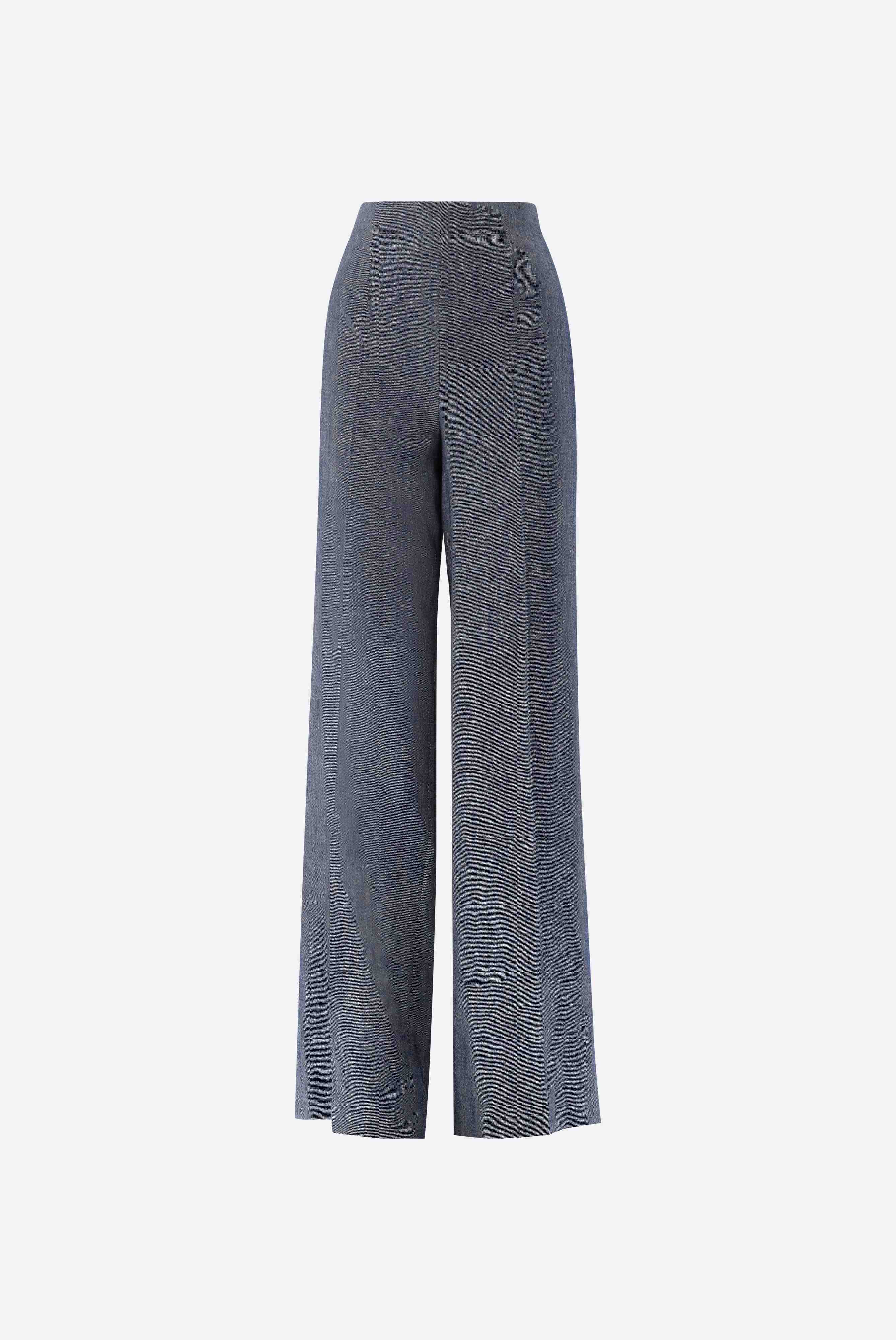 These high-waisted, wide-leg trousers impress with their elegant, modern silhouette. A classic crease gives the design a polished look, while a concealed side zip ensures a clean finish. Made from a high-quality linen and viscose blend, these trousers offer exceptional comfort and shape retention. Ideal for stylish business and smart-casual looks with a timeless, elegant appeal.