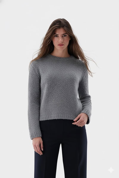 This loose-fitting, cropped sweater features a high round neck and a modern silhouette. Long sleeves ensure comfort and underline the casual design. Crafted from a premium blend the teddy yarn knit offers a particularly soft feel and pleasant warmth. This piece combines fashionable style with exceptional comfort and is ideal for versatile casual looks in the cooler seasons.
