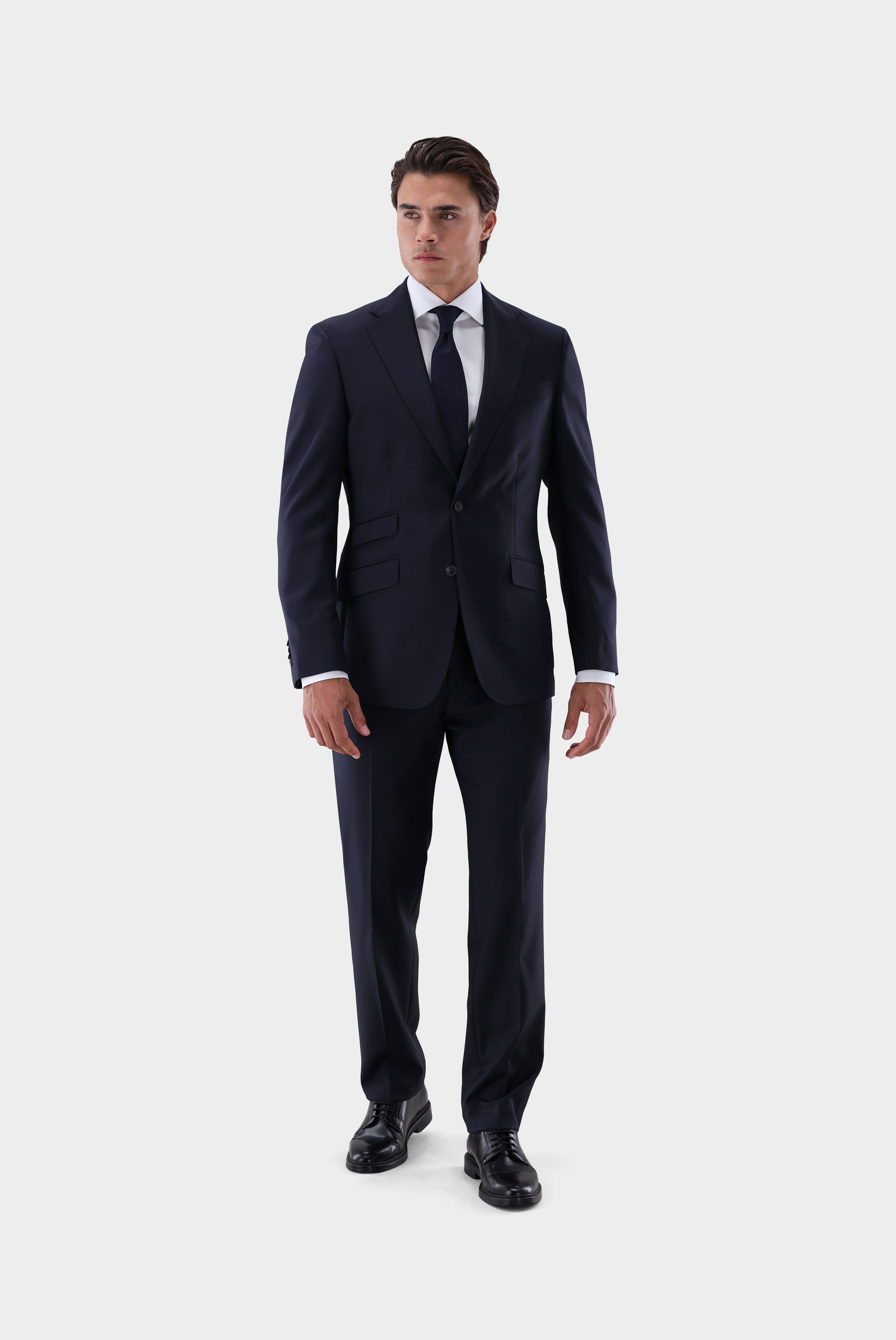 These trousers, crafted from high-quality wool, offer a classic, modern fit with their mid-rise waist and straight leg. Belt loops provide flexible styling options, while the luxurious material ensures exceptional comfort and a polished look. Matching jackets in the same fabric are available in several variations as part of a mix-and-match system, allowing for perfect combinations. For targeted searches, please use the material number Z52030.